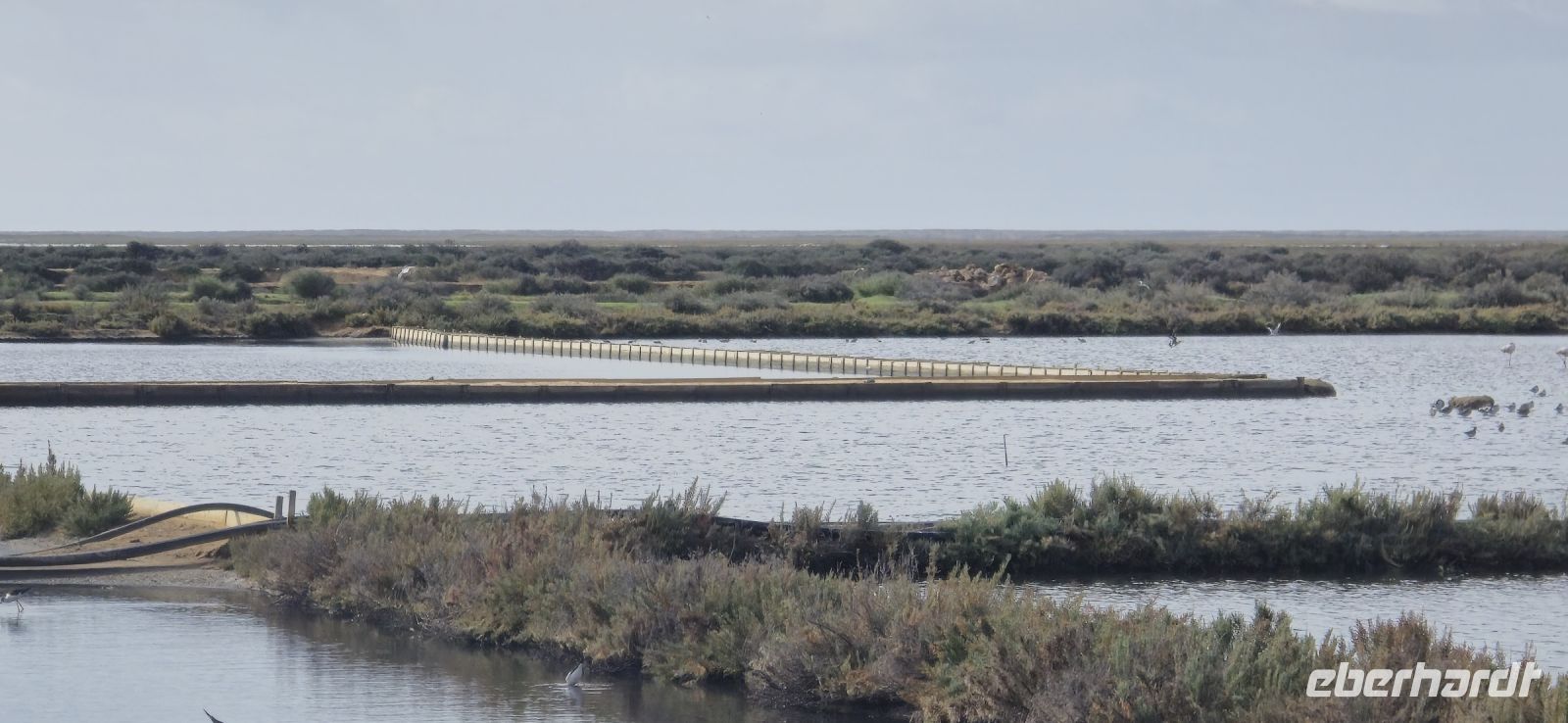 Heute geht es nach Faro, dem Verwaltungszentrum der Algarve. Unser Busfahrer ist wieder Paolo- allerdings ein anderer als gestern. Er bringt uns mit Fatimas Erzählungen in die knapp eine Stunde entfernte Stadt. An der Marina steigen wir aus, gleich gegenüber der Jardim Manuel Bivar, ein kleiner Park, hier werden wir uns nach der Besichtigung wieder treffen. Also los: wieder spazieren wir auf weißem Pflaster mit schwarzen Ornamenten, durchschreiten das alte Stadttor und enge Gassen, die uns direkt zum Bischofspalast und der Kathedrale führen. Ein großes Denkmal erinnert an Dafonso III., der im 13. Jahrhundert hier herrschte. Weiter spazieren wir durch enge Gassen, Wandbilder zeigen einen großen Dichter, dessen Lieder unter Salazar verboten waren. Wieder geht es durhc Stadttore und so erreichen wir die alte Stadtmauer, große Azulejos zeigen die Geschichten und Fatima erläutert uns die Darstellungen. Fasziniert schauen wir auf die vielen Storchennester, die überall zu sehen sind, manchmal 4 um einen Turm eines Hauses. Weiter spazieren wir durch die Straßen von Faro, erste Weihnachtsbeleuchtungen sind bereits über den Einkaufsstraßen angebracht worden, über andere spannen sich noch riesige Sonnensegel. Etwas Freizeit verbinden wir in den Gassen, bevor es zurück zur Marina geht. Fatima lotst nun Paolo durch ihre "Schleichwege", wie sie es nennt, etwas abseits der Straßen ist es so möglich, die Salinen zu sehen und die Vögel, inklusive Flamingos. Da darf ein kurzer Fotostopp natürlich nicht fehlen. Pünktlich zur Mittagszeit erreichen wir Olhao. Die Stadt ist für ihre Markthalle bekannt und das wollen wir uns natürlich ansehen. Neben Fischmarkt und Obst/ Gemüsemarkt ist heute auch ein Bauernmarkt außerhalb der Hallen, an denen allerlei Handwerk und Souvenirs angeboten wird. Wir können also nach Herzenslust bummeln. Ich nutze die Zeit und kaufe heimlich für unser Picknick morgen ein, Fatima gibt mir noch Tipps, welcher Käse und welche Wurst regional und gut sind und so kaufe ich Käse und Wurst, Trauben und Bananen, Tomaten und natürlich Naschwerk: Fatima hatte uns vom Feigenkäse erzählt, der muss natürlich mit, genauso wie getrocknete Feigen mit Mandeln, getrocknete Aprikosen und Datteln. Da an den Ständen ganz ordentlicher Andrang herrschte, bin ich glatt ein paar Minuten zu spät zum Bus zurückgekommen... Man sah es mir nach- und wenn sie wüßten, wofür die ganzen Tüten waren... Weiter ging unsere Fahrt nach Tavira, in manchen Reiseführern auch als Venedig der Algarve angepriesen- nun es sind ganze 2 Häuser, die so am Kanal liegen, wie man es aus Venedig kennt. Das zeigt uns Fatima am Ende unseres Rundganges durch die Stadt. Und die ist auch ohne "Venedig-Stempel" sehenswert. Vor allem die Altstadt, durch die wir gemeinsam bummeln. Zur Altstadt geht es hinauf- das darf man ruhig wörtlich nehmen, kleine Stufen auf den Wegen erleichtern den Aufstieg, so erreichen wir die Burg aus dem 11. Jahrhundert, deren Burggarten einen phantastischen Blick auf die Stadt ermöglicht. Dann geht es wieder hinunter zum Fluss Gilào, dessen römische Brücke wir bereits bei der Ankunft gesehen hatten. Wir können uns noch ein wenig individuell umsehen, dann treffen wir uns am Busbahnhof wieder. Nun geht es bis zur spanischen Grenze: Vila real de Sao Antonio ist unser Ziel. Wir bummeln durch die Fußgängerzone und ein kleiner Bauernmarkt lädt zum Schnuppern und Kosten ein. Hier kann ich noch tolle Oliven für morgen erstehen- hmmm. Die Festung Castro Marim können wir dann leider nur von der Straße aus fotografieren, nirgends ist es mehr möglich anzuhalten, dazu kommt, dass wir eine extra-Schleife fahren müssen... Nun ja, es war ein toller Tag und so machen wir uns auf den Rückweg zum Hotel. Hier kommen wir am späten Nachmittag an und verabreden uns zum Abendessen wieder. Das ist dann wieder ausgesprochen lecker, jeder findet etwas, was seinen / ihren Geschmack trifft und dann lädt die Bar zum Tagesausklang ein. Wieder gibt es Live- Musik und da wir heute eine Stunde länger schlafen dürfen (es ist das Ende der Sommerzeit), nutzen das auch viele.