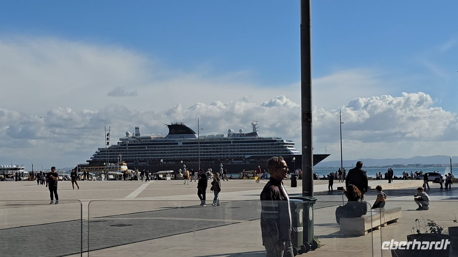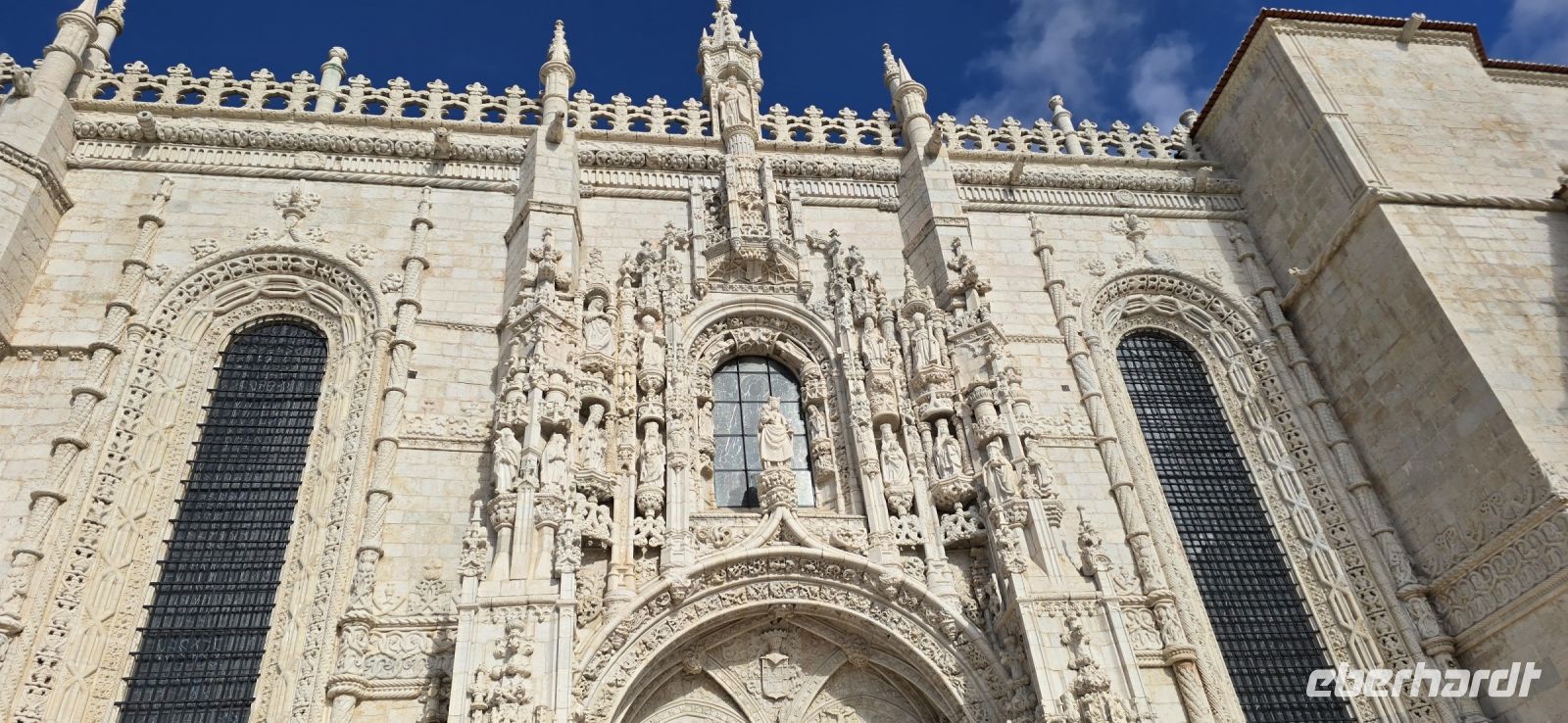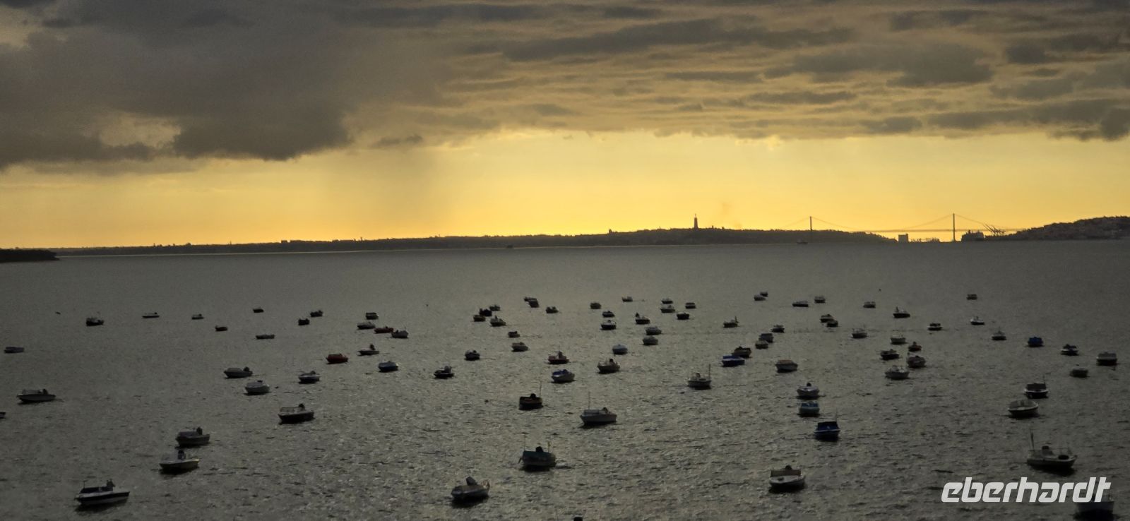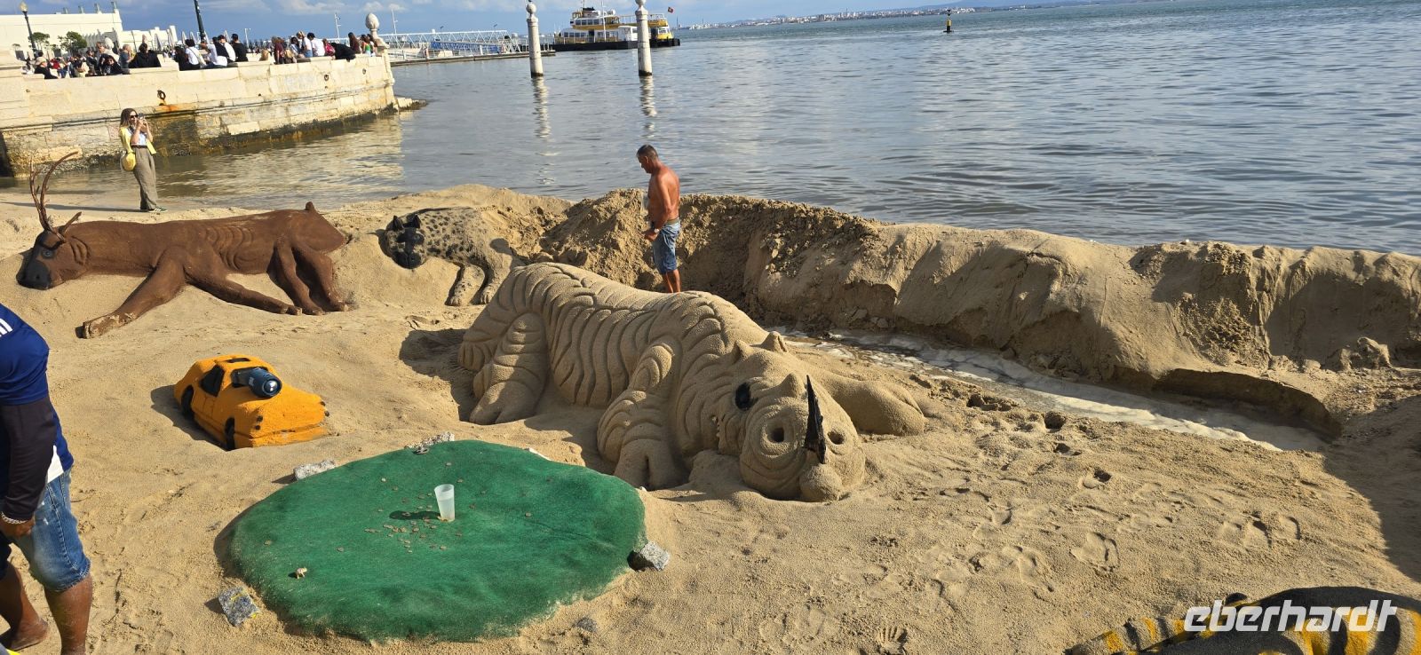 Für die Lissabon-Fahrer geht es heute sehr zeitig los, Frühstück muss ausfallen, dafür gibt es ein Frühstück to go. Um diese Zeit ist sogar Fatima ganz ruhig und läßt uns noch ein wenig schlafen. Nach knapp 2 Stunden machen wir Pause auf einem Rasthof, ein guter Caffe tut gut und auch ein Toast kann nicht schaden. Es ist hell geworden draussen und so können wir die Landschaften sehen, Reisfelder weichen Pinienwäldern, Korkeichenplantagen sind da und auch Orangen- und Zitronenbäume. Wie geplant kommen wir in Lissabon an, der angekündigte Stau hat sich aufgelöst und wir können über die alte Brücke fahren. Hoch über uns grüßt die Jesus-Statue- Willkommen in Lissabon. Von der Brücke aus können wir den Hafen und die Marina sehen, wir sind im Belem Viertel. Unser Bus findet einen Parkplatz und so werfen wir schon mal einen Blick auf das Hieronymus-Kloster. Es strahlt weiß in der Sonne, fast blendet es schon. Das Südportal besticht mit Figuren und Steinmetzarbeiten, einfach atemberaubend. Als die Klöster im Land aufgelöst wurden durften die Mönche hier bleiben, sie mußten sich aber nach einer Einnahmequelle umsehen, ihr Besitz war konfisziert worden. So eröffneten sie eine Pastetenbäckerei, die noch heute die berühmten Pasteis des Belem verkaufen. Die holen wir uns natürlich, eine schöne Überraschung für unsere Gäste. Zudem schaffte es Fatima, dass wir hineingehen durften, einfach riesig, diese einzelnen Cafebereiche, und so schöne Azulejos überall. Nach dieser ShiShi-Pause (wie Fatima es immer nannte) gehen wir durch den Park und verspeisen unsere Pasteis. So lecker! Zum Fluss Tejo kommen wir durch die Unterführung, sie führt unter die Gleise entlang und wir stehen auf dem Platz des Padrão dos Descobrimentos, des Entdecker-Denkmals. Eine riesige Windrose vor dem Denkmal zeigt im Innern ein aufgeschlagenes Buch mit der Weltkarte. Hier demonstriert uns Fatima, wie Portugal und Spanien die Welt unter sich aufgeteilt hatten. Neben dem Denkmal begannen gerade zwei Künstler ihre Flamenco Darbietung- wow, eine tolle Überraschung. Dann geht es zurück zum Bus und direkt in die Stadt. Am Platz der Restauratoren steigen wir aus, hier wird uns der Bus später auch wieder abholen. Das Hard Rock Cafe ist da eine gute Orientierung. Dann schlendern wir durch die Gassen Lissabons, Fatima führt uns in einen unscheinbaren Hauseingang, die Treppen hinauf und wow- stehen wir in einem lichterfüllten Innenhof voller Blumen, Palmen, Figuren und Azulejos an den Wänden. Was für eine Überraschung. Weiter geht unser Bummel, die Läden und Shops laden ein, Bacalhau wird hier angebote, der traditionelle getrocknete Kabeljau, hier Korkprodukte, dort ein Cafe...Vom Praça da Figueira haben wir einen tollen Blick auf die Burg und dann geht es hinauf in die Altstadt. Hier oben am Fahrstuhl haben wir einen schönen Blick auf die Stadt zu unseren Füßen. Direkt daneben liegt das alte Kloster, das heute das archäologosche Museum ist, hier im Erdgeschoss ist die Ausstellung zum 50. Jahrestag der Nelkenrevolution zu sehen. Wir spazieren weiter durch die Gassen und da kommt auch schon eine: eine der legendären Straßenbahnen Lissabons um die Ecke. Fatima führt uns bis zum Miradouro de São Pedro de Alcântara, einem großen Platz mit einem tollen Blick auf die Stadt, und gleich daneben fährt die Zahnradbahn hinab zum Patz der Restauratoren. Damit wollen wir unbedingt fahren, wir verabschieden uns in die Freizeit und fahren mit der gelben Elevador da Glória hinab. Was für ein Erlebnis. Mit einigen Gästen bummele ich weiter durch die Stadt hinunter zum Handelsplatz, dem Praça do Comércio. Er liegt direkt am Fluss und gerade fährt ein weiteres Kreuzfahrtschiff bei uns vorbei zum Hafen. Wir beschließen für ein kleines Mittagessen hier zu bleiben und das war eine gute Entscheidung. Und sehr lecker. Am Ufer des Tejo bestaunen wir dann noch Figuren, allerlei Getier wurde hier zum (Sand-)Leben erweckt. Dann bummeln wir retour, durch Nebengassen und genießen die kleinen Shops und Läden. Der Fahrstuhl grüßt - dieses Mal von unten- und lebensgroße Figuren setzen neues Pflaster mit den typischen Ornamenten. So erreichen wir unseren Bus- Fatima hatte schon den "Willkommen zurück- Trunk vorbereitet, natürlich einen Kirschlikör. Damit verabschieden wir uns von Lissabon. Geplant pünktlich verlassen wir die Stadt, um vor dem großen alltäglichen Stau zu sein. Dieses Mal überqueren wir den Tejo über die Vasco da Gama- Brücke. Mit ihren 17,2 Kilometern Länge ist sie die längste Brücke Europas. Am anderen Ufer des Tejo liegen viele kleine Boote, sie warten auf Ebbe und auf die Muscheln, die sie dann fangen können. Und so geht langsam die Sonne unter, die alte Brücke, über die wir heute morgen gefahren sind ist am Horizont zu sehen genauso wie die Christus-Statue. Dann also: auf Wiedersehen Lissabon. Mit einer kleinen Servicepause erreichen wir fast zur Abendessen-Zeit unser Hotel. Punktlandung- wären da nicht die neuen Busgruppen gewesen, die unser Restaurant gestürmt hatten. So mußten wir auf freie Pläze warten. Nun ja, immerhin Zeit, sich mit den anderen Gästen auszutauschen über ihre Erlebnisse heute. Und so saßen wir heute noch lange zusammen, nein, mit dem Schiff ist niemand gefahren, aber wandern waren viele: zur Marina von Albufeira, an den Klippen entlang, an unserer Badebucht waren einige und auch in der Stadt selber waren etliche Gäste unterwegs. So endete ein langer Tag und wieder spielte eine Live-Band in der Bar.