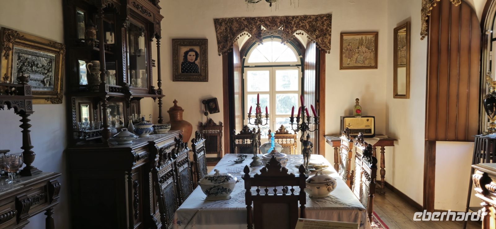 Wieder meint es das Wetter gut mit uns, der angekündigte Regen kam auch heute nicht und so genossen wir wieder Sonne satt. Unser erstes Ziel eute ist Silves. Ganz in der Nähe ist eine große Orangenplantage, die wollen wir uns ansehen. Mara begrüßt uns herzlich, erzählt von ihrer Familie und ihrem Unternehmen, sie haben neben Orangen auch Zitronenbäume, Khaki und Avocados. Das heißt, wenn sie zu Wort kommt, Fatima kennt das alles natürlich nur zu gut und übersetzt gleich mehr, als Mara erzählt hat.... Leider ist es für die Ernte der Orangen noch zu früh, die beginnt in ein bis zwei Wochen, trotzdem dürfen wir uns Orangen zum Pflücken aussuchen, bekommen einen Schnell-Lehrgang, wie man es richtig macht und dann suchen wir uns schöne, fast reife Exemplare. Dann dürfen wir den frisch gepressten Saft probieren- war der lecker! Außerdem gab es Pasteten mit selbst gemachter Marmelade zum Probieren. Hmmm. Da wanderten etliche Gläschen in unsere Taschen, dazu vielleicht noch ein Essig oder ein Likör. Wir verabschieden uns von Mara und danken ihr herzlich für den Besuch hier. Dann fahren wir nach Silves. Die Burg ist unser Ziel also geht es (mal wieder) bergauf. Wo Burgen eben stehen: auf einem Hügel. Unterwegs erläutert uns Fatima, wie wir wieder zum Bus kommen, gibt Orientierungspunkte und Hinweise. Durch das Stadttor geht es, an der Kathedrale vorbei und schon stehen wir vor der Burg. Schon unter den Römern war Silves wichtiger Handelspunkt und hatte eine Verteidigungsanlage, die Mauren, die hier ab dem 8. Jahrhundert die Macht übernahmen, bauten sie zu einer der schönsten maurischen Festungen aus, die Portugal heute noch zu bieten hat. König Sancho I. ließ die Burg nach der Eroberung durch die Kreuzfahrer im 12. Jahrhundert weiter umbauen. Das schwere Erdbeben von 1775 haben zwei Bereiche der Burg "überlebt", die Alcazaba, die von 11 Türmen beschützt wird, und die Medina. die durch das Tor mit zwei Türmen mit der Alcazaba verbunden ist. Die können wir nun ausgiebig erkunden, jeder individuell. Viele nutzen die Möglichkeit, auf der Burgmauer entlang zu spazieren und den Blick auf die Stadt und das Umland zu genießen. Auch viele Störche sehen wir wieder, die auf allen möglichen (und unmöglichen) Plätzen ihre Nester gebaut hatten. Eine der beiden Zisternen ist zugänglich mit einem kleinen Museum, ein Cafe lädt zum Verweilen ein. Wer lieber in der Stadt seine Mittagspause verbringen wollte wurde auch bald fündig, viele Cafes, Restaurants und Shops luden zum Bummeln und pausieren ein. Am frühen Nachmittag fahren wir weiter. Durch das Gebirge der Sierra de Monchique, dem immergrünen Garten der Algarve geht es nach Norden. Im Parque da Mina werden wir eine knappe Stunde später bereits erwartet. Wir können uns in der Villa umsehen und eine kleine Zeitreise unternehmen, Möbel und Arbeitsgerät aus den letzten 200-300 Jahren ziehen uns in ihrem Bann. Highlight aber natürlich die Verkostung des Medronho. Das ist ein Brand aus den Früchten des Erdbeerbaumes, den es so nur hier gibt. So sitzen wir gemütlich in der Sonne und lassen es uns schmecken. Durch den Park geht es zurück zum Bus, wer wollte unternahm einen kleinen Abstecher zum Wasserfall. Und beim Wasser bleiben wir auch, die Heilquellen von Monchique sind unser nächstes Ziel. Die waren schon den Römern bekannt- wir besuchen die Liebesquelle. Fatima verspricht uns, dass wir uns nach dem Genuss des Wassers tatsächlich verlieben werden, und wenn es "nur" die schöne Natur mit ihren uralten Bäumen hier sei. Durch die weitläufigen Parkanlage geht es dann Richtung Bus, vorbei an vielen Hotels und Sanatorien. Wir müssen uns etwas sputen. Fatima und ich hatten noch eine kleine Überraschung geplant, und die brachte unbedingt gutens Timing. Also geht es nun weiter zur höchsten Erhebung des Monchique-Gebirges, dem Faio. Und tatsächlich erreichen wir die Spitze pünktlich- zum Sonnenuntergang. WOW! Was für ein Blick! Passend dazu hatten wir Portwein besorgt und jeder bekam eine Kostprobe. Dann ließ uns der frische Wind aber doch wieder in den Bus flüchten, und unser letztes Ziel für heute wurde anvisiert: das Restaurant „Jardim das Oliveiras“. Das machte heute extra für uns eher auf, das konnte Fatima erreichen. Also nahmen wir Platz, der Kamin machte es gleich anheimelnd warm, und ließen uns portugiesische Spezialitäten schmecken. Den Schinken vom Iberico-Schwein etwa, Oliven, und Sardellenpaste oder das Fleisch vom schwarzen Schwein zum Hauptgang oder Hühnchen Piri-Piri. Gut dass die scharfe Soße extra kam- so konnte jeder seinen Schärfe-Grad selber festlegen. Dazu Weiß- oder Rotwein und natürlich eine Creme zum Dessert. Das war wirklich ein toller Abschluß eines ereignisreichen und schönen Tages. Zu später Stunde ging es zurück zum Hotel- bis morgen.