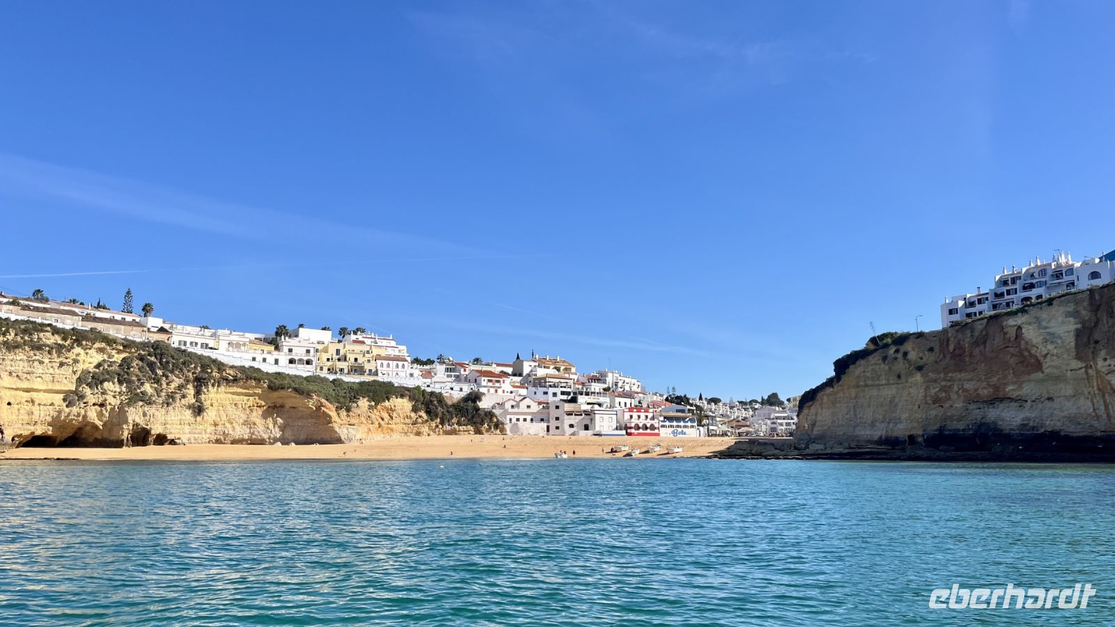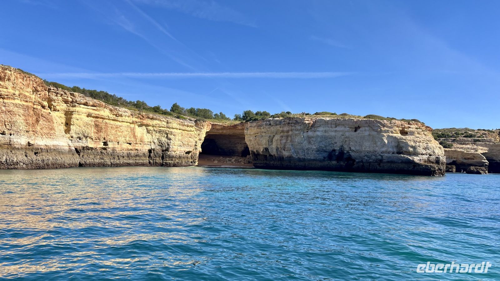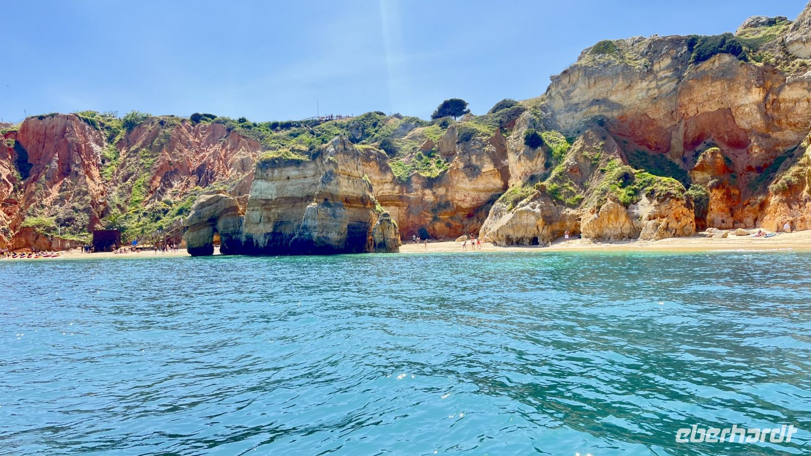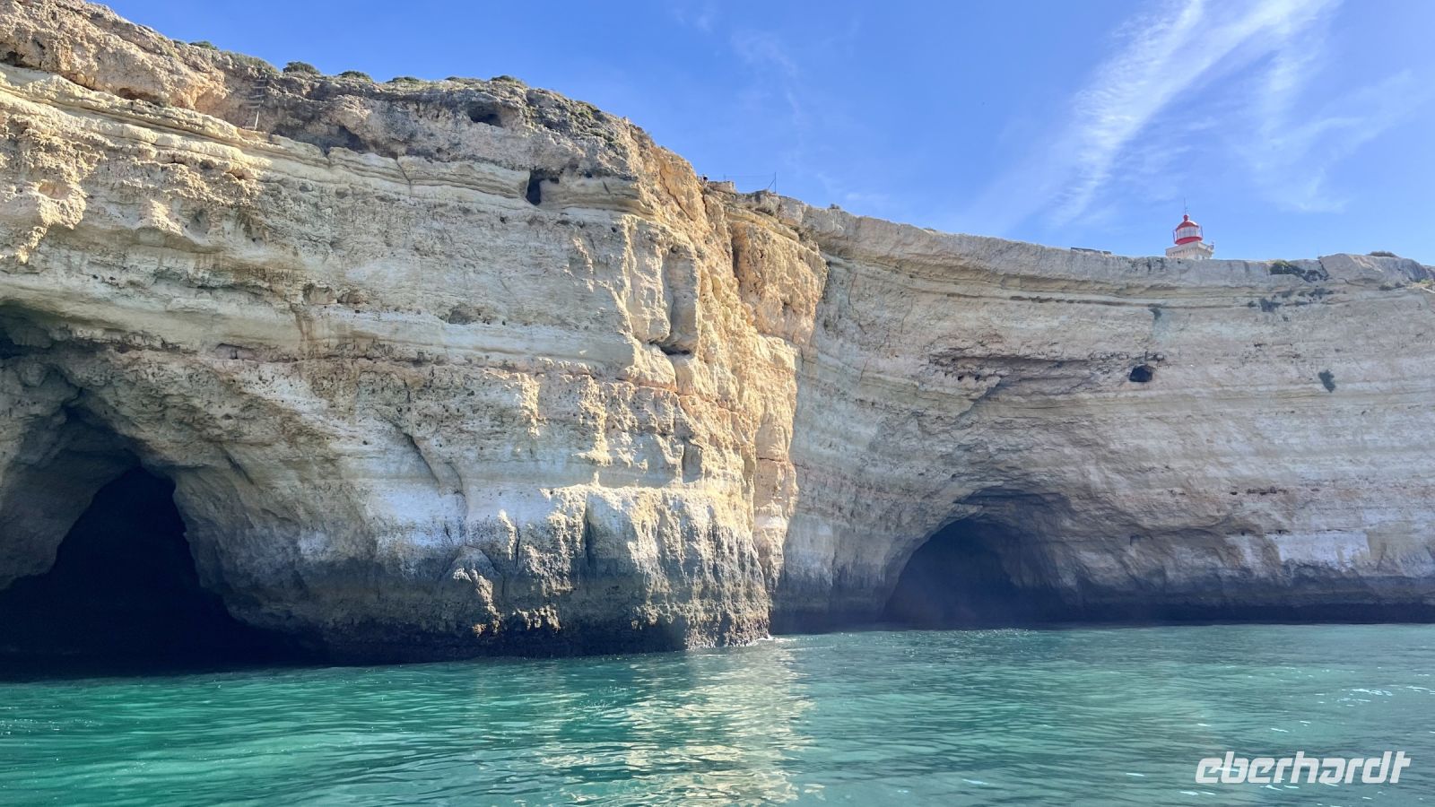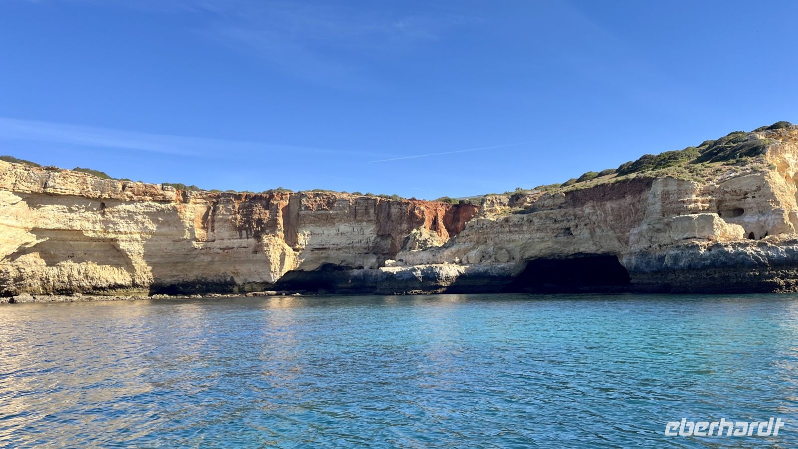Die Schattierungen des Himmels und des Meeres bildeten einen ständigen Kontrast zu den weißen Klippen der Steilküste von Porto de Mós. Von hier oben ließ uns die sanfte Brise unsere Wanderung aus einer anderen Perspektive erleben, in der die schöne Landschaft zu unseren Füßen ein unbestreitbares Kunstwerk ist. Wir betraten das, was man in der Vergangenheit für das Ende des Südwestens der bis dahin bekannten Welt hielt ... und von dort aus den unendlichen Atlantik, der mit dem Himmel zu einem Horizont verschmilzt, der meisterhaft gezeichnet ist. Eine solche Schönheit sieht man nicht alle Tage, und diese Küste ist eine der schönsten, die wir je gesehen haben.