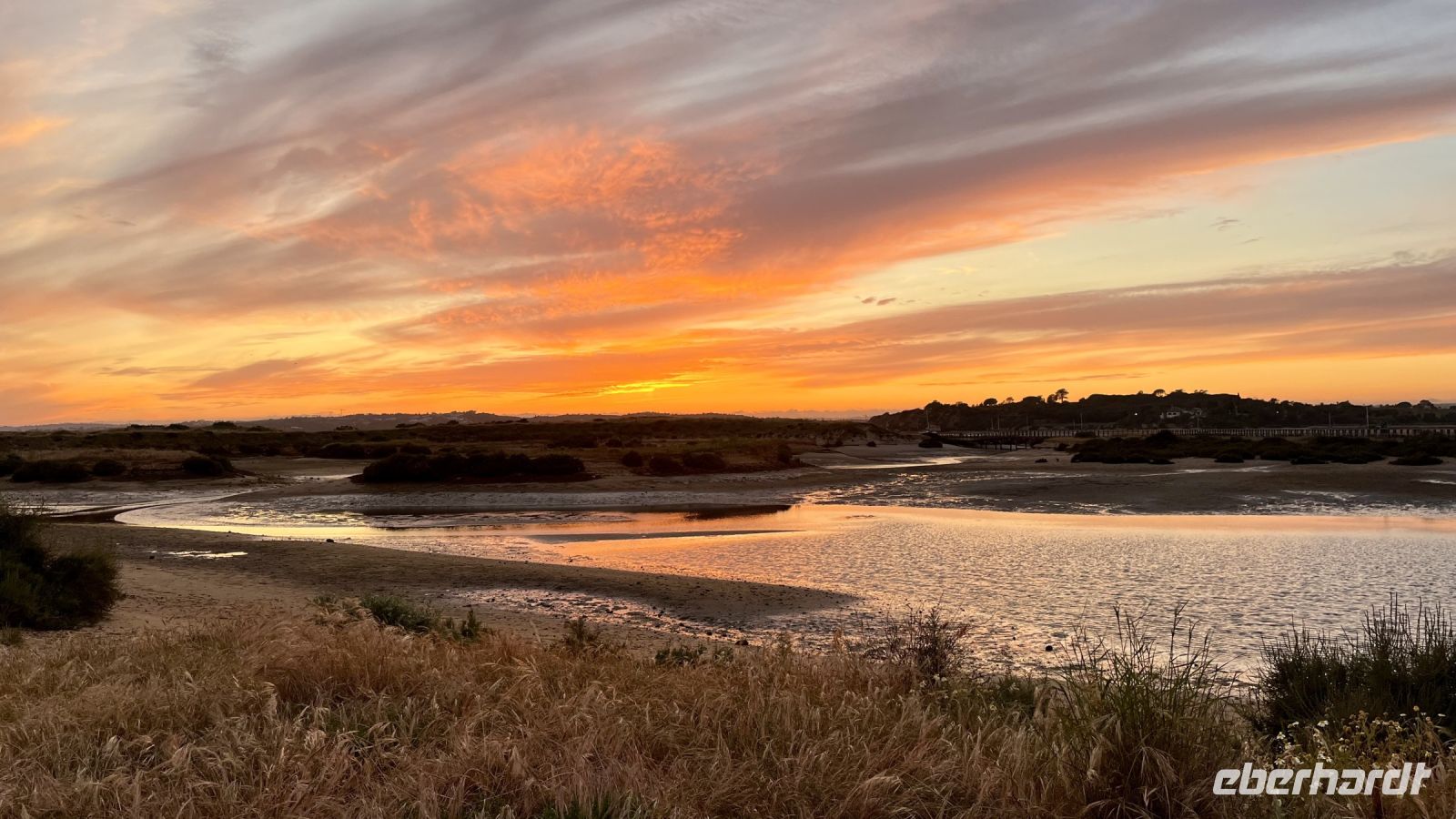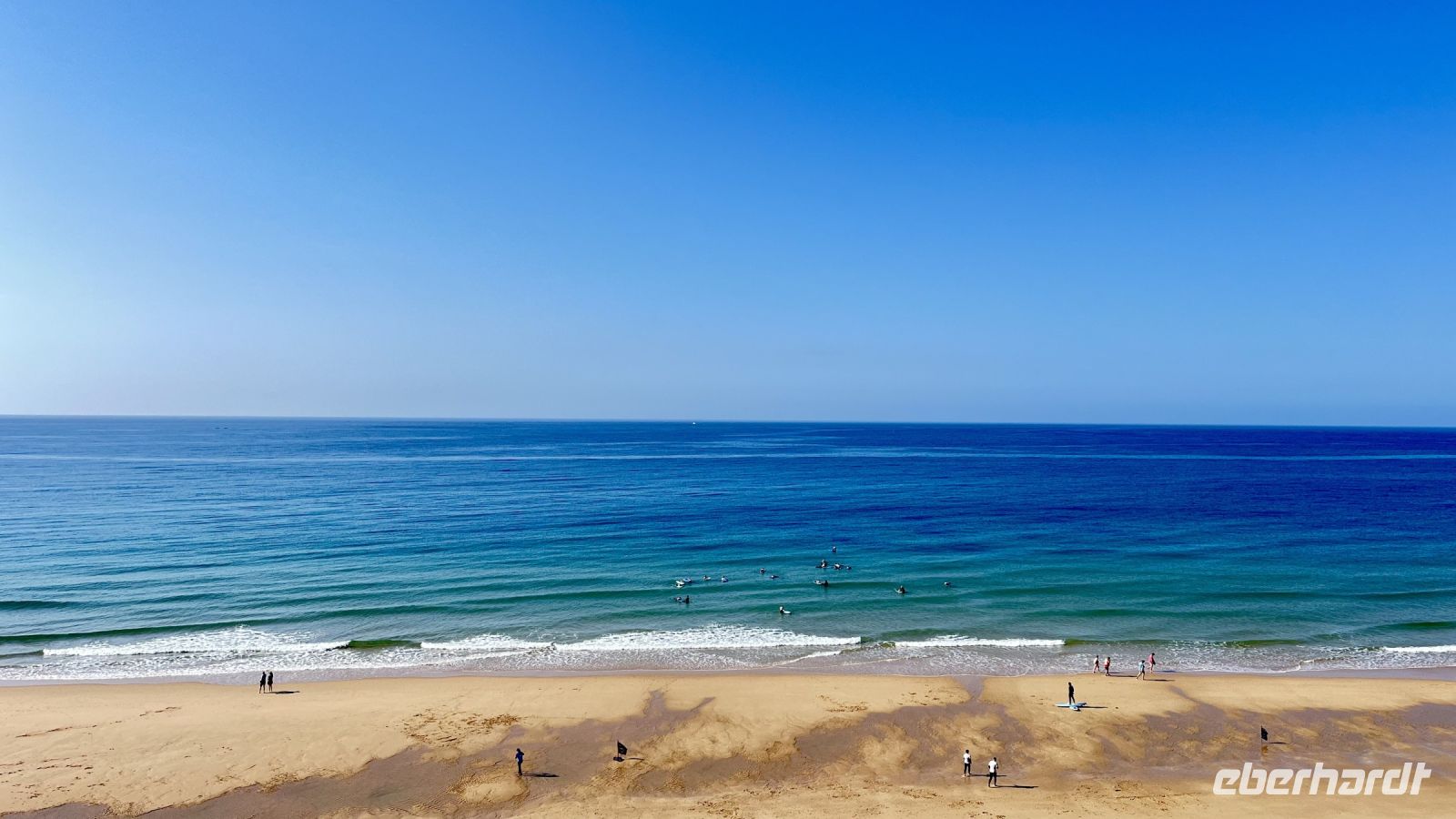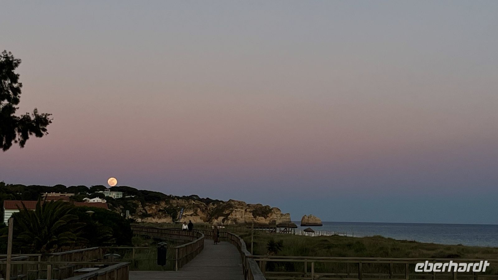 Es war ein angenehmer Wetterkontrast, denn bei unserer Ankunft in Faro erwartete uns strahlender Sonnenschein, der uns sofort in den Sommer entführte und den in anderen Breitengraden noch beginnenden Frühling hinter sich ließ. Im Hotel am Rande des Ortes Alvor traf sich die gesamte Gruppe zum ersten Mal. Wie auf jeder langen Reise haben wir die Gurte unserer Rucksäcke angepasst, und so machten wir uns mit größerem Komfort auf den Weg, um uns gegenseitig kennenzulernen und das Abendessen vor der Kulisse unseres ersten Sonnenuntergangs zu genießen.