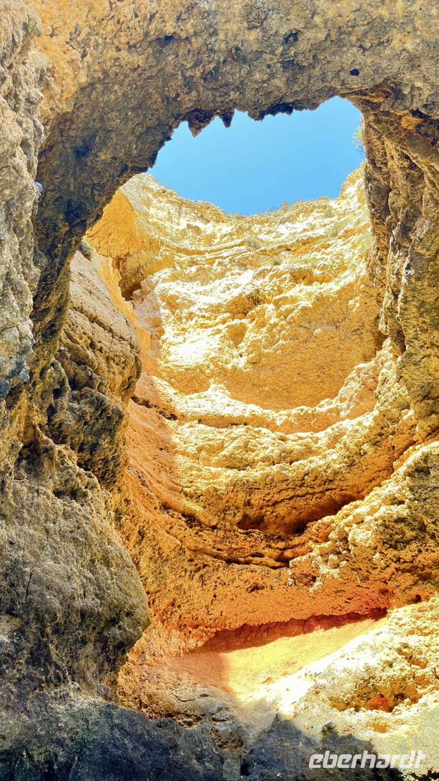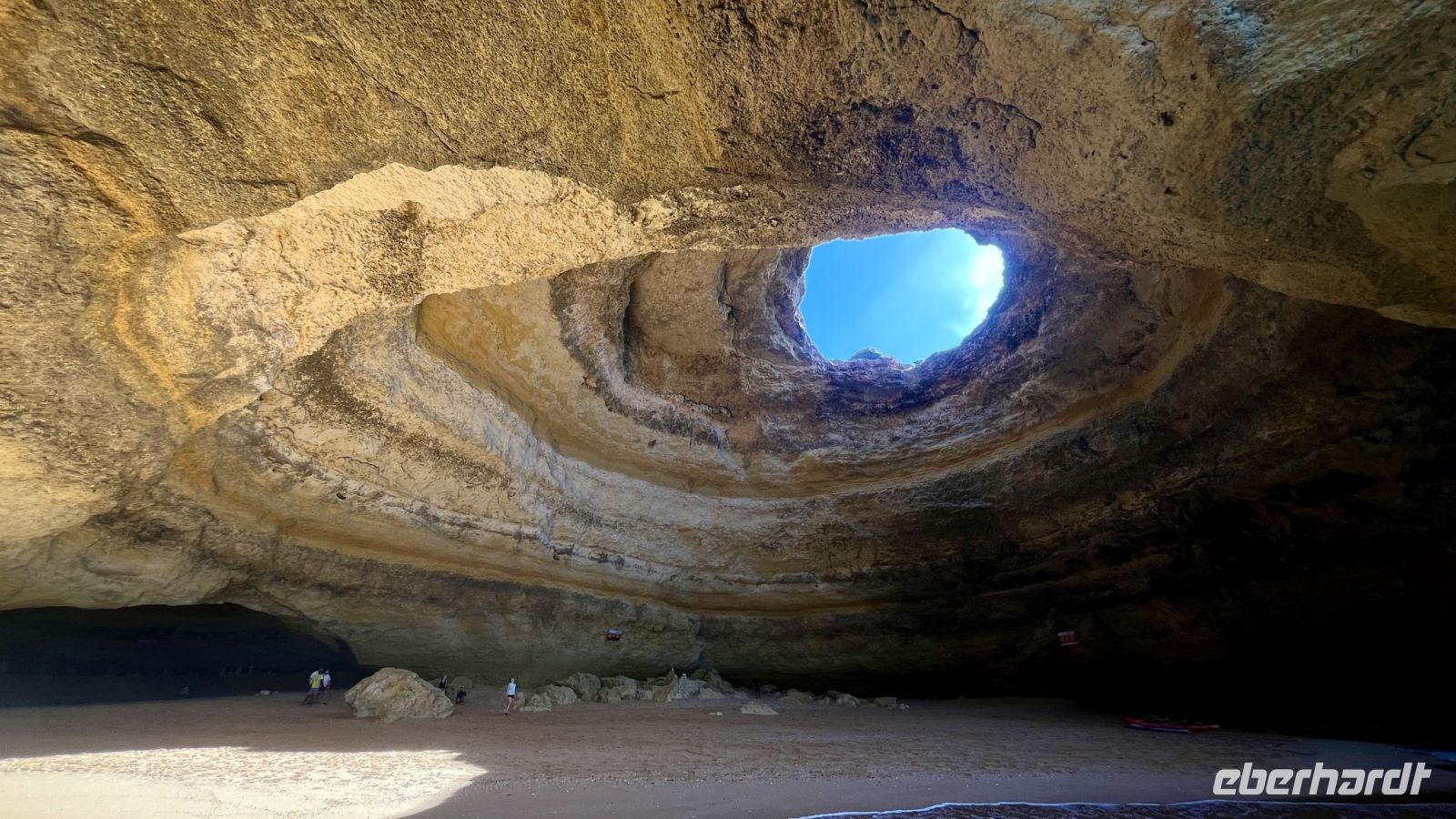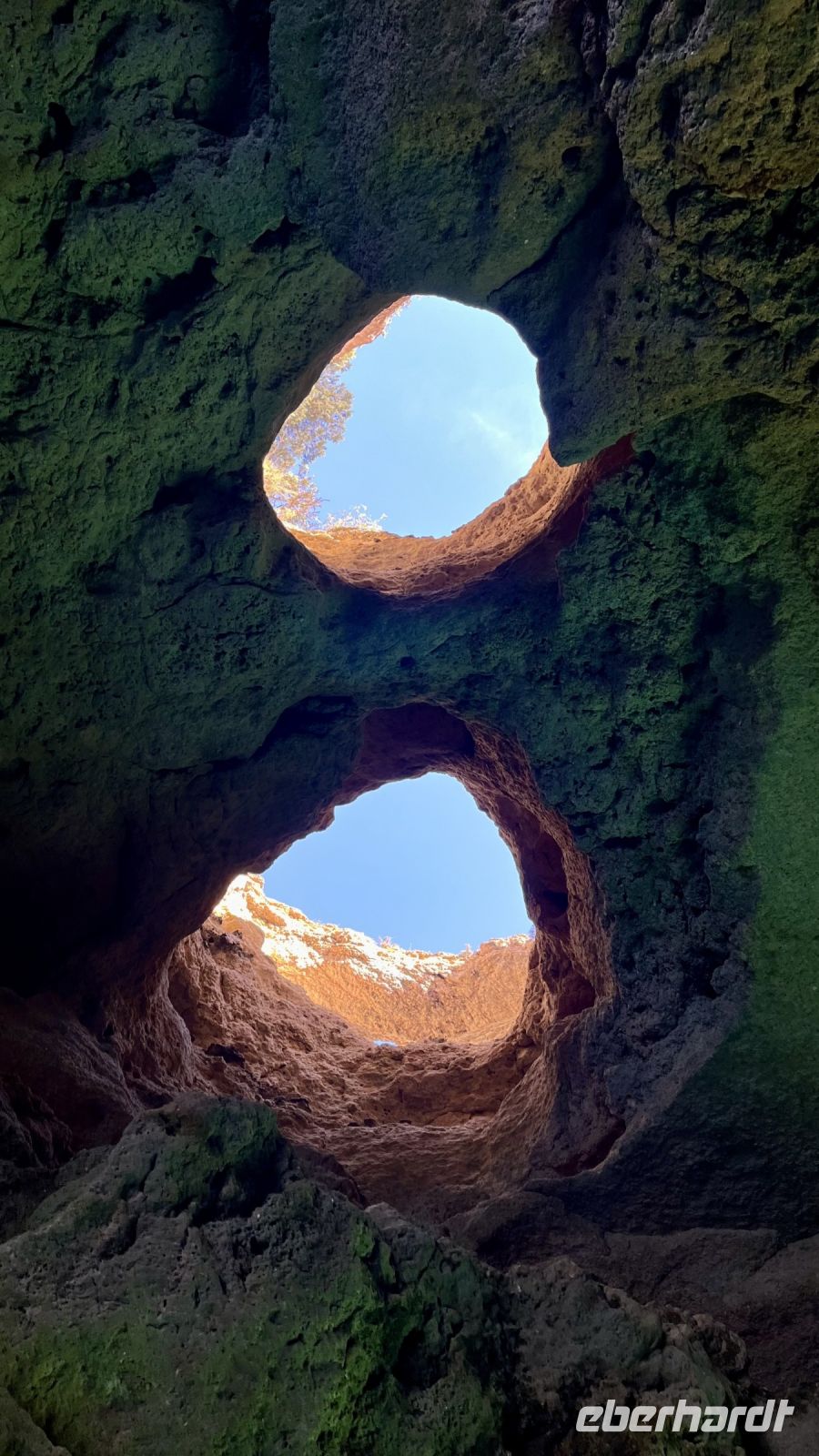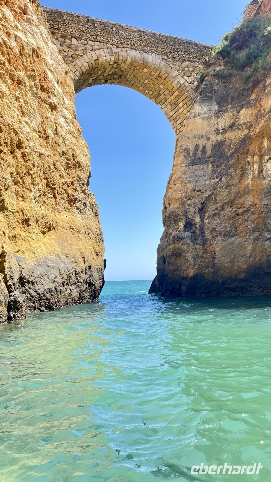 Aber zurück zu unserer eigenen Sache, wir waren zu einer Wanderung hierhergekommen. Wir begannen unseren Spaziergang am Fuße der Berge des Nationalparks Rocha da Pena und durchquerten das kleine Dorf Penina, das aussah wie aus einer handgemalten Postkarte. Dann ging es immer weiter nach oben, auf der Suche nach der Spitze der kleinen Berge. Dort angekommen, genossen wir die schöne Aussicht. Wir blickten auf das Meer in der Ferne. Die heiße Sonne lud unsere Körper mit Energie auf und motivierte uns, im kalten Wasser am Fuße des Wasserfalls ‚Queda do Vigário‘ Abkühlung zu suchen, der uns auf dem Weg nach unten erwartete. Wie jeden Tag erlebten wir auch heute die schöne Überraschung eines herrlichen Sonnenuntergangs. Doch auch unser nächtlicher Ausflug ist erwähnenswert und wir genossen ihn sehr intensiv.