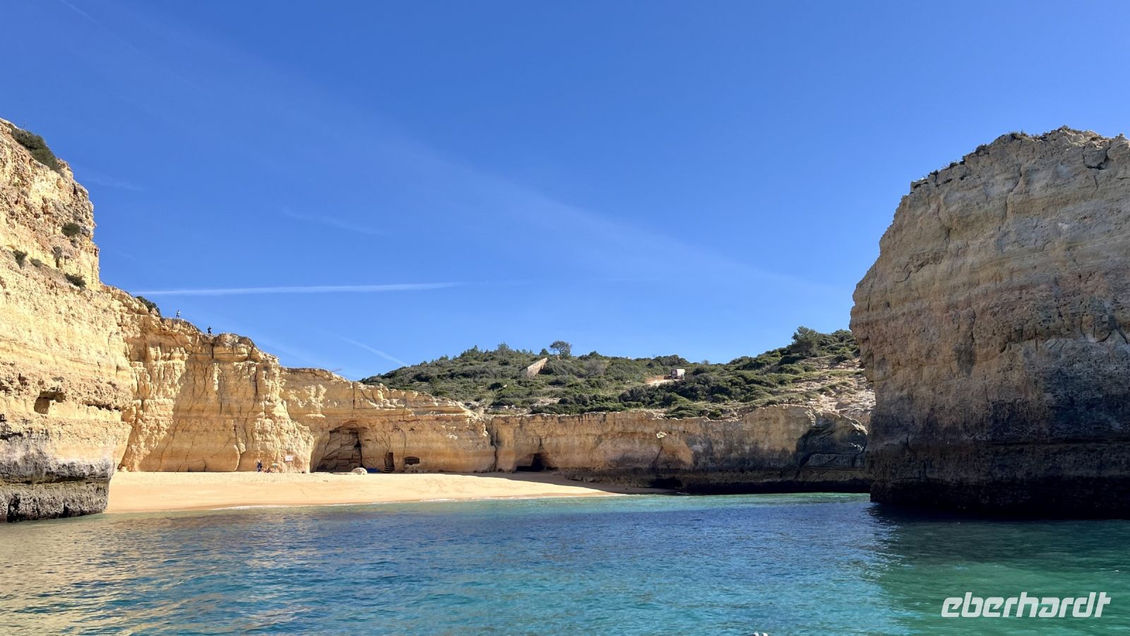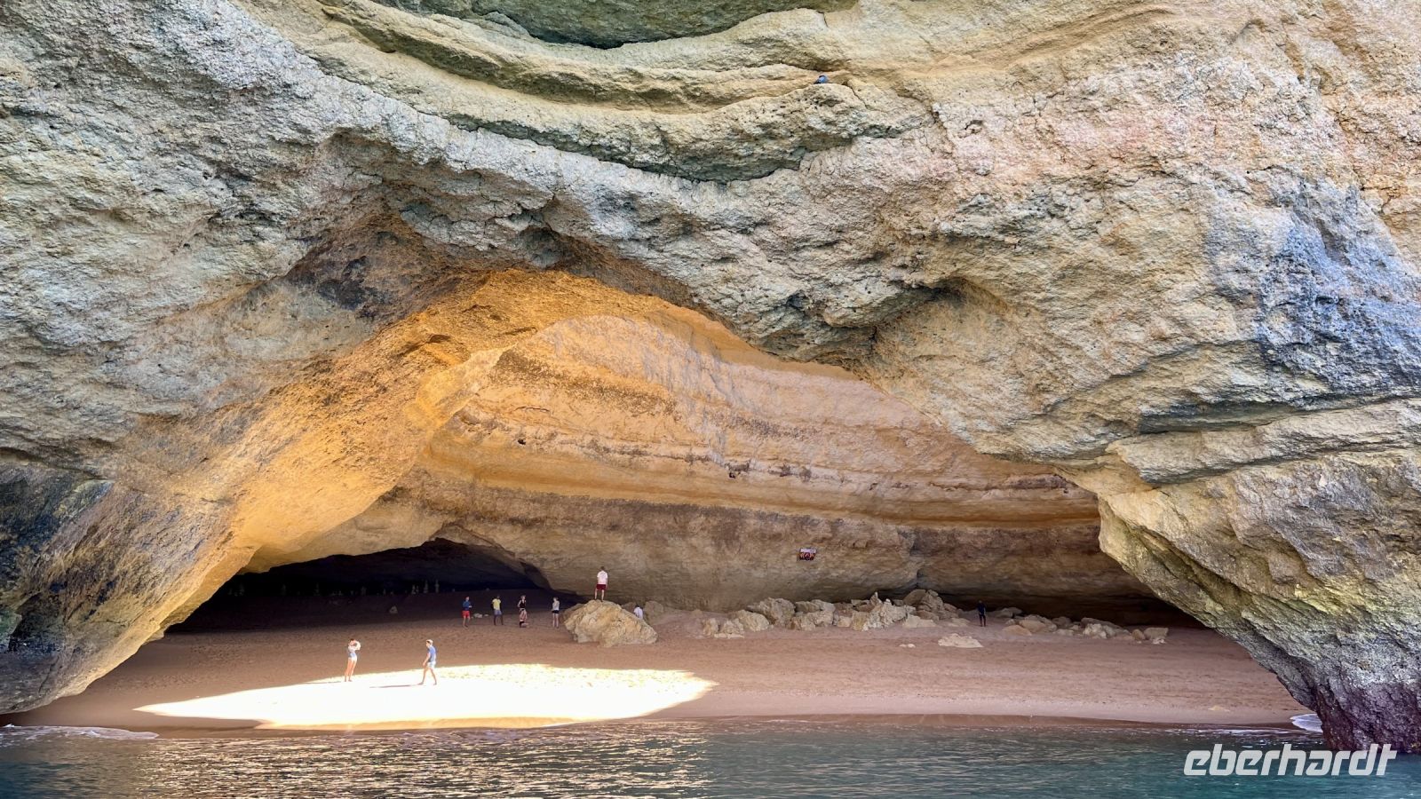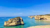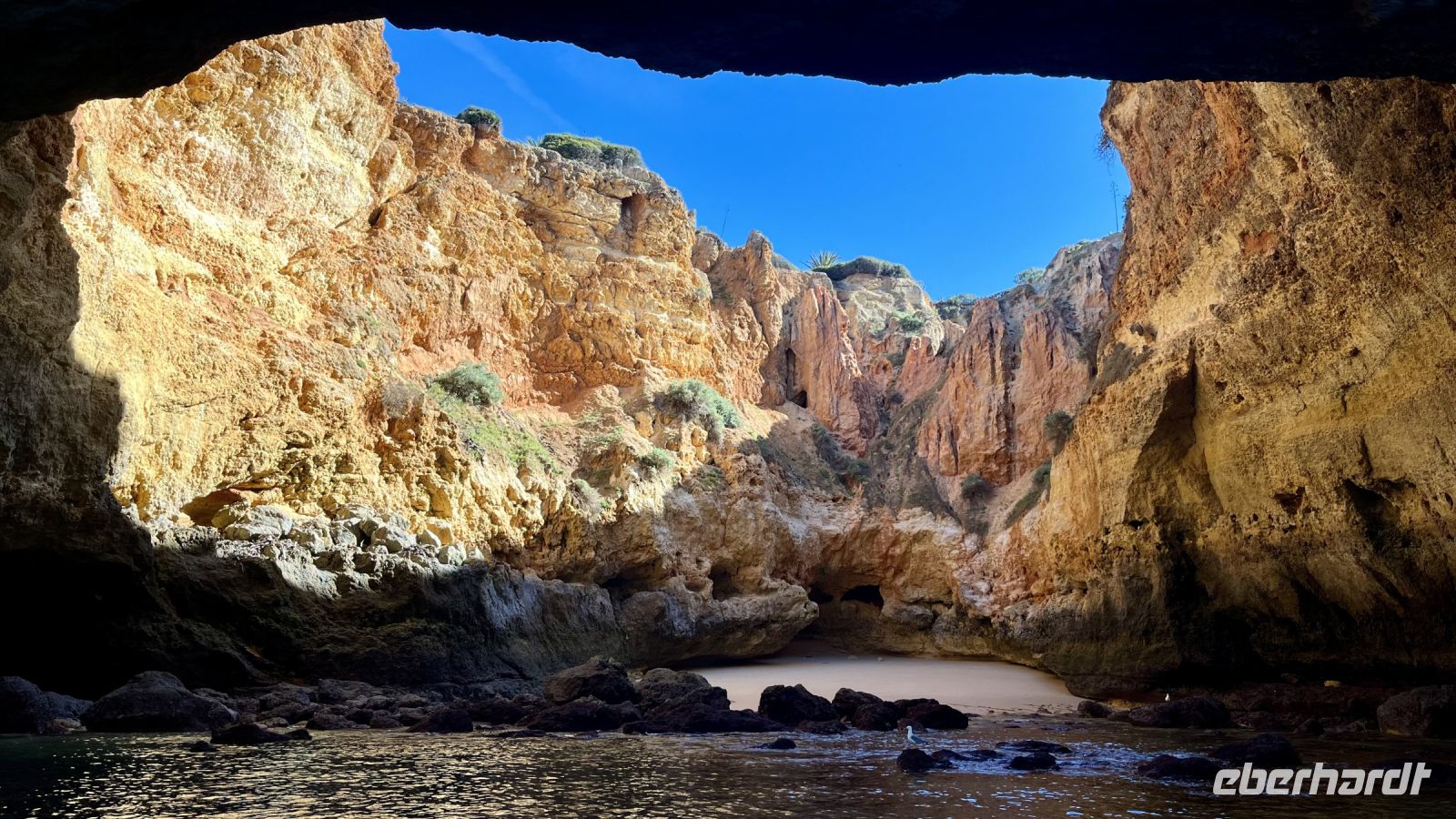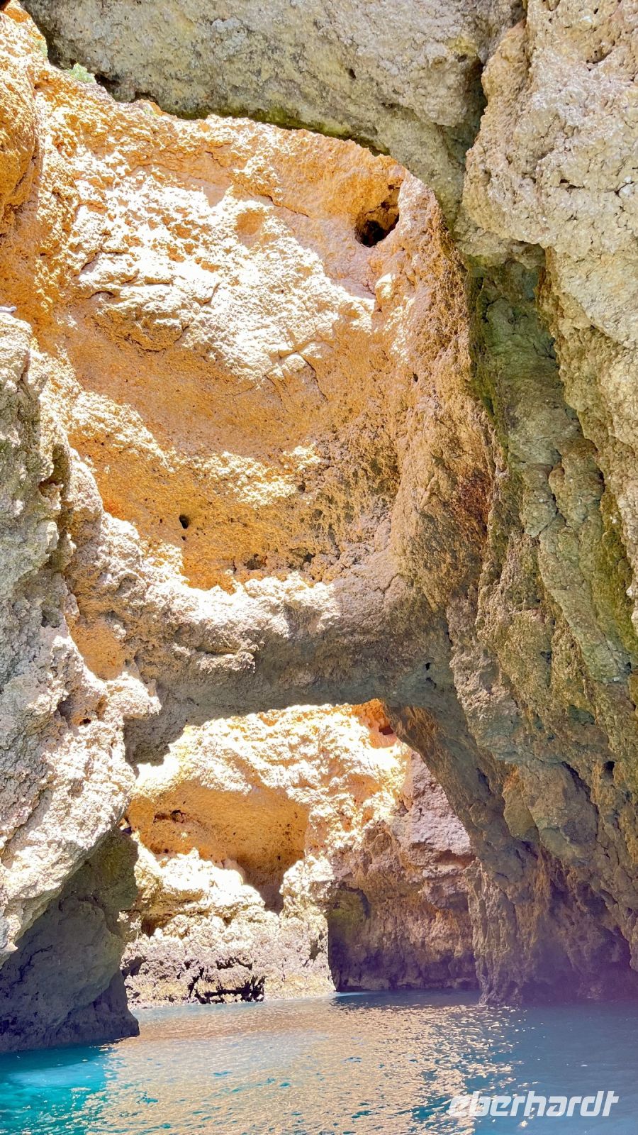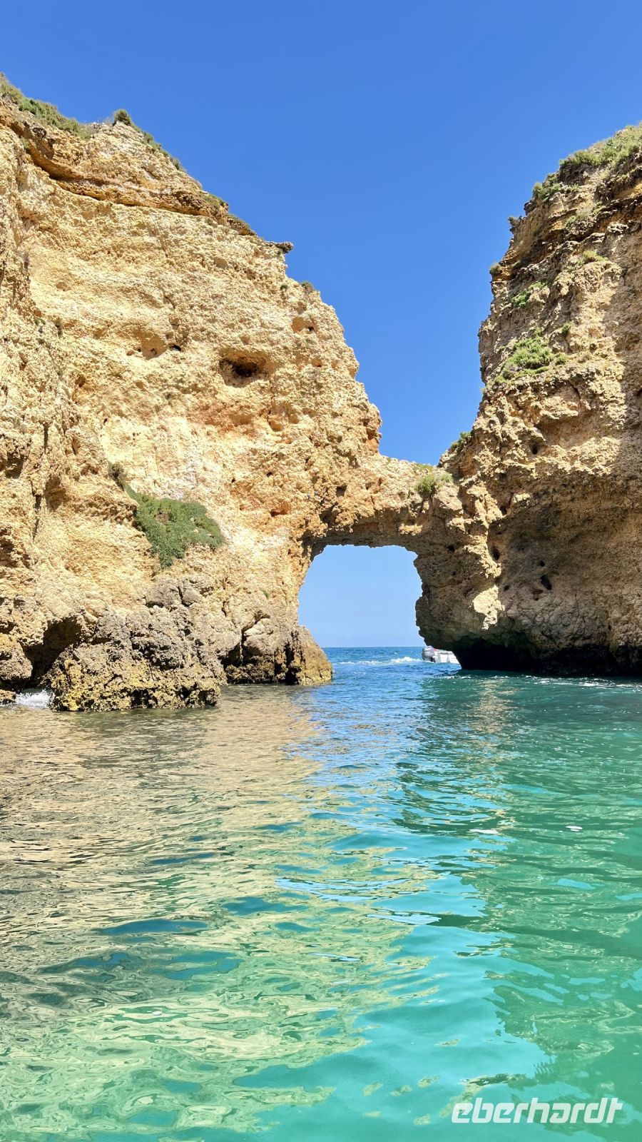 Aber zurück zu unserer eigenen Sache, wir waren zu einer Wanderung hierhergekommen. Wir begannen unseren Spaziergang am Fuße der Berge des Nationalparks Rocha da Pena und durchquerten das kleine Dorf Penina, das aussah wie aus einer handgemalten Postkarte. Dann ging es immer weiter nach oben, auf der Suche nach der Spitze der kleinen Berge. Dort angekommen, genossen wir die schöne Aussicht. Wir blickten auf das Meer in der Ferne. Die heiße Sonne lud unsere Körper mit Energie auf und motivierte uns, im kalten Wasser am Fuße des Wasserfalls ‚Queda do Vigário‘ Abkühlung zu suchen, der uns auf dem Weg nach unten erwartete. Wie jeden Tag erlebten wir auch heute die schöne Überraschung eines herrlichen Sonnenuntergangs. Doch auch unser nächtlicher Ausflug ist erwähnenswert und wir genossen ihn sehr intensiv.
