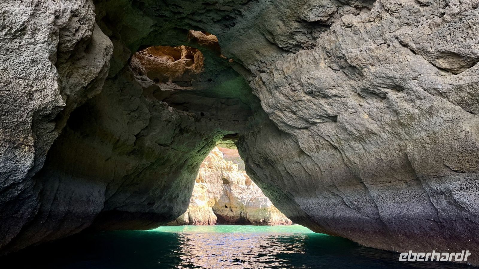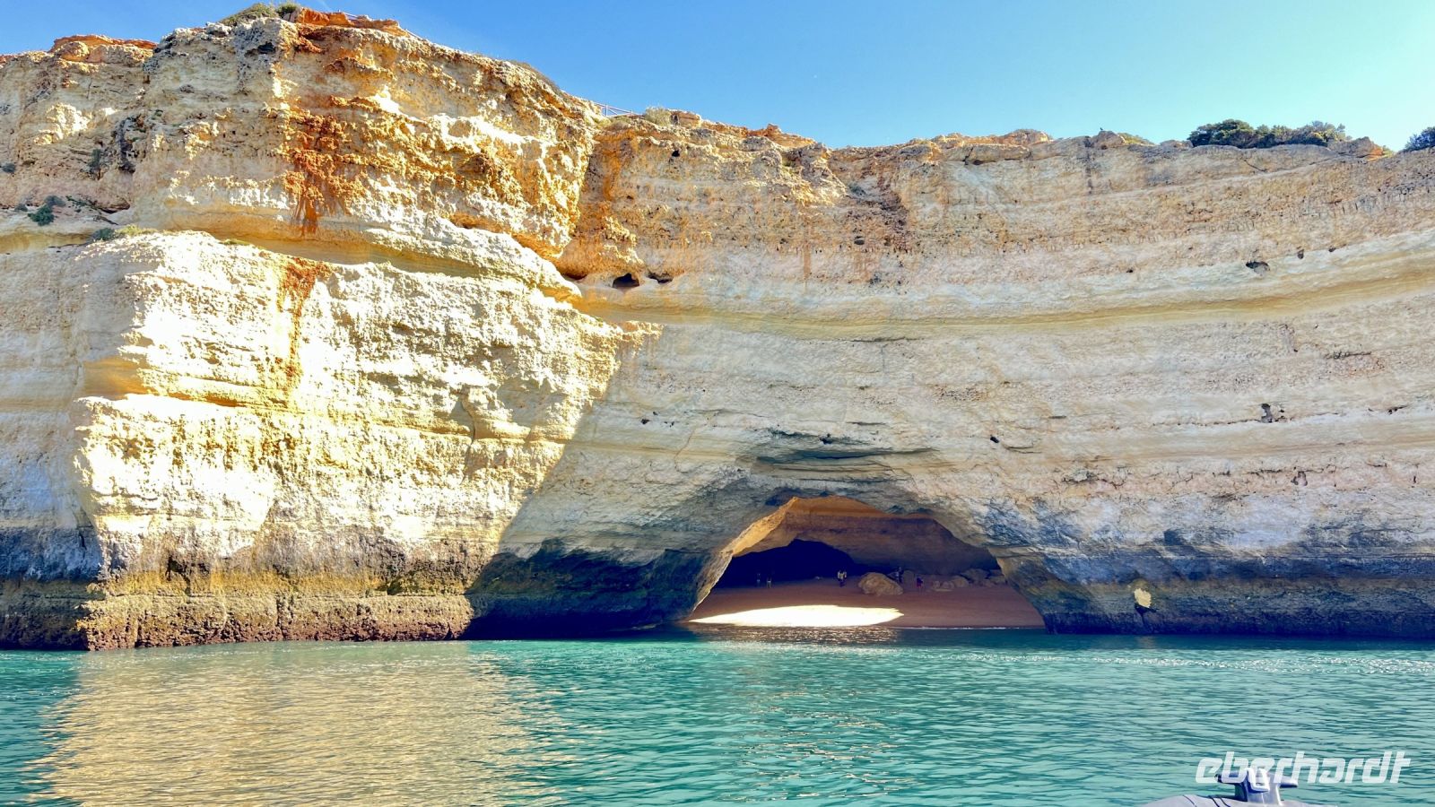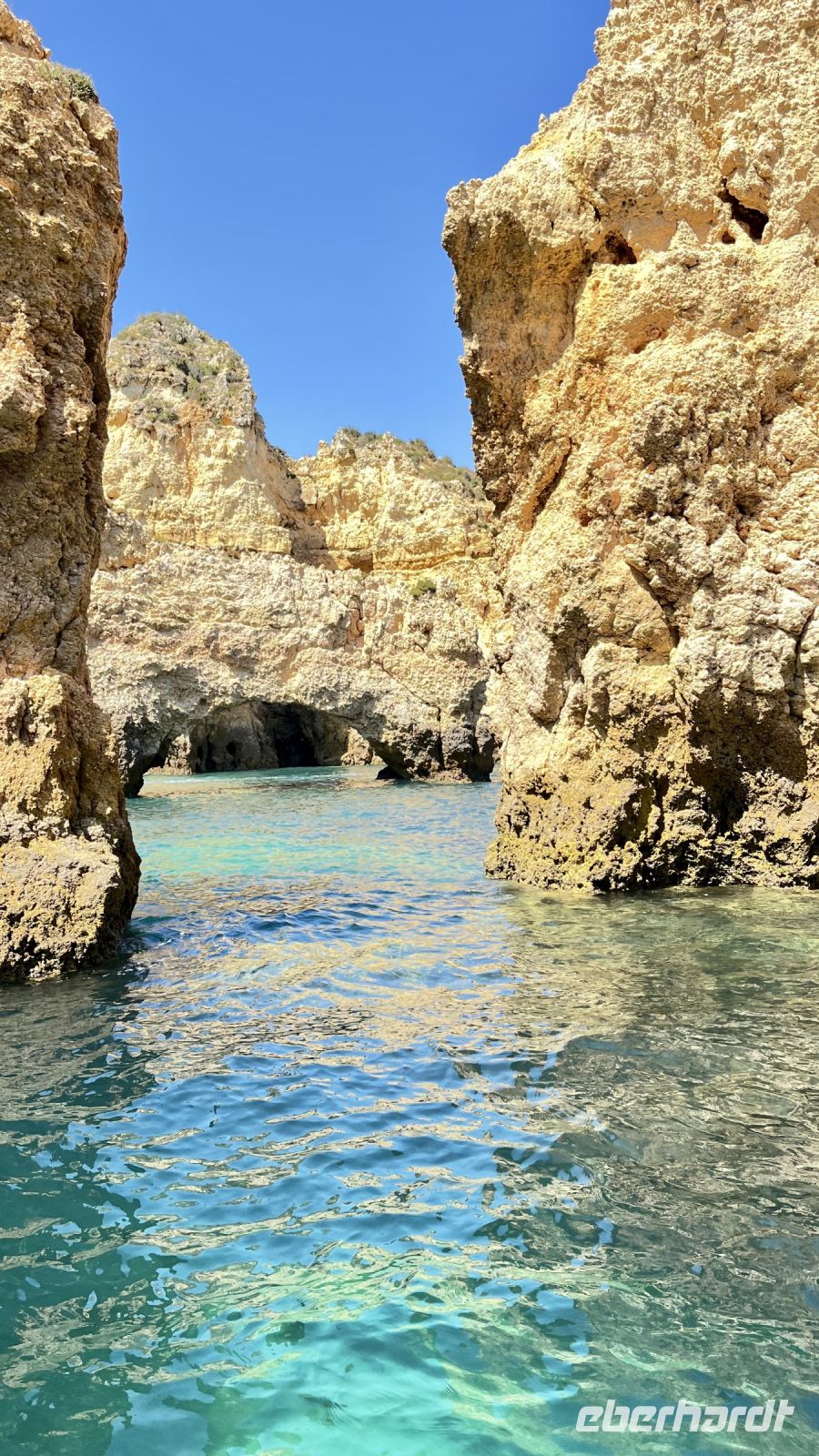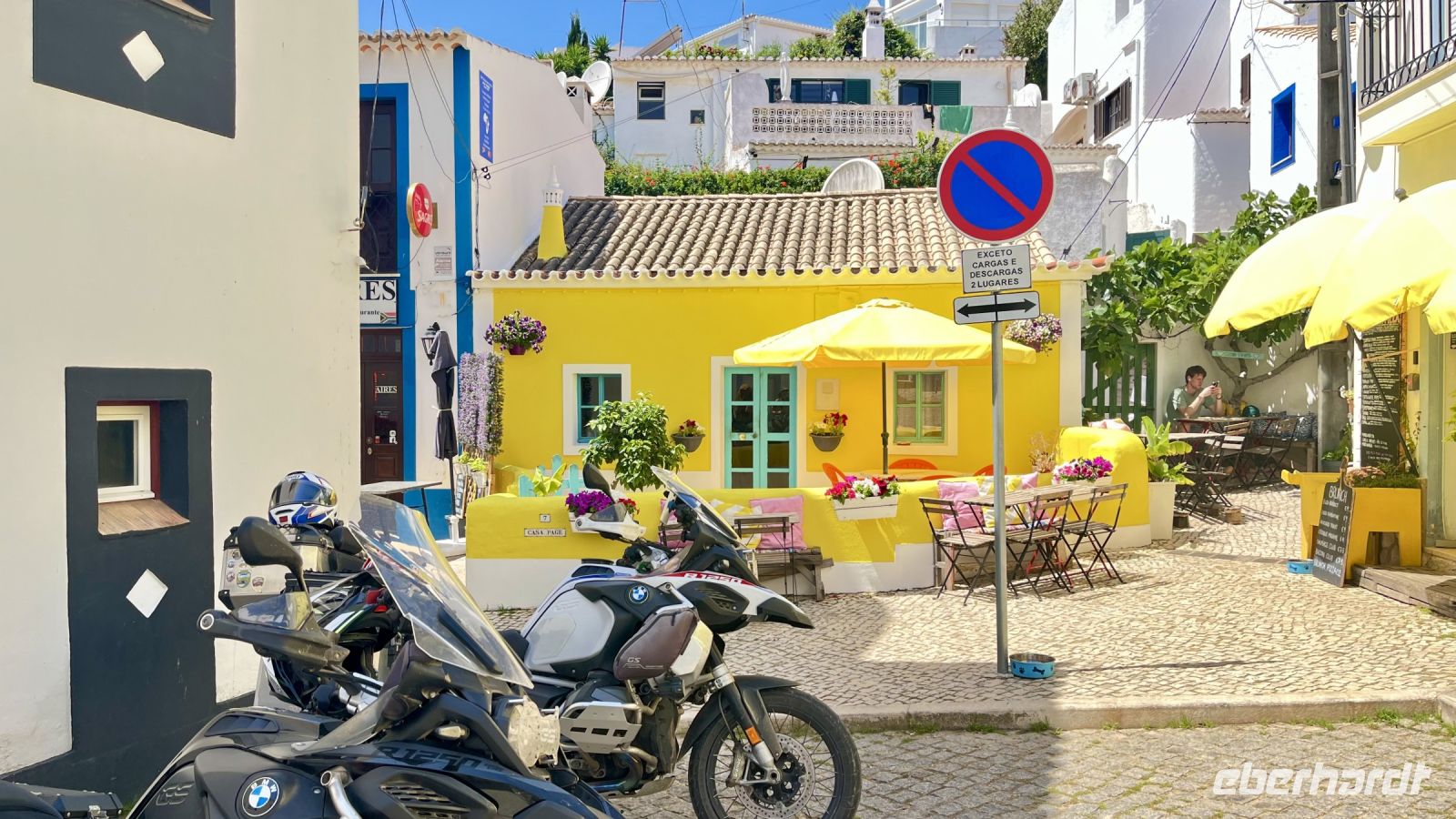 Aber zurück zu unserer eigenen Sache, wir waren zu einer Wanderung hierhergekommen. Wir begannen unseren Spaziergang am Fuße der Berge des Nationalparks Rocha da Pena und durchquerten das kleine Dorf Penina, das aussah wie aus einer handgemalten Postkarte. Dann ging es immer weiter nach oben, auf der Suche nach der Spitze der kleinen Berge. Dort angekommen, genossen wir die schöne Aussicht. Wir blickten auf das Meer in der Ferne. Die heiße Sonne lud unsere Körper mit Energie auf und motivierte uns, im kalten Wasser am Fuße des Wasserfalls ‚Queda do Vigário‘ Abkühlung zu suchen, der uns auf dem Weg nach unten erwartete. Wie jeden Tag erlebten wir auch heute die schöne Überraschung eines herrlichen Sonnenuntergangs. Doch auch unser nächtlicher Ausflug ist erwähnenswert und wir genossen ihn sehr intensiv.