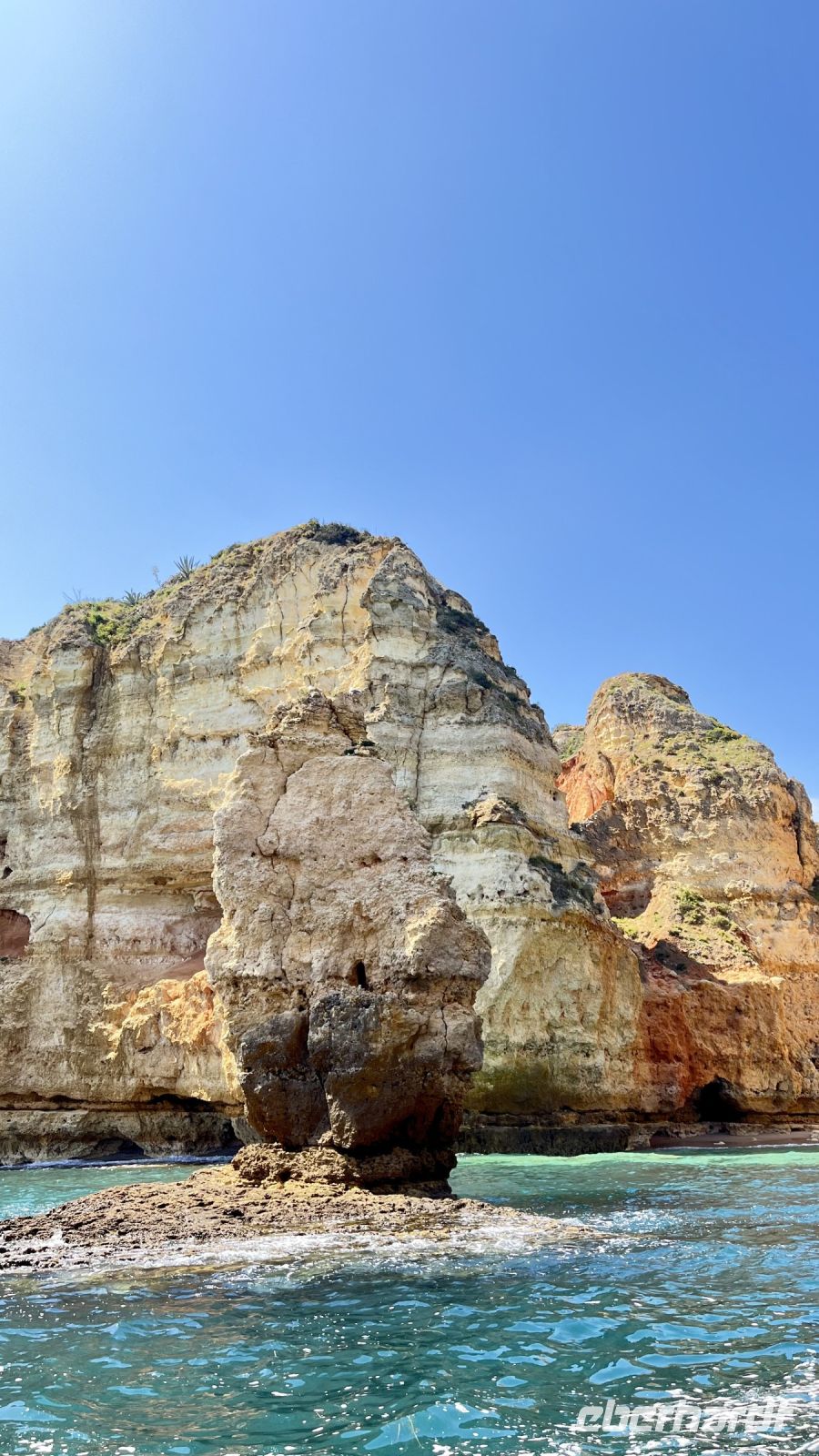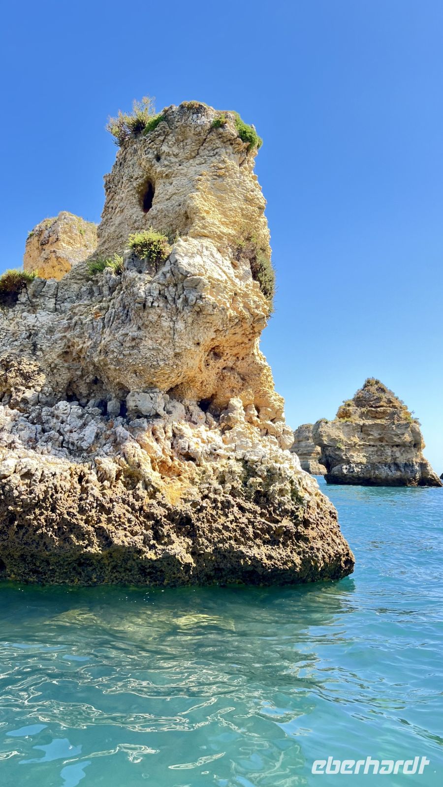 Unmöglich, es nicht mit einem Wimpernschlag für alle Ewigkeit zu unserem machen zu wollen. Die Schönheit in uns ist vergänglich, und hier im Meer waren die Felsen, die langsam gemeißelt worden waren, ein Meisterwerk, das durch den Meißel der Zeit, des Windes und des Wassers aus dem Wasser auftauchte.