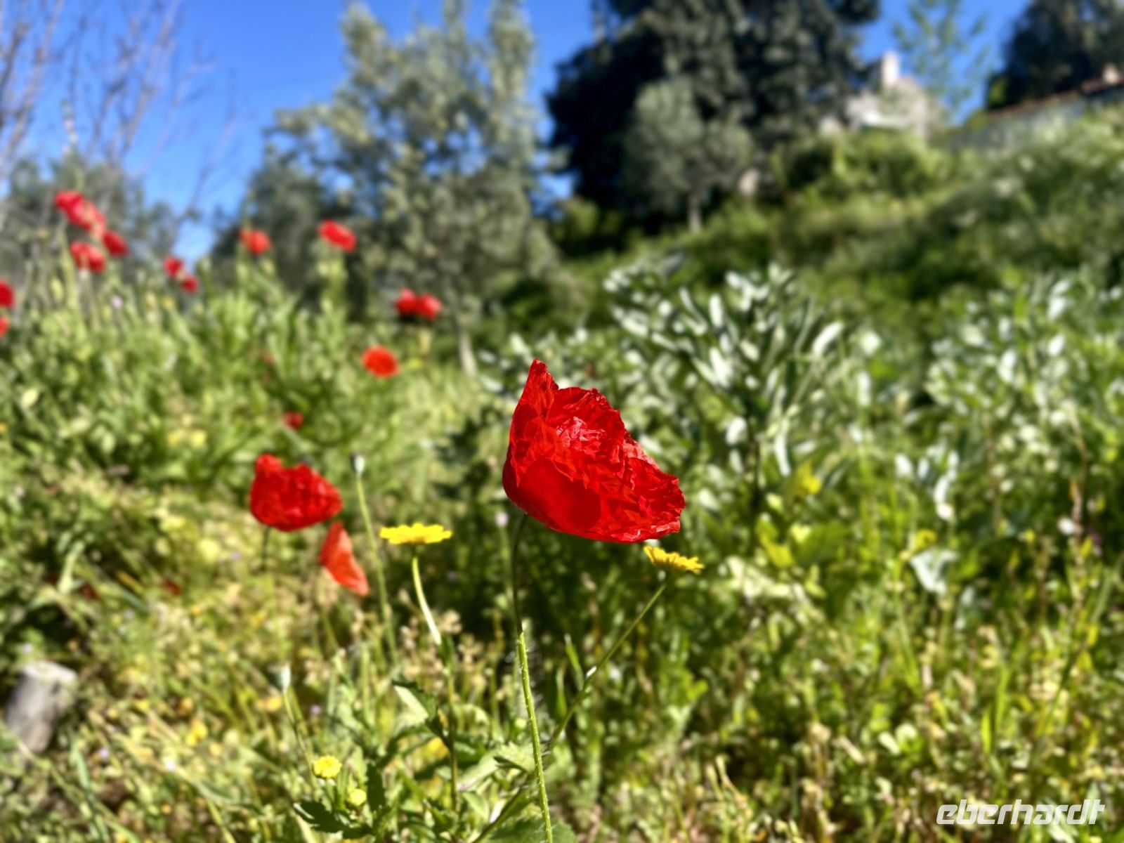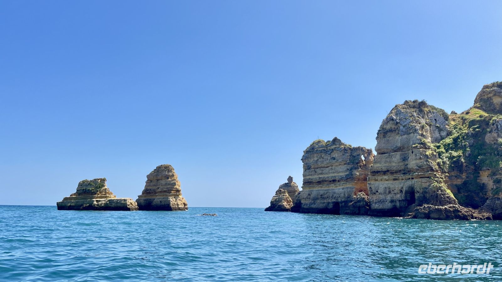 Dornenbüsche, die von Blumen umgeben waren, säumten den Rand der Klippen und verbanden gleichzeitig das Meer, den Himmel und unseren Weg. Eine Überraschung jagte die nächste, und wenn die Perspektive von oben schon grandios war, so war das Segeln über diesen Spiegel, den man das Meer nennt, das die Felsen säumte, etwas ganz Besonderes.
