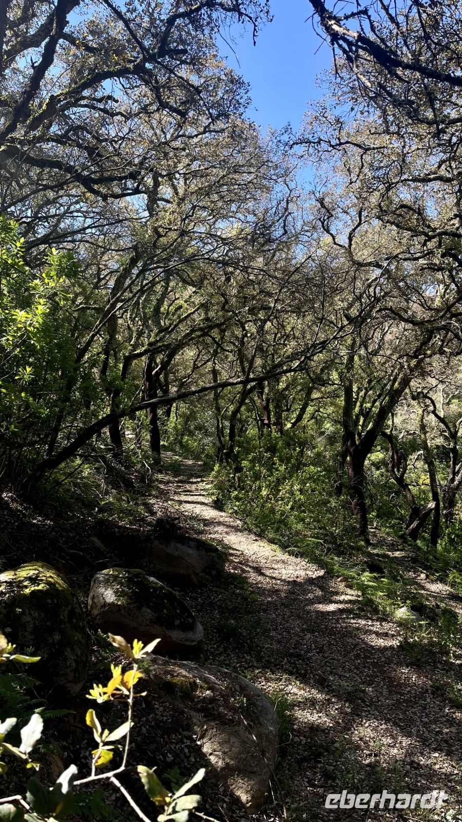 Und es ist nun mal eine Tatsache, dass diese kleine Reise, die wir Leben nennen, aus kurzen Reisen besteht. Jeden Tag wählen wir das Ziel neu. Eingetaucht in das tiefe Grün des Waldes, wo das Blätterdach die Sonnenstrahlen durchließ, wanderten wir weiter, bis wir den Gipfel erreichten und uns über allem befanden, unter dem grünen Mantel von Korkeichen, Feigen- und Eukalyptusbäumen und in der Ferne ... das Meer.