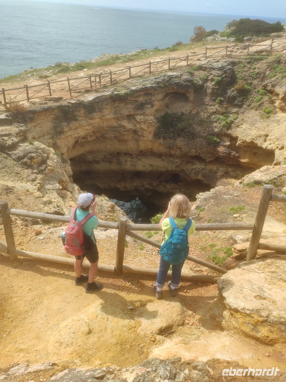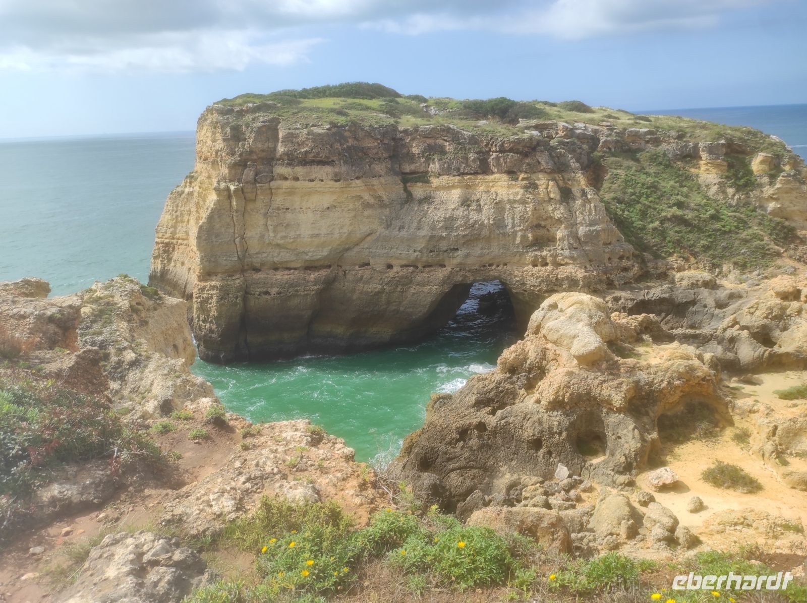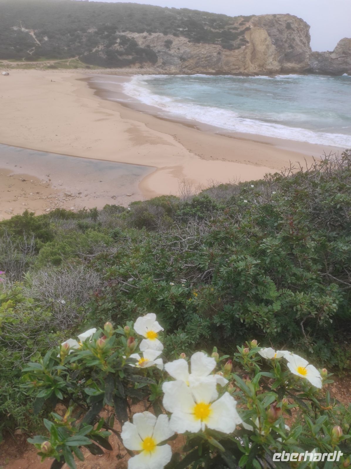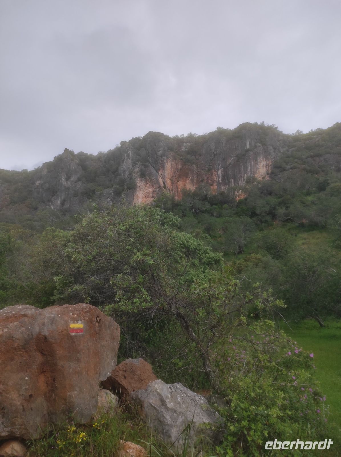 Bevor wir die heutige Wanderung angetreten haben, besuchten wir den Supermarkt, Oszkar und ich kauften lokale Spezialitäten für ein kleines EBERHARDT-TRAVEL Überraschungspicknick im Nationalpark ein. Die heutige Wanderung begann am Fuße des "Rocha da Pena National Park" im Landesinneren ! Wir erklommen das riesige Hochplateau und wanderten auf dem Rundwanderweg. Die Aussicht war zwar anfangs etwas bewölkt, aber sehr schön. Am höchsten Punkt dieses imposanten Tafelberges haben wir das Picknick genossen.