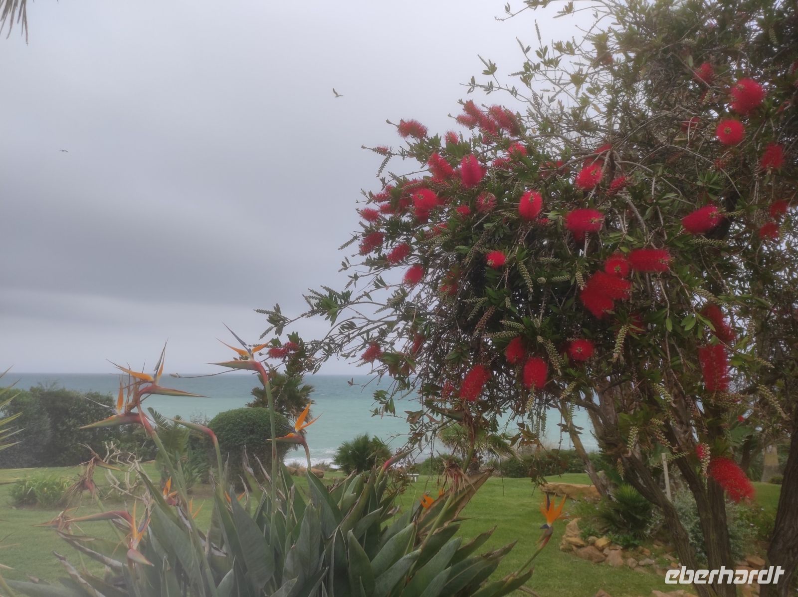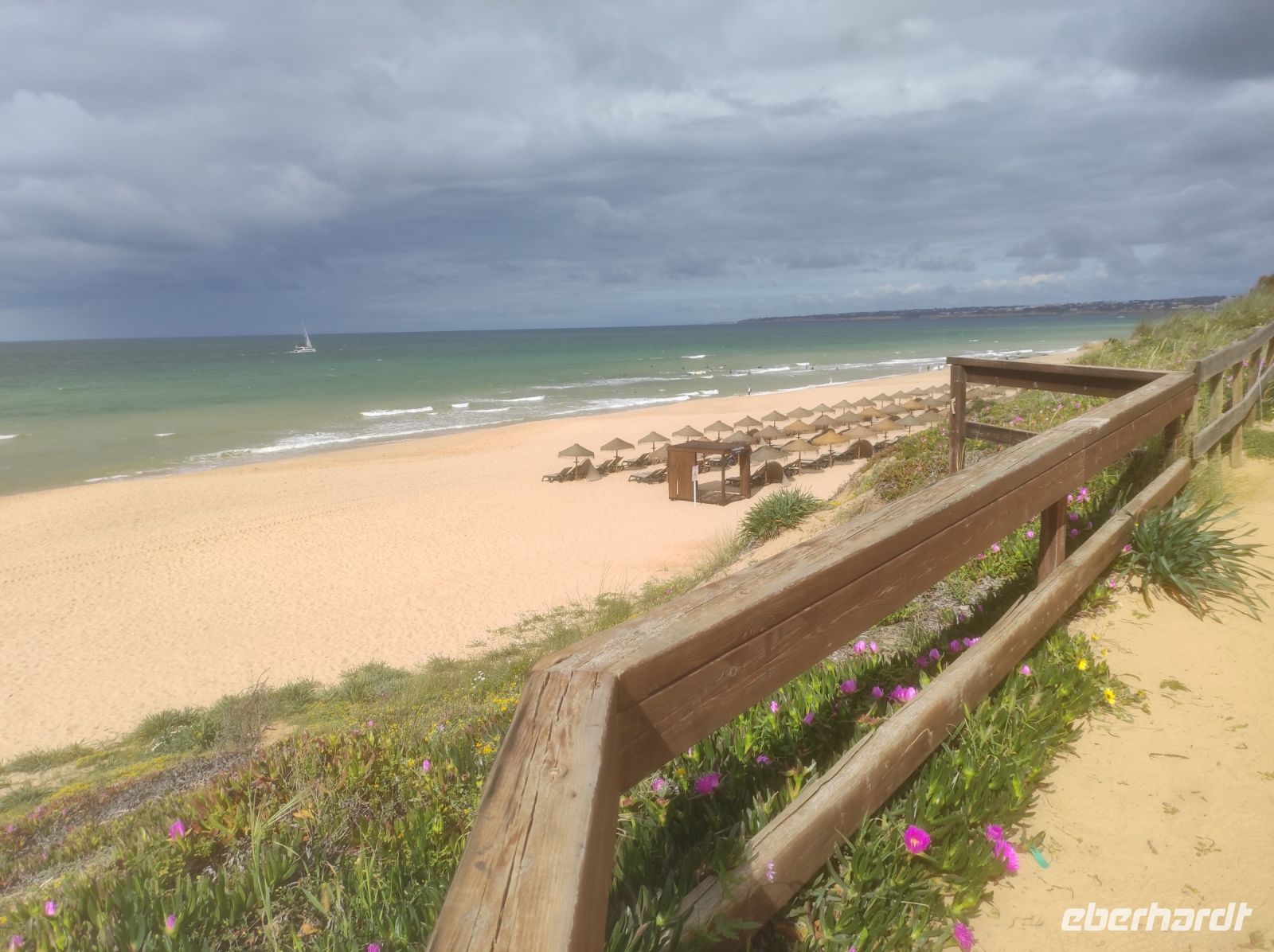 Heute hatte jeder Zeit, die Region auf eigene Faust zu erkundigen Oszkar hat es in der Gruppe sehr gut gefallen, so das mit uns gemeinsam noch eine Runde ab dem Hotel in Albufeira drehte. Wir trafen uns um 10 Uhr und liefen bei herrlichem Wetter noch einmal entlang der Küste gen Westen durch ein Feuchtgebiet bis zum langgezogenen Sandstrand Praia dos Arrifes. Danach ging es ins Landesinnere und wieder zurück zum Hotel. Gute das wir zeitig wieder da waren, denn ab 14 Uhr begann in Intervallen schauerartige Regenfälle bis in den Abend.
