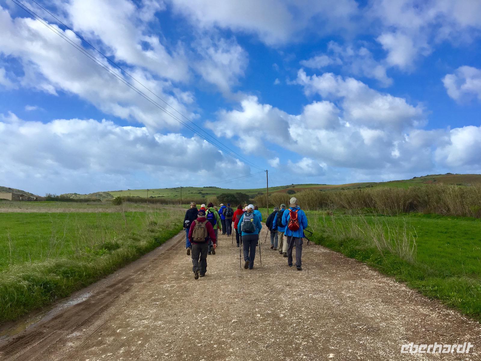 Nach einem ausgiebigen Frühstück wurden wir um 9:00 Uhr von unserem Busfahrer Antonio und unserer Reiseleiterin Lina am Bus empfangen. Gemeinsam machten wir uns dann auf den Weg nach Raposeira, unserem Ausgangspunkt für unsere erste Wanderung an der Algarve. Auf dem Weg dorthin konnten wir die Schönheit Portugals bestaunen. Nach einer langen Trockenzeit im vergangenen Winter und einer intensiven Regenzeit Anfang März zeigte sich uns die Natur hier in ihrer vollen grünen Pracht. Der erste Teil der heutigen Strecke führte uns zunächst über eine Erdstraße, die durch ein Flusstal verlief. Entlang dieser Strecke bot sich uns ein kleiner aber faszinierender Einblick in die Pflanzenwelt der Algarve. Am Ende dieses Abschnittes erreichten wir unser erstes Etappenziel, die Bucht von Barranco, welche insbesondere für unsere weiblichen Wanderer ein besonderes „Bonbon" bereithielt. Anschließend führte uns ein ansteigender schmaler Pfad auf einen beeindruckenden Klippenweg. Entlang der Steilküste, die einen phantastischen Ausblick auf die umgebene Landschaft und den Atlantik bot, führte uns der Weg Richtung Praia do Martinhal - unser heutiges Wandertagesziel. Nach einer anschließenden und entspannten Kaffeepause in Sagres machten wir noch eine Abstecher zum Cabo de São Vicente, dem südwestlichsten Punkt Europas. Nach dem Verzehr „der letzten Bratwurst vor Amerika" traten wir unsere Heimreise zum Hotel an, wo wir den gelungen ersten Wandertag bei einem gemeinsamen Abendessen ausklingen ließen.
