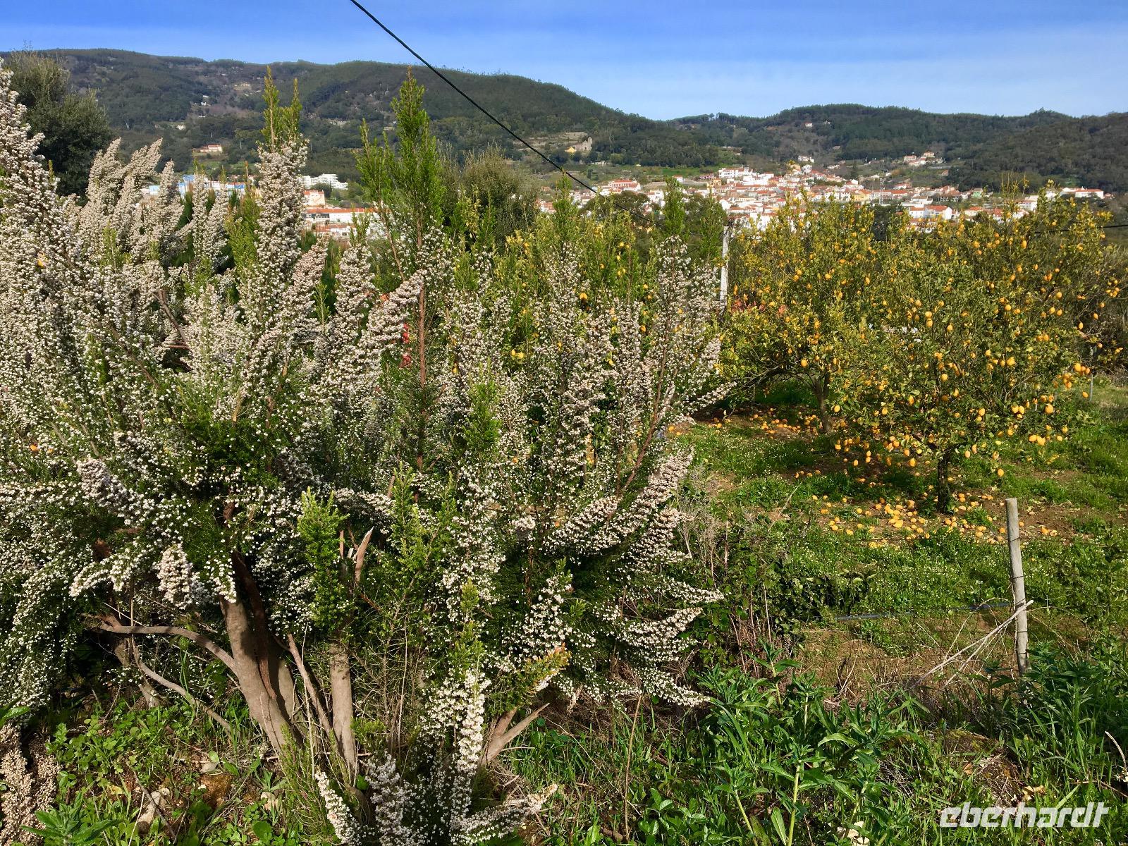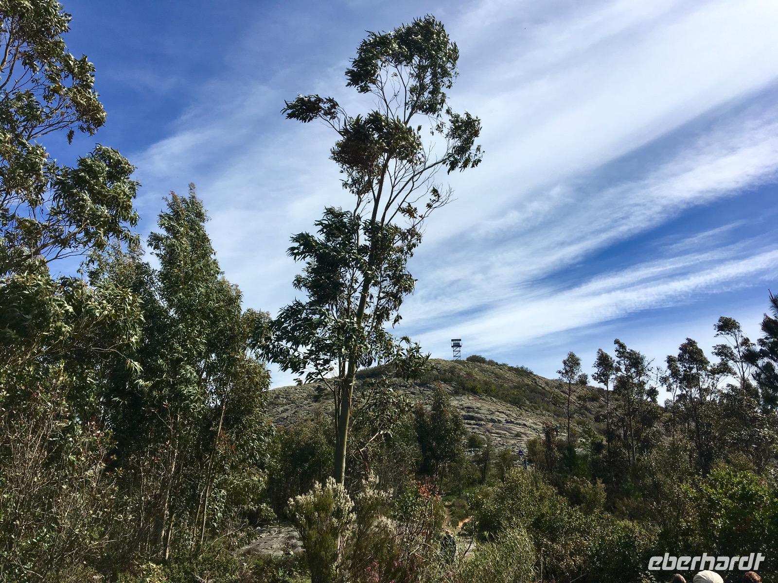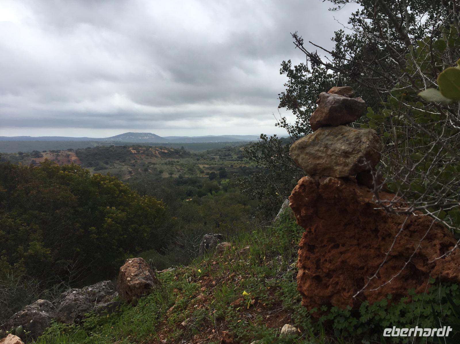 Ziel unserer heutigen Wanderung ist der Picota (773 m) gewesen, ein markanter und aussichtsreicher Gipfel südöstlich der Stadt Monchique. Zu Beginn führte uns die Tour über eine Asphaltstraße. Gesäumt von Gärten, in denen unzählige Zitronenbäume standen, gelangten wir auf dieser Straße zum Hauptweg der Via Algarviana. Auf diesem historischen Pilgerweg durchwanderten wir zunächst einen eindrucksvollen Korkeichenwald und durchquerten anschließend einen Eukalyptuswald. Bereits kurz danach sahen wir schon die Aussichtswarte auf dem Picota. Nach einem windigen Anstieg erreichten wir dann bald auch den Gipfel und genossen bei einer kleinen Ruhepause den großartigen 360°-Blick über die Algarve, bis hin zum Atlantik. Nach dem anschließenden Abstieg fuhren wir zum Abschluss des heutigen Wandertages in den kleinen Kurort Caldas de Monchiques. Hier überraschten Lina und ich unsere tapferen Wanderer mit einem reichhaltigen Picknick am Brunnen des „Fontes dos Amores". Portugiesische Spezialitäten wie Oliven, Johanneskernbrot, Schinken, Käse, Osterkuchen und Wein ließen die Herzen höherschlagen und die Gesichter strahlen, bevor wir uns anschließend müde aber gestärkt auf dem Heimweg machten.
