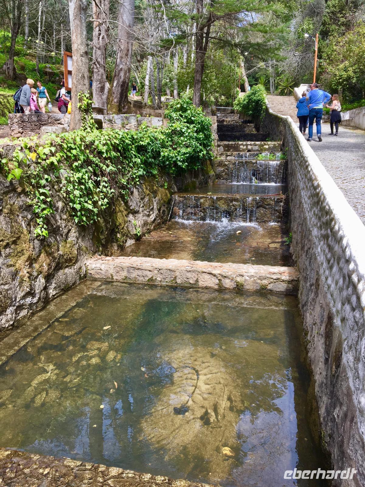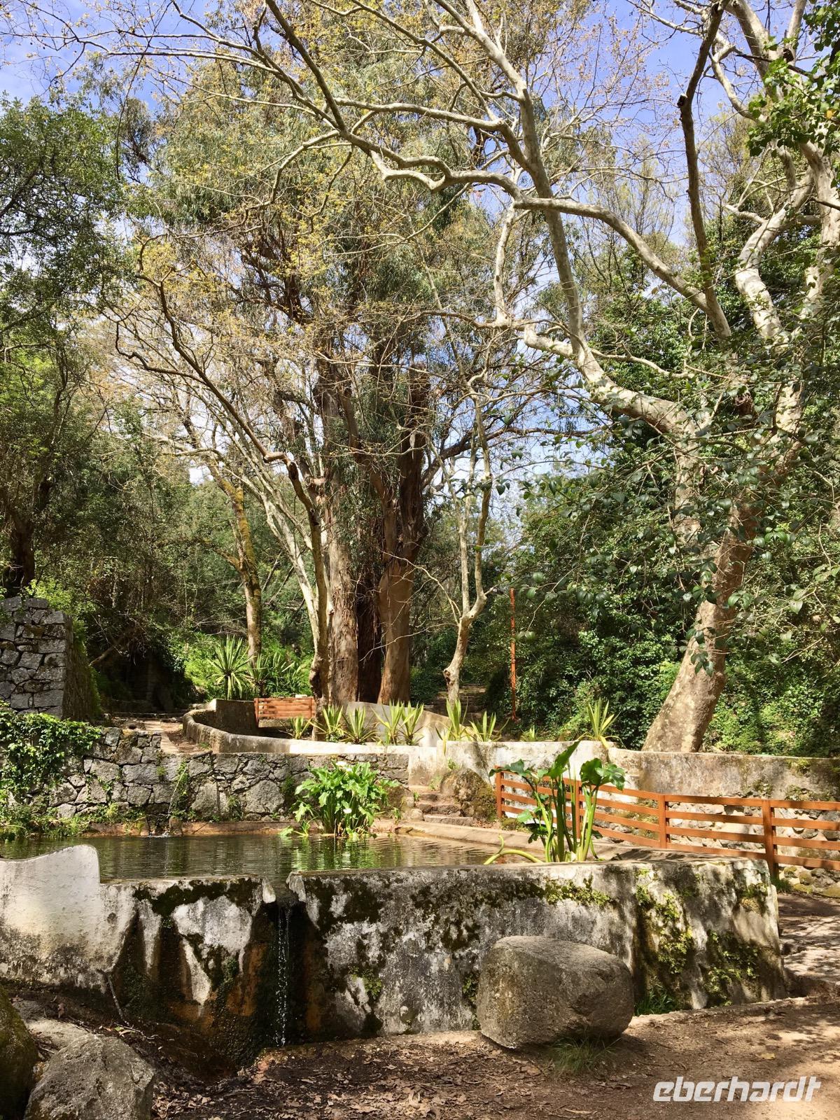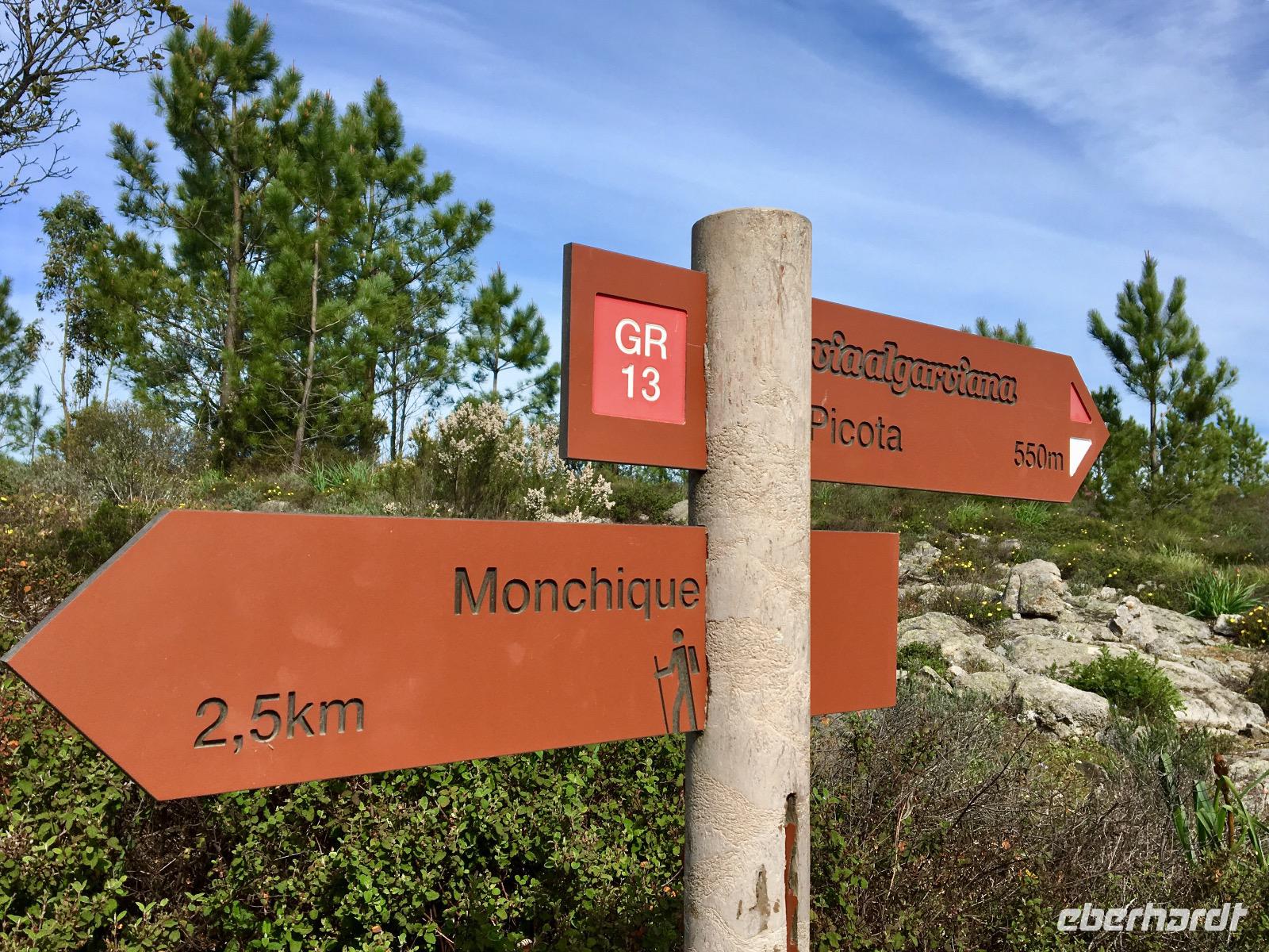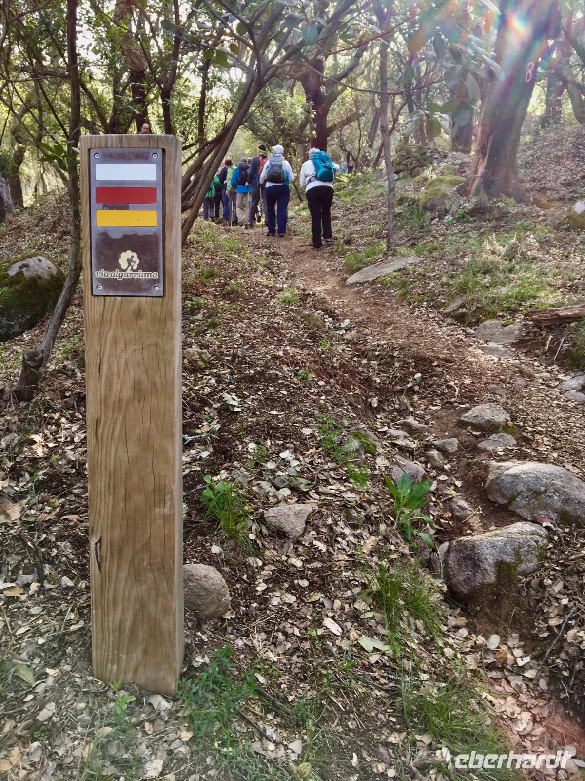 Ziel unserer heutigen Wanderung ist der Picota (773 m) gewesen, ein markanter und aussichtsreicher Gipfel südöstlich der Stadt Monchique. Zu Beginn führte uns die Tour über eine Asphaltstraße. Gesäumt von Gärten, in denen unzählige Zitronenbäume standen, gelangten wir auf dieser Straße zum Hauptweg der Via Algarviana. Auf diesem historischen Pilgerweg durchwanderten wir zunächst einen eindrucksvollen Korkeichenwald und durchquerten anschließend einen Eukalyptuswald. Bereits kurz danach sahen wir schon die Aussichtswarte auf dem Picota. Nach einem windigen Anstieg erreichten wir dann bald auch den Gipfel und genossen bei einer kleinen Ruhepause den großartigen 360°-Blick über die Algarve, bis hin zum Atlantik. Nach dem anschließenden Abstieg fuhren wir zum Abschluss des heutigen Wandertages in den kleinen Kurort Caldas de Monchiques. Hier überraschten Lina und ich unsere tapferen Wanderer mit einem reichhaltigen Picknick am Brunnen des „Fontes dos Amores". Portugiesische Spezialitäten wie Oliven, Johanneskernbrot, Schinken, Käse, Osterkuchen und Wein ließen die Herzen höherschlagen und die Gesichter strahlen, bevor wir uns anschließend müde aber gestärkt auf dem Heimweg machten.