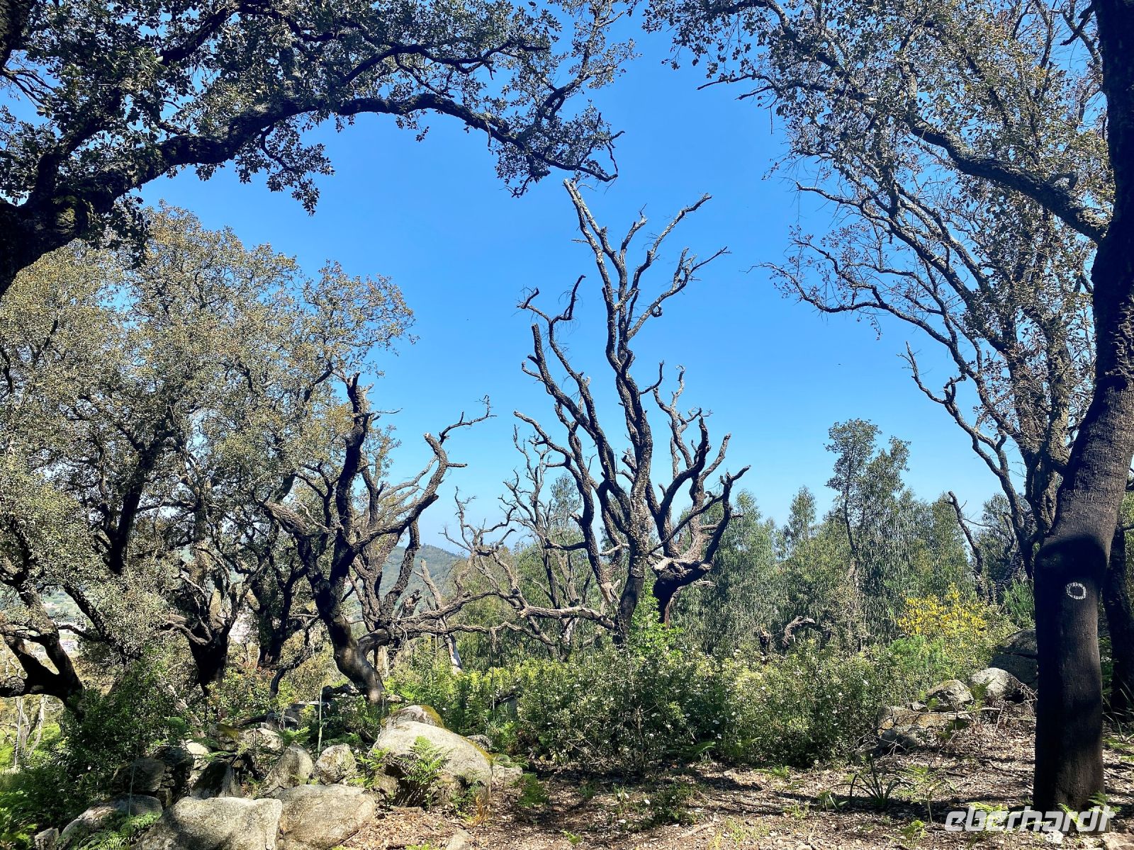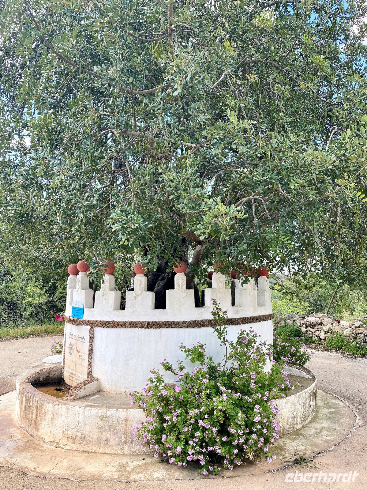Das letztes Ziel unserer achttägigen Wander- und Erlebnisreise ist das Monchique-Gebirge, wo wir den Berg Picota (773 m) besteigen wollen. Zu Beginn führt uns der Weg über eine Asphaltstraße. Gesäumt von Gärten, in denen unzählige Zitronenbäume stehen, gelangen wir auf dieser Straße zum Hauptweg der Via Algarviana. Auf diesem historischen Pilgerweg durchwandern wir zunächst einen eindrucksvollen Korkeichen- und durchqueren anschließend einen Eukalyptuswald. Bereits kurz danach sehen wir schon die Aussichtswarte auf dem Picota. Auch heute ist die Sonne wieder erbarmungslos, was uns aber nicht daran hindert auf den Gipel zu steigen. Auf gut 773 Metern genießen wir bei einer kleinen Rast den großartigen 360°-Blick über die Algarve, bis hin zum Atlantik. Da hat sich der Aufstieg auf jeden Fall gelohnt. Nach dem Abstieg fahren wir zum Abschluss des heutigen Wandertages noch in den kleinen Kurort Caldas de Monchiques. Hier überraschen Lina und ich, zum Abschied, unsere tapferen Wanderer mit einem reichhaltigen Picknick am Brunnen des „Fontes dos Amores“. Portugiesische Spezialitäten wie Oliven, Johanneskernbrot, Schinken, Käse, Kuchen und Wein lassen die Herzen höherschlagen und die Gesichter strahlen, bevor wir uns anschließend müde aber gestärkt auf den Weg zurück zum Hotel machen, wo wir Abschied von Lina und unserem Busfahrer nehmen müssen. So endet der heutige Tag für die meisten von uns wohl mit einem lachenden und einem weinenden Auge.