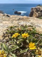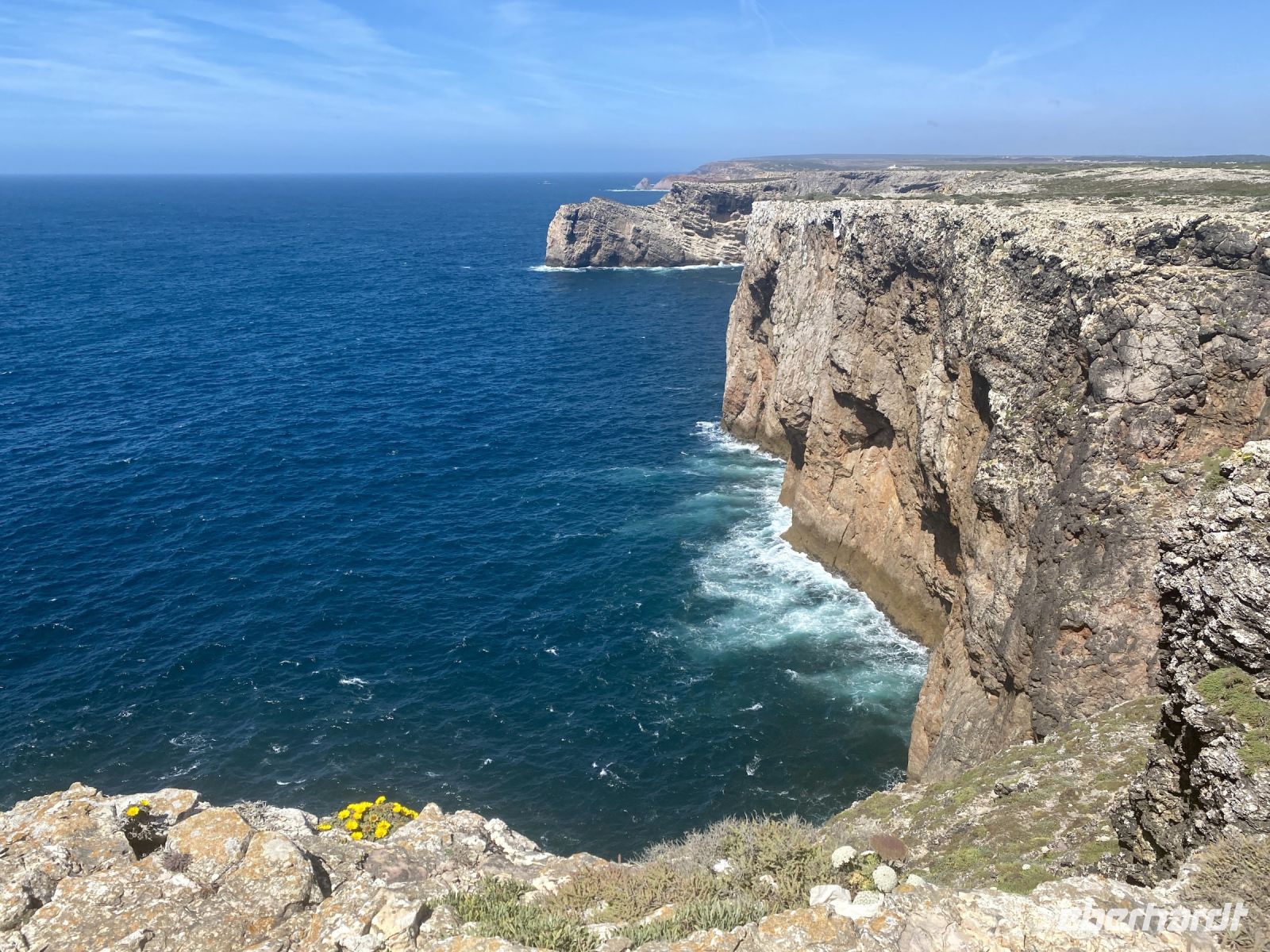 Unser Plan für heute: eine erste Wanderung am Vormittag entlang der Westküste der Algarve. Gesagt getan und so treffen wir uns nach einem ausgiebigen und reichhaltigen Frühstück pünktlich um 08:30 Uhr mit unserer lieben Wanderführerin Lina am Bus und beginnen voller Vorfreude unser erstes Wanderabenteuer an der Algarve. Doch bevor es so richtig losgehen kann, decken wir uns in einem typisch portugiesischen Supermarkt noch mit etwas Obst, kleinen Snacks und ganz viel Wasser für die nächsten Tage ein. Dann setzen wir unseren Weg fort und erreichen nach gut einer Stunde Fahrzeit Raposeira, den Startpunkt für unsere heutige Wanderung. Der erste Teil führt uns durch ein landschaftlich schönes und um diese Jahreszeit vor allem grünen Tal bis zum Praia do Barranco – einem schönen Natursandstrand, in einer hübschen, kleinen Bucht. Um uns herum erheben sich Felswände aus Kalkstein in hellen Farbtönen und vor uns liegt das klare, türkisfarbene Meer. Ein perfekter Platz für eine kleine Pause. Gestärkt geht es anschließend hinauf auf die Klippen, wo wir unseren Weg oberhalb des Meeres fortsetzen. Immer wieder eröffnen sich uns spektakuläre Blicke auf die umgebene Landschaft und den Atlantik. Entlang der romantisch-wilden Küstenlinie mit ihrer kleinwüchsigen Vegetation und dem Duft von Zistrosen in der Nase gelangen wir nach weiteren 6 km zum Praia do Martinhal, wo wir unsere heutige Wanderung nach gut 11 Kilometern beenden. Nach einem Abstecher zum Cabo de São Vicente, dem südwestlichsten Punkt Europas und dem Verzehr „der letzten Bratwurst vor Amerika“ legen wir zum Abschluss dieses ersten Wandertages noch eine gemütliche Kaffeepause in Sagres ein, bevor wir am späten Nachmittag unsern Heimweg zum Hotel antreten.