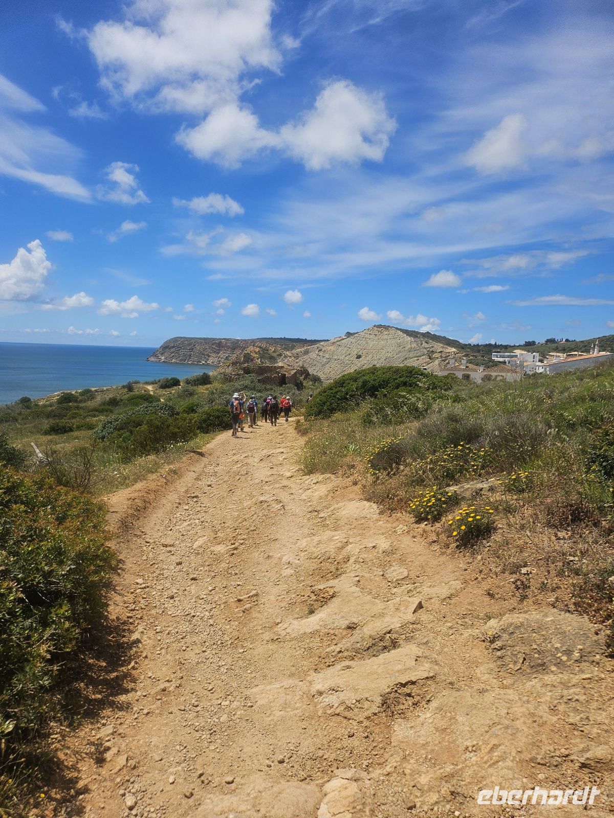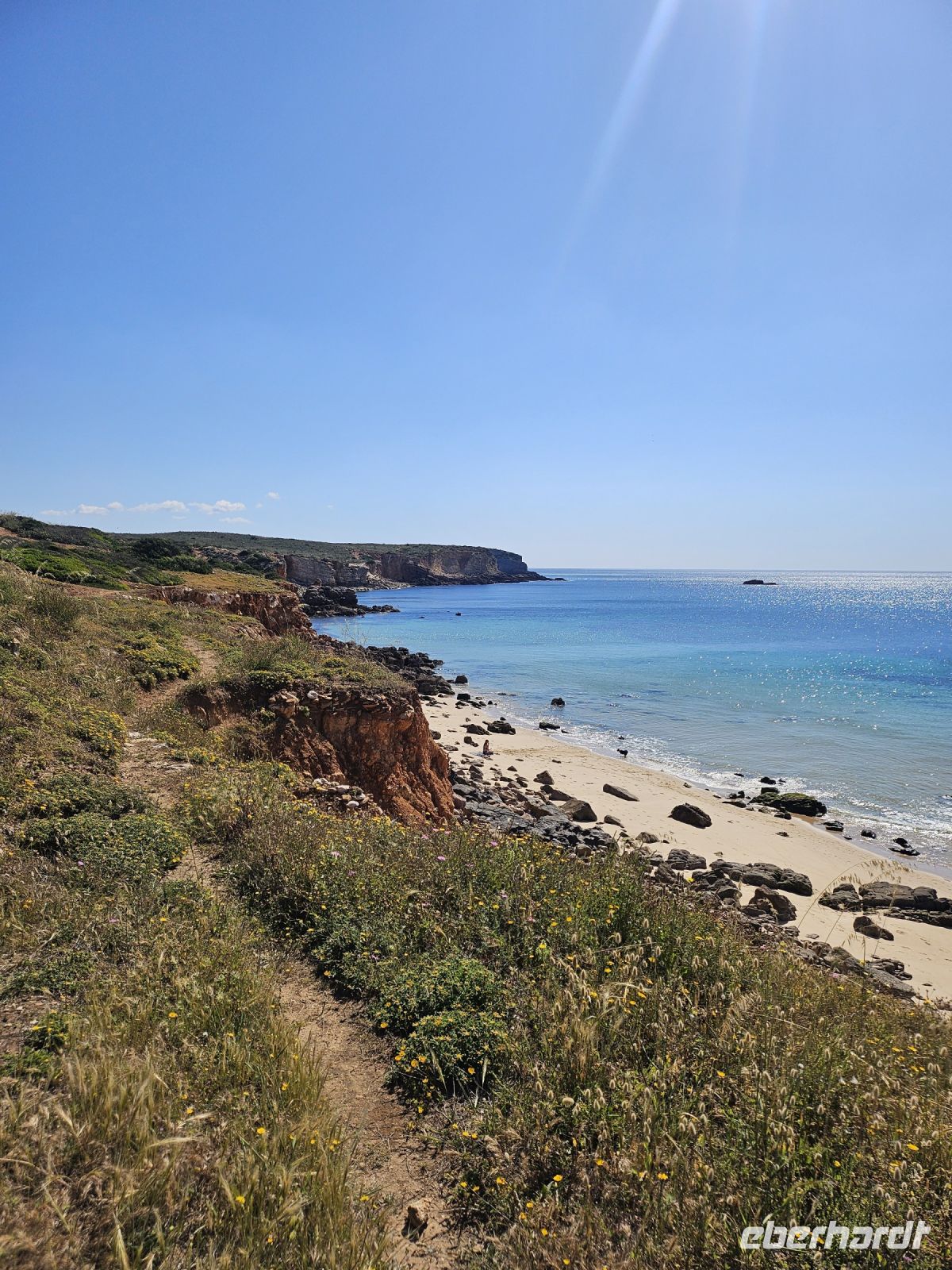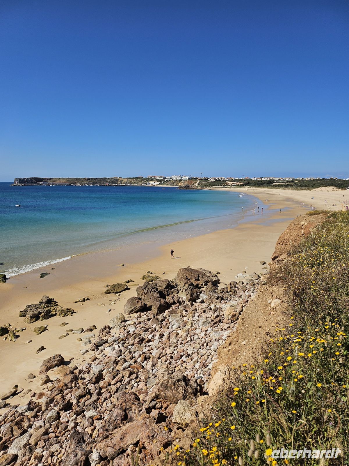 Heute starteten wir unsere erste richtige Wanderung – und sie hatte es in sich: wunderschön, abwechslungsreich und voller kleiner Entdeckungen. Ausgangspunkt war der traumhafte Strand von Martinhal bei Sagres, wo der weiche Sand unter unseren Schuhen knirschte und die salzige Brise uns wachkitzelte.