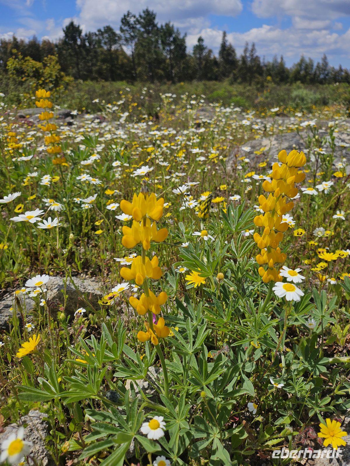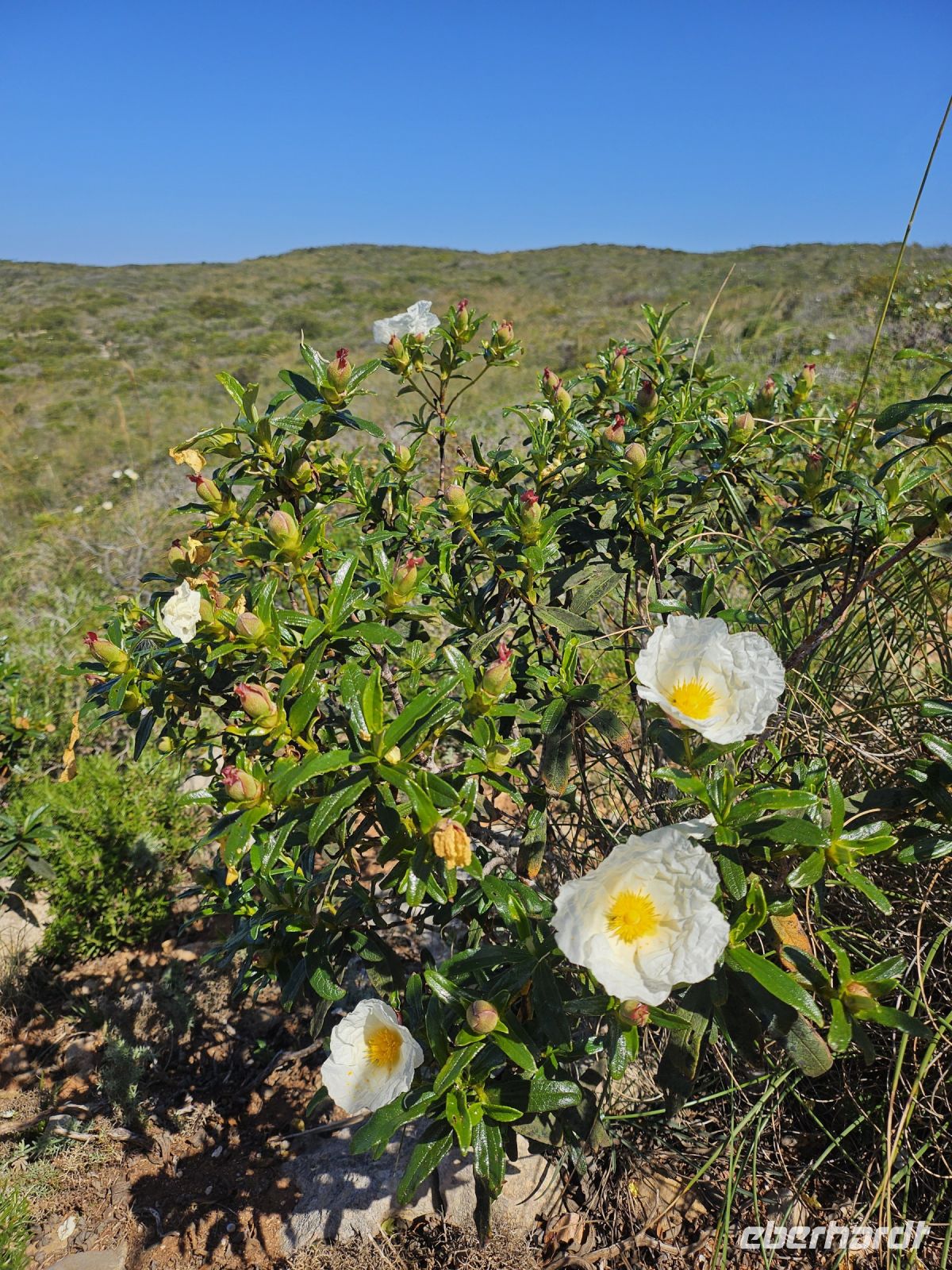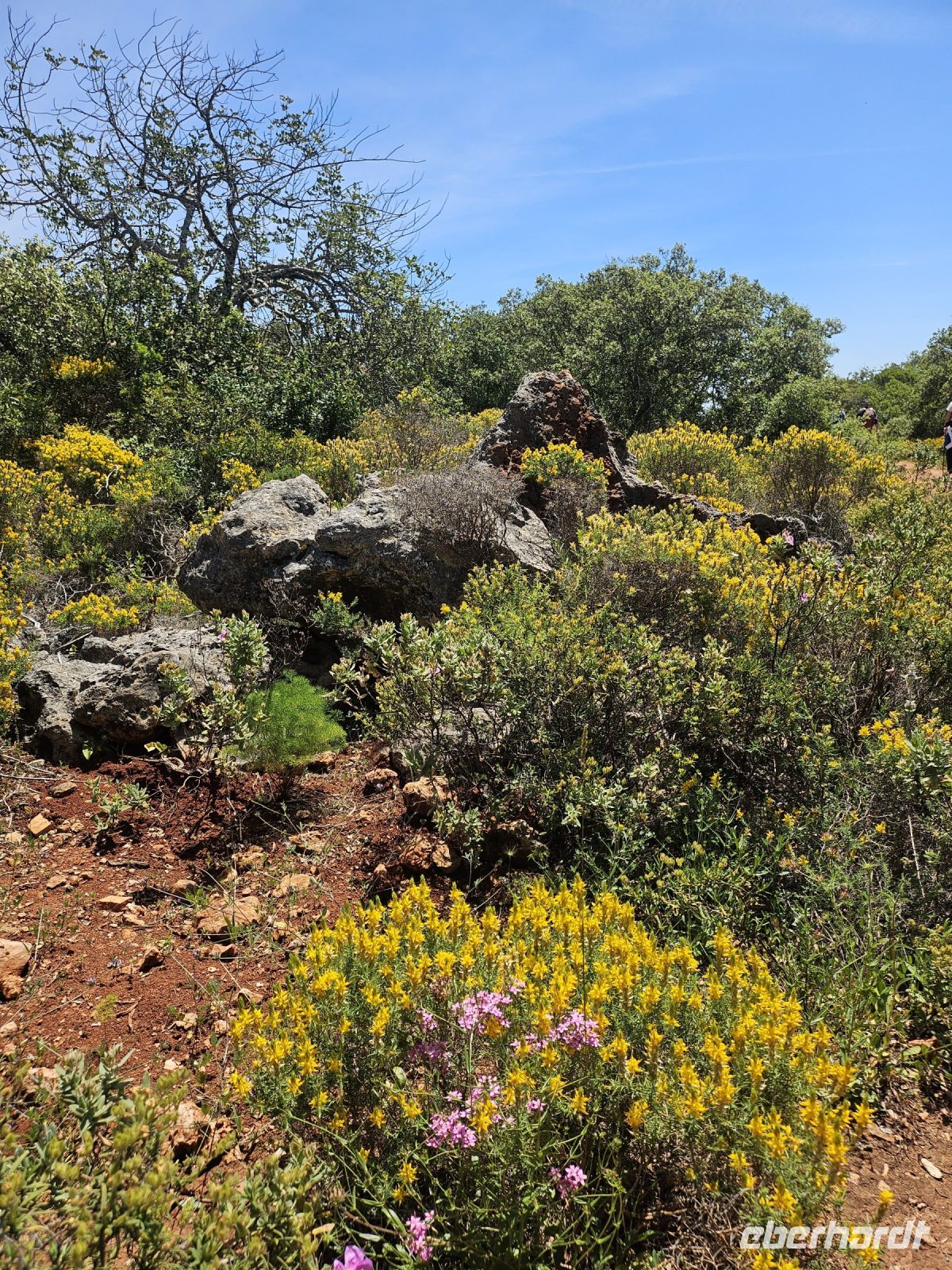 Dann ging es weiter zur Rocha da Pena, einer beeindruckenden Felsformation, die wie ein natürlicher Tafelberg aus der Landschaft aufragt. Das gleichnamige Naturschutzgebiet erstreckt sich über mehr als 600 Hektar und war heute unsere Bühne. Entlang teilweise steiler, aber gut begehbarer Wege wanderten wir durch eine herrliche, wilde Natur: knorrige Sträucher, karge Hänge – und überall Zeichen von Leben. Die "Gangsterkatze" haben wir zwar leider nicht entdeckt, dafür aber die Zistrosenschmarotzer (/-würger)!