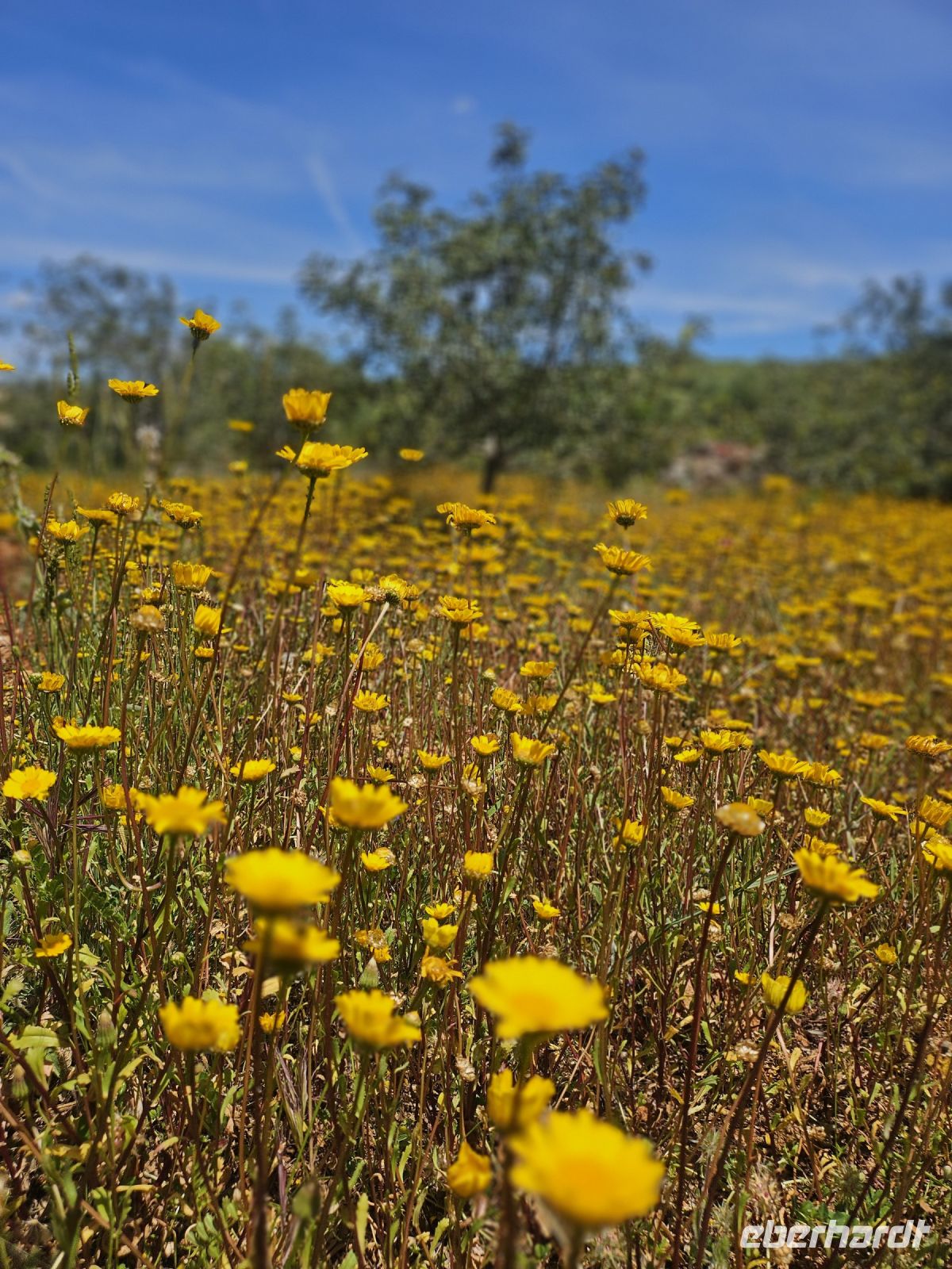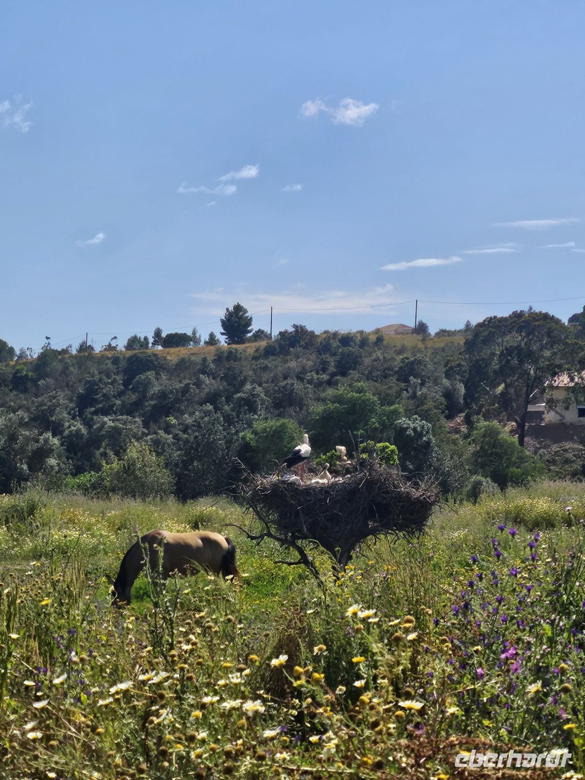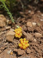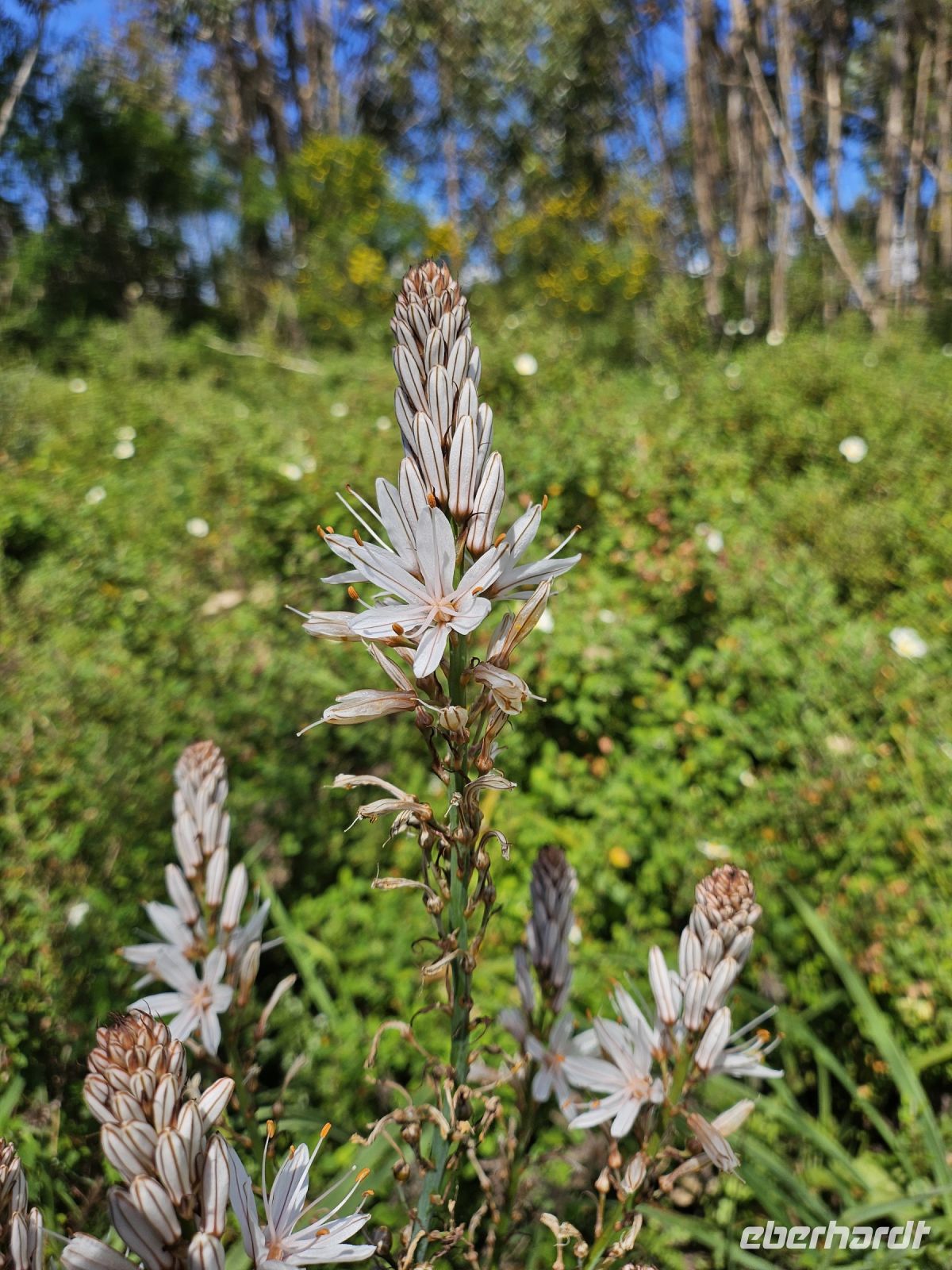 Dann ging es weiter zur Rocha da Pena, einer beeindruckenden Felsformation, die wie ein natürlicher Tafelberg aus der Landschaft aufragt. Das gleichnamige Naturschutzgebiet erstreckt sich über mehr als 600 Hektar und war heute unsere Bühne. Entlang teilweise steiler, aber gut begehbarer Wege wanderten wir durch eine herrliche, wilde Natur: knorrige Sträucher, karge Hänge – und überall Zeichen von Leben. Die "Gangsterkatze" haben wir zwar leider nicht entdeckt, dafür aber die Zistrosenschmarotzer (/-würger)!