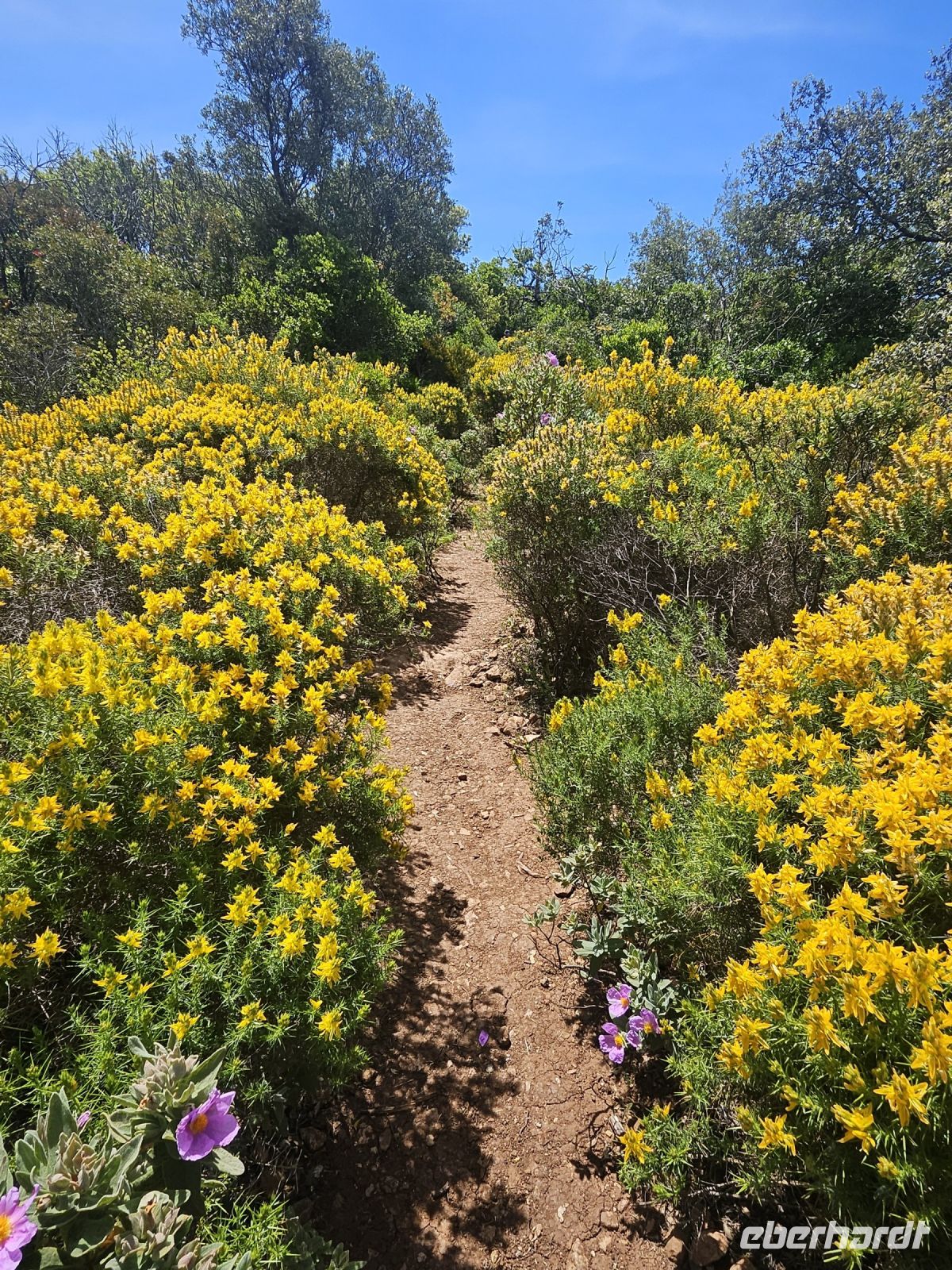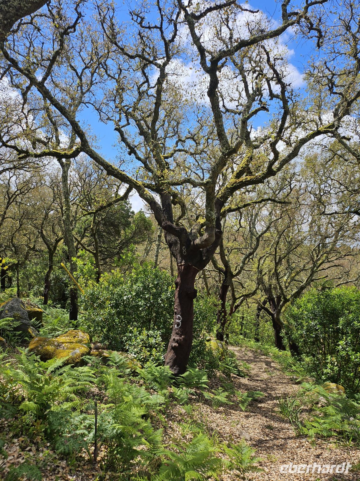 Ringsum begleitete uns die vielfältige Vegetation des Gebirges: Korkeichen mit ihren aufgeschlitzten Stämmen, duftender Eukalyptus, wildes Heidekraut, Rosmarin und Lavendel – die Nase kam kaum hinterher mit all den Aromen. Immer wieder öffneten sich traumhafte Ausblicke über das hügelige Hinterland bis hin zur Küste.
