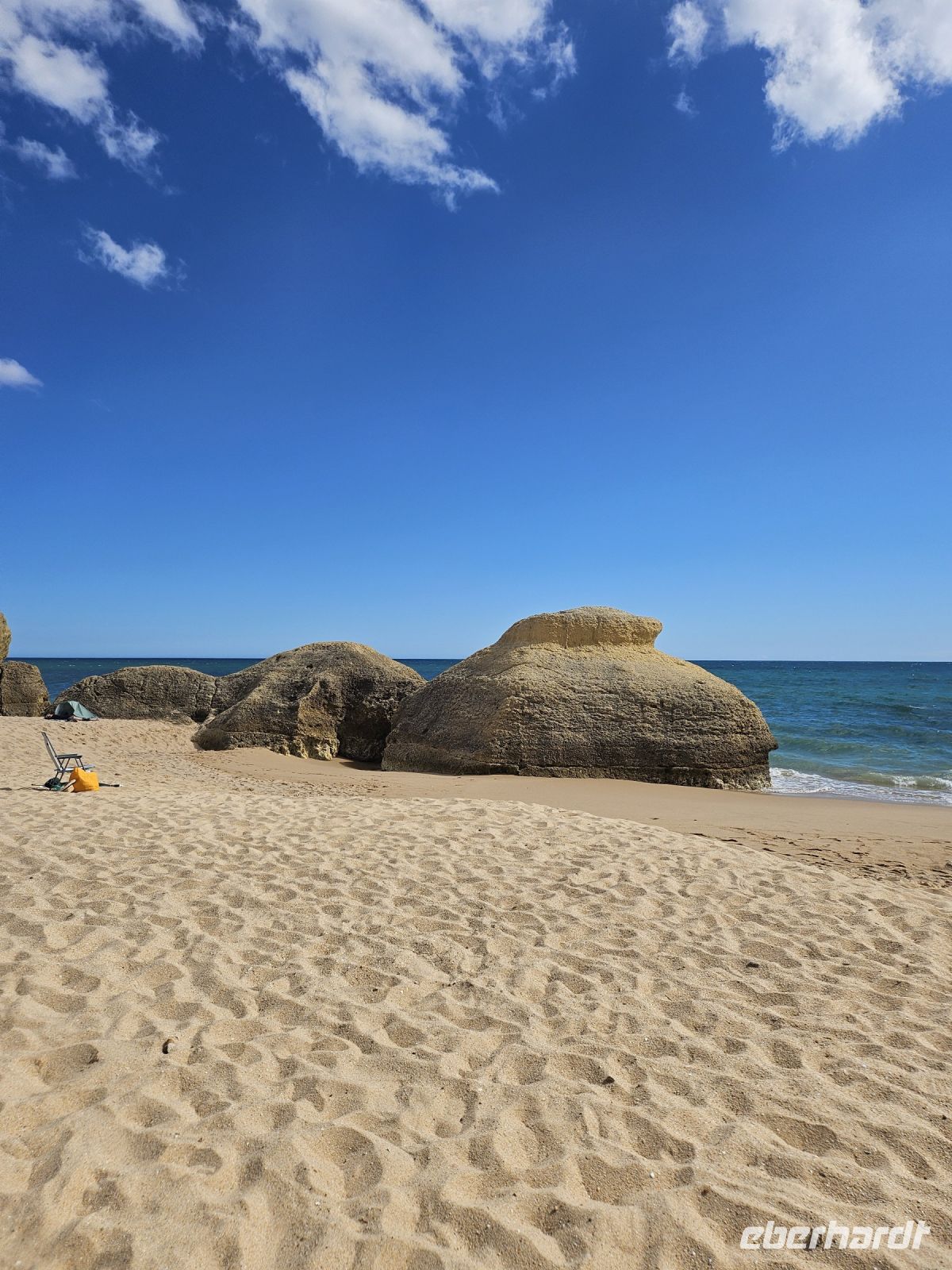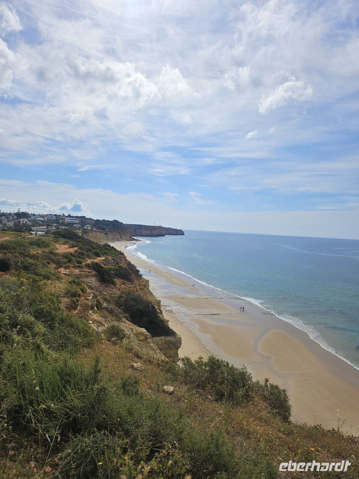 Heute wanderten wir wieder direkt am Meer – und das bei besten Bedingungen: die Sonne im Rücken, der Atlantik zu unserer Linken, eine frische Brise im Gesicht und der Blick weit über die Küste. Wir starteten am Strand von Porto de Mós, einem feinsandigen, goldgelben Strand bei Lagos. Von dort führte uns der Weg entlang der typischen Algarve-Felsküste – teils sanft geschwungen, teils wild zerklüftet – mit atemberaubenden Ausblicken auf Buchten, Wellen und das endlose Blau.