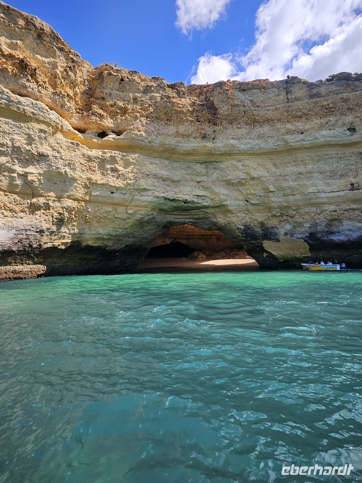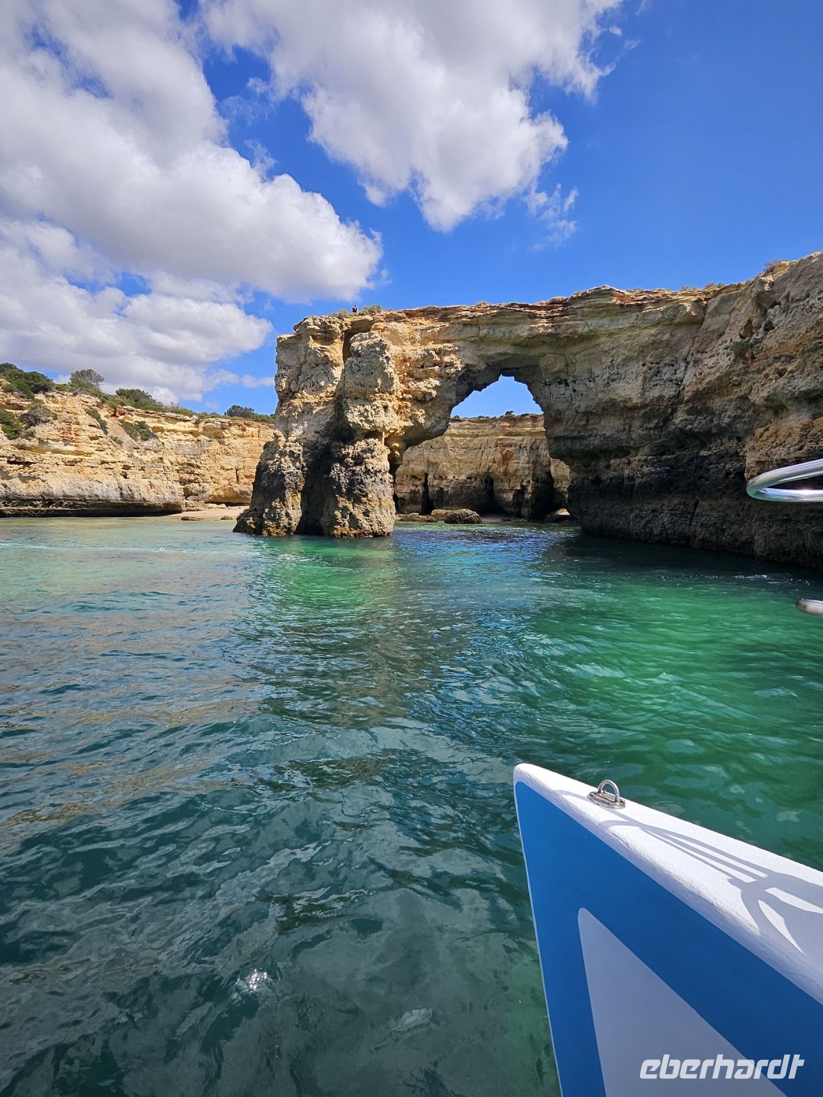 Heute war Freizeit angesagt, aber naja, auch nicht so richtig, denn Reisebegleiterin Mariele hatte verschiedene Tourenvorschläge und so hatte sich die Gruppe für eine Katamaranfahrt entlang der Grotten und Felsküste bei Lagos entschieden. Schon am Montag und Dienstag war klar: Wir gönnen uns diesen Ausflug mit dem Schiff Mara, einem Katamaran, der ruhig im Wasser liegt und damit auch für empfindliche Seemägen bestens geeignet ist.