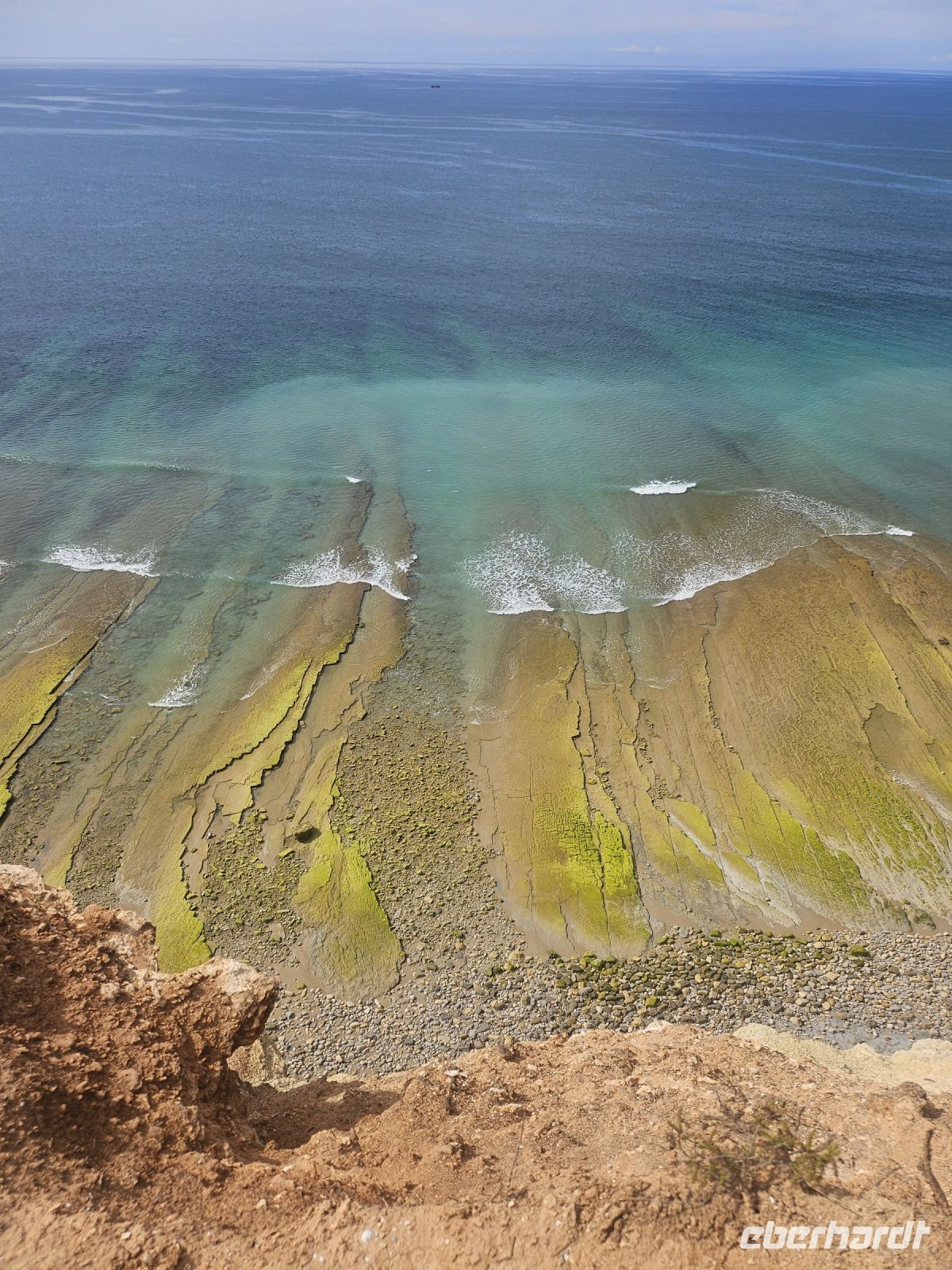 Von dort führte unser Weg stetig bergauf – raus aus der Bucht, hinein in die wildere Landschaft der Hochebene. Der Kontrast war eindrucksvoll: erst das ruhige, weite Blau des Atlantiks, dann die schroffe Schönheit der Hochebene mit ihren steinigen Pfaden, aromatisch duftenden Kräutern und einer überraschend vielfältigen Flora. Immer wieder hielten wir inne – nicht aus Erschöpfung, sondern weil die Ausblicke auf die Steilküste einfach atemberaubend waren.