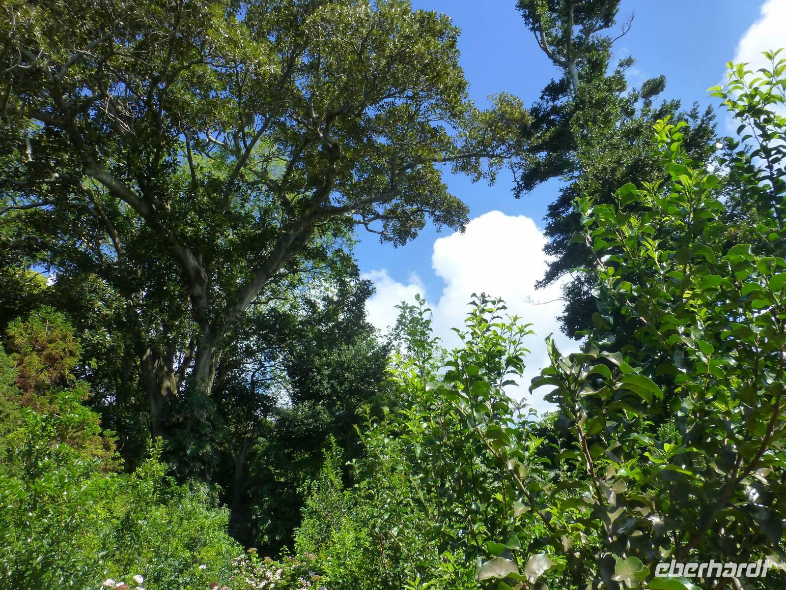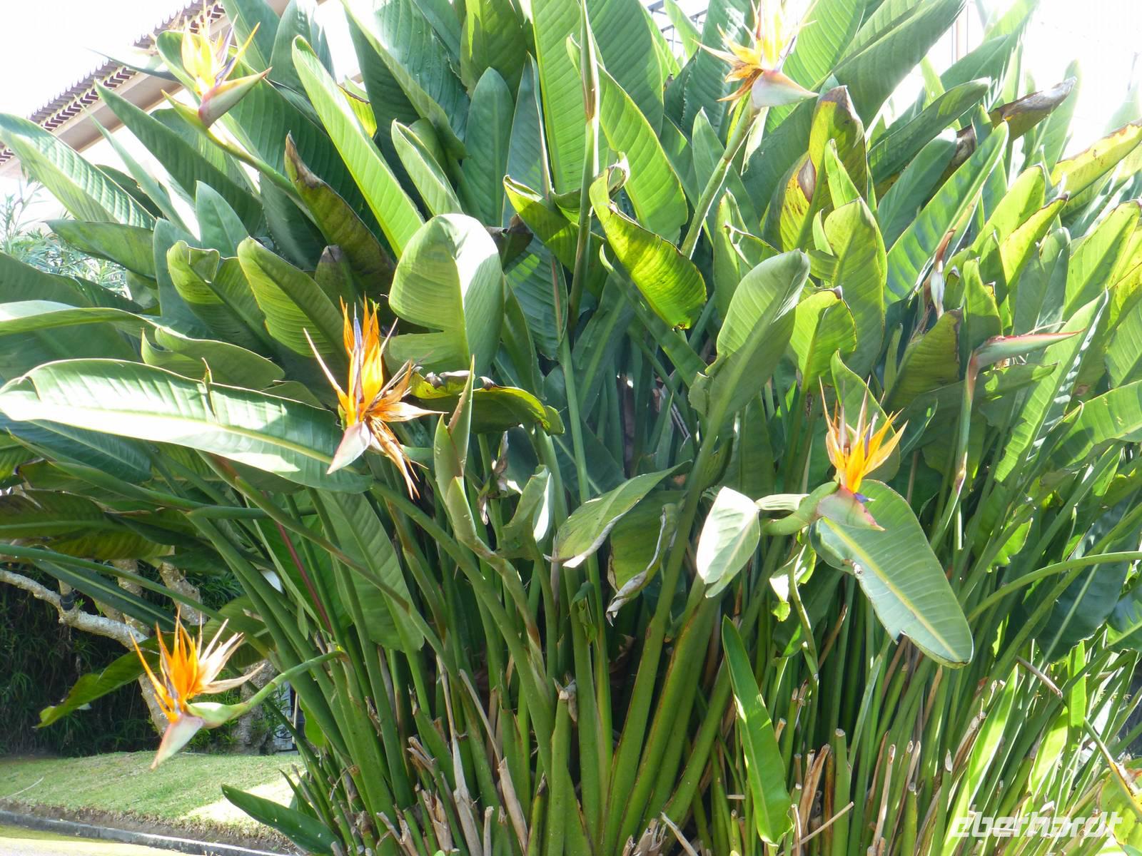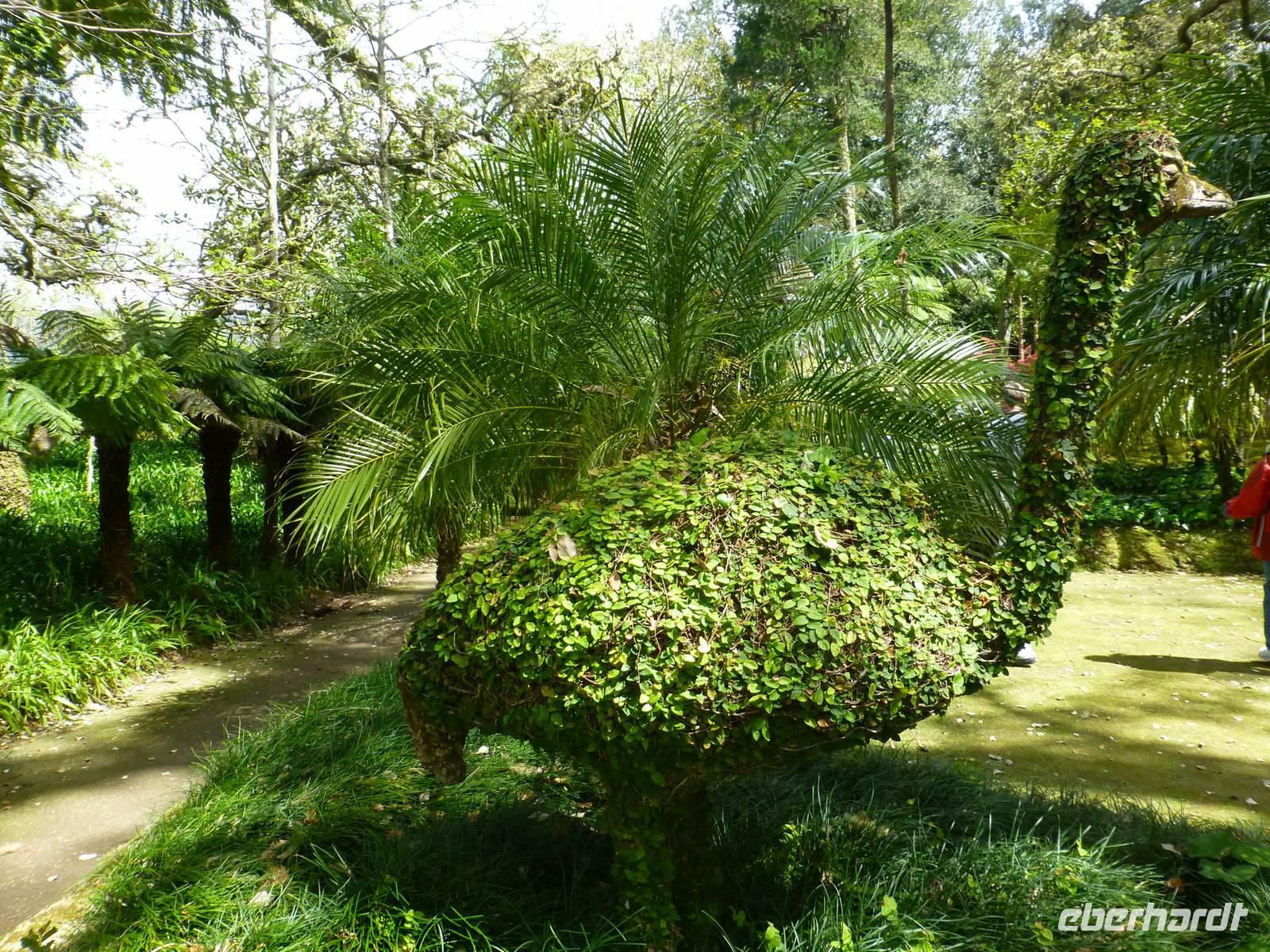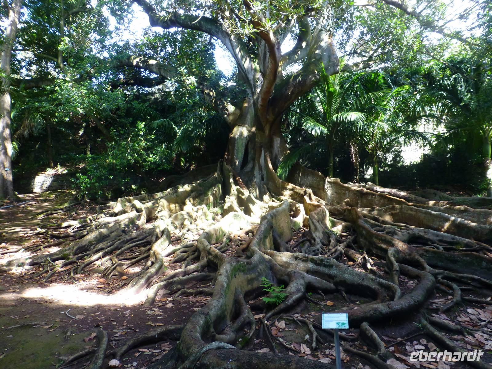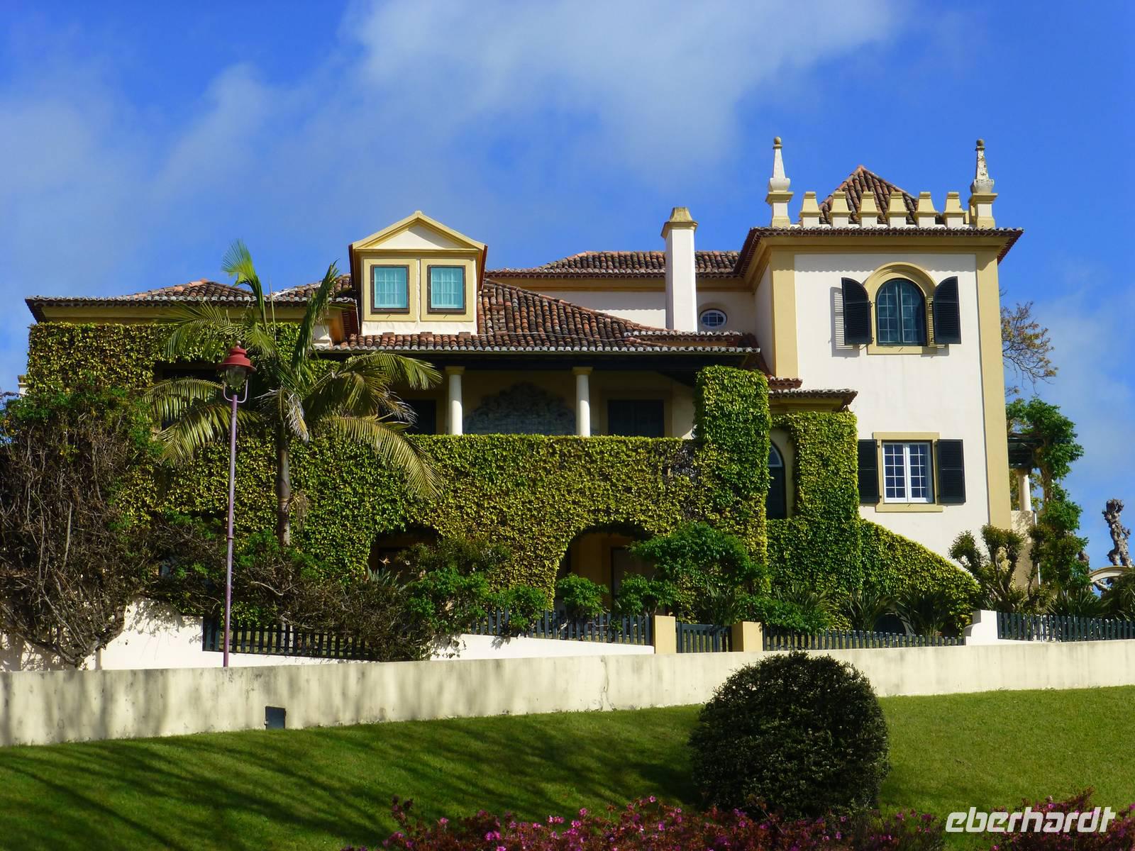 Der Topf wird gefüllt und dann heißt es Deckel schließen und abwarten. Man muss nur seinen Topf in einen der vorbereiteten Erdlöcher hinablassen. Nach sechs Stunden hat der stetige Dampf mit seinen Mineralstoffen dem ganzen eine besondere Geschmacksnote bereitet. Wir schauen zu als die Töpfe heraus gehoben wurden. Jetzt haben wir doch schon Hunger und fahren in Tony´s Restaurant. Wir ließen uns die einheimische Spezialität den „Cozido das Furnas" schmecken. Es ist eine Art „Eintopf" mit verschiedenem Fleisch, Chorizo-Salami, der Blutwurst Morçela und einer Reihe von Gemüse. Ein Glas Wein oder Bier rundete das "kleine" Mittagessen ab. Anschließend fuhren wir in den in den Terra Nostra-Park, einer der schönsten der Azoren. Hier kann man die unterschiedlichsten Pflanzen entdecken. Der Park ist mit seiner bunten Mischung aus Pflanzen und Bäumen einzigartig. In dem 12ha große Park befinden sich rund 2.500 Bäume. Entlang der Wege stehen Kamelien, Magnolien, Azaleen, Strelizien, Hibiskus, Araukarien und noch vieles mehr. Wir unternahmen einen Spaziergang durch den Terra Nostra Park. Hier befindet sich ein 38 Grad heißes Thermal-Wasserbecken. Viele von uns nutzten die Chance und nahmen ein Bad. Es sah zwar nicht gerade einladend aus, denn das Wasser ist sehr braun. Nach unserem "kühlen" Bad fuhren wir nach Vila Franca do Campo. Wir hielten an der Kirche St. Michael, die, wie auch alle anderen Kirchen auf den Inseln, in schlichtem weiß und schwarz gehalten war. Wir besuchten die Kirche du uns fiel gleich auf das die Fenster mit Gardine versehen waren. Die Kirche war für die Einwohner schon immer ein wichtiger Anlaufpunkt und Sie sollten sich in der Kirche wie daheim fühlen. Am frühen Abend erreichten wir unser Hotel in Ponta Delgada.