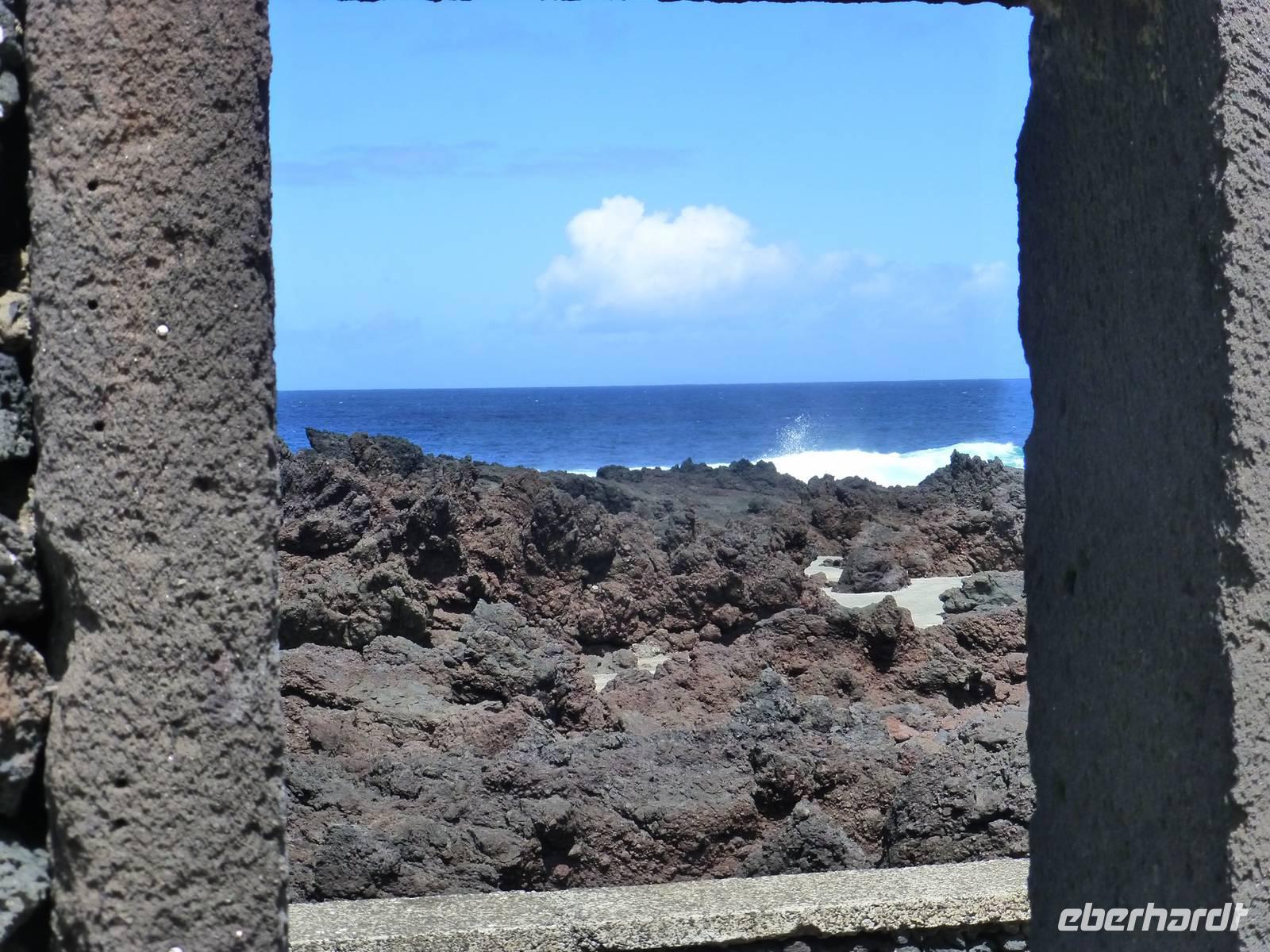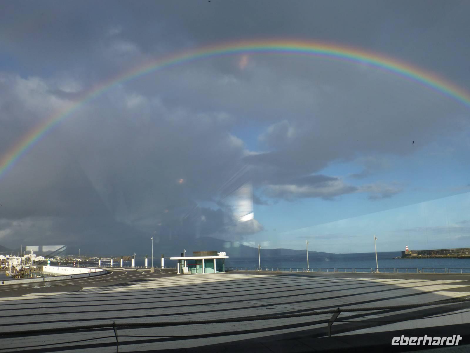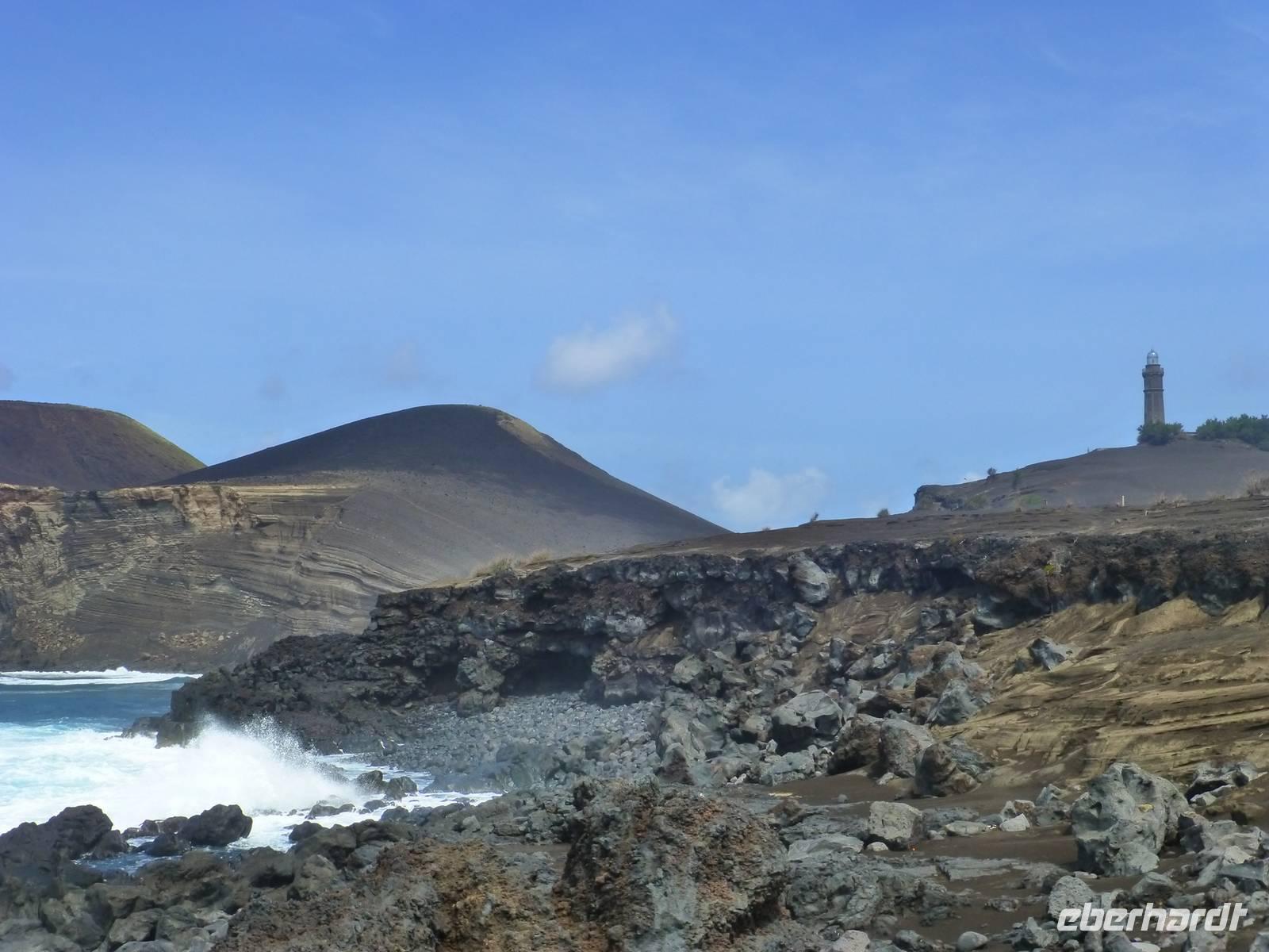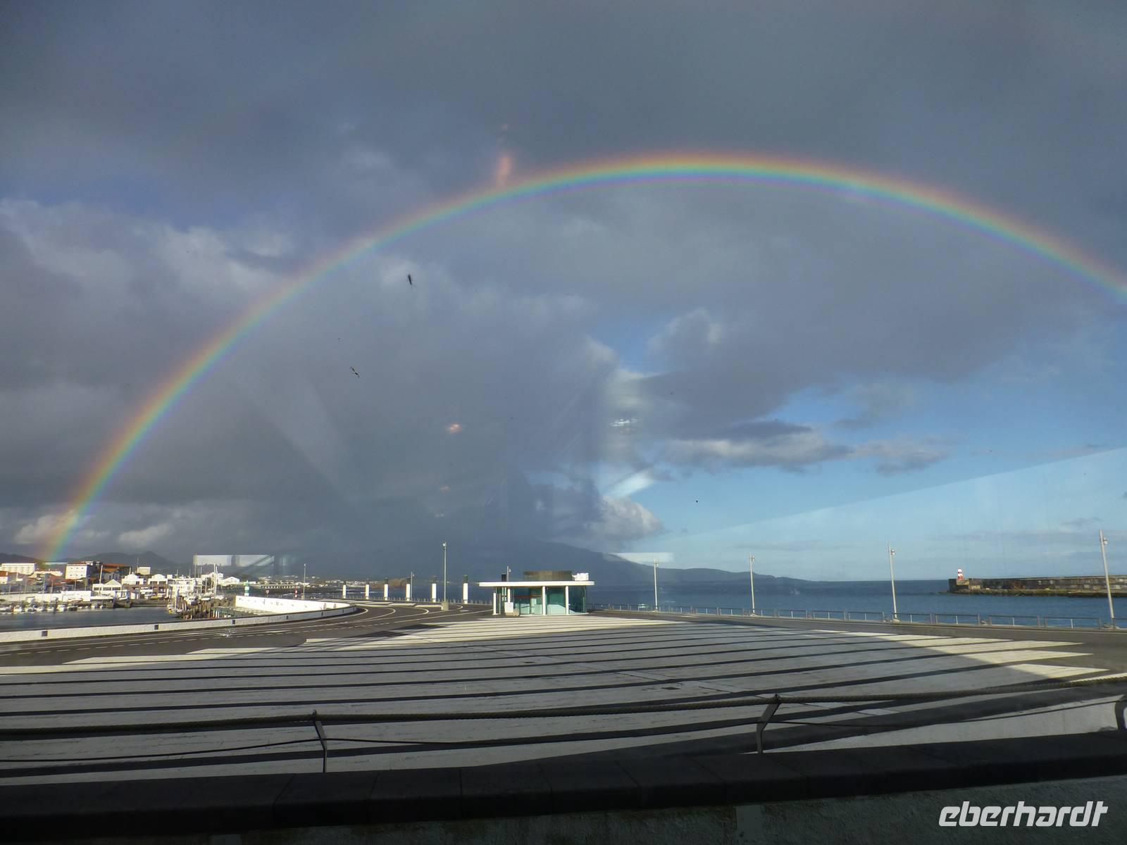 Nach dem Frühstück fuhren wir zum Flughafen,.denn wir wollten heute auf die nächste Insel fliegen. Nachdem wir wieder traumhaft schöne Ausblicke aus dem Flugzeug auf den Pico genossen hatten, unternahmen wir eine Inselrundfahrt. Als erstes stoppten wir an einem Aussichtspunkt und hatten von dort aus einen wunderschönen Blick über die Insel, Horta und natürlich auf dir Nachbarinsel Pico mit dem gleichnamigen Berg. Auch heute schien wieder die Sonne. Wir erreichten Caldeira und hatten einen schönen Blick in den Krater. So, nun hatten wir aber Hunger. So machten wir in einem kleinen Restaurant einen Stopp und ließen uns dort nieder. Gut gestärkt, ging es dann weiter nach Capelinhos in das Informationszentrum. Hier ca. 100 Meter vor der Küste brach im Jahr 1957 ein Vulkan auf offener See aus. Es wurden ungefähr 300 Häuser vernichtet und viele Menschen mussten umgesiedelt werden. Noch immer sieht man die alten Mauern der zerstören Häuser. Außerdem steht hier auch ein alter Leuchtturm, der wie ein Mahnmal an die damalige Katastrophe erinnert. Ursprünglich stand dieser natürlich direkt am Wasser, heute befindet er sich aber mitten auf dem Land, umhüllt von Vulkanasche. Nach dem Ausbruch gewann die Insel neues Land hinzu. Wir sahen den Teil, der heute unter der Vulkanasche begraben ist und viele Ausstellungsstücke, die an den Ausbruch erinnern. Nachdem wir nun die Insel erkundet hatten, fuhren wir zurück nach Horta zu unserem Hotel do Canal. Es liegt direkt am Hafen. Zum Abendessen hatten wir einen Tisch in Peters Café Sport bestellt. Der Besuch in diesem legendären Restaurant ist ein muß. Natürlich probierten wir auch den berühmten Gin Tonic. Das Essen schmeckte und wir erhielten einen ersten Eindruck von der Live Musik die am späten Abend gespielt wurde.