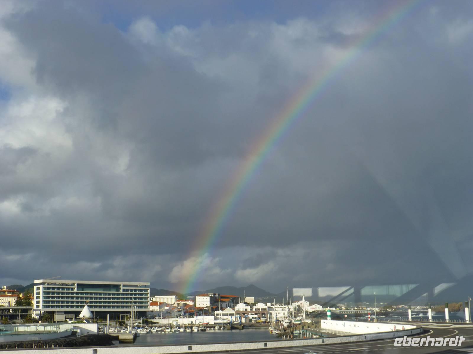 Unser Flugzeug startete erst am Mittag. Deshalb hatten wir noch Zeit gemeinsam mit Jose einen Stadtrundgang zu unternehmen. Dabei erfuhren wir dass hier viele Klöster vorhanden sind, da früher jede geschiedene oder verwitwete Frau ins Kloster musste. Immer wieder interessant ist auch der Besuch einer Markthalle. Jedoch war nicht so viel los, den vor allem am Freitag und Samstag sind alle Stände besetzt. Zum Glück ist der nicht so weit und Petro bracht uns zum Flughafen. Noch ein kleiner Imbiss und die Maschine startete pünktlich 13:25 Uhr nach Terceira. Nach unserer Ankunft wollten wir gleich einen Stadtrundgang unternehmen. Doch plötzlich regnete und hagelte es sehr stark. Aber zum Glück so schnell wie die Schauer gekommen sind waren Sie auch schon wieder vorbei und wir konnten unseren Spaziergang in Angra de Heroismo beginnen. Schöne bunte Häuser säumten die Straßen und wir waren auch überrascht einen typischen Krämerladen zu entdecken. Auch ein Abstecher zum Markt der Stadt, welcher hinter der wundschönen Häusern in einem kleinen Innenhof verborgen lag durfte nicht fehlen. Hier sahen wir neben den Obstständen auch die verschiedensten Sorten Fisch. Ein Besuch im Botanischen Garten, zeigte uns wieder wie schön diese Anlagen gestaltet und gepflegt sind . Weiter ging es dann durch die Gassen zur Kirche von Angra, die mitten im Zentrum liegt. Wir erreichten unser Hotel Terceira Mar. Auch hier hatten wir Zimmer mit Blick auf den Atlantik. Jetzt war es schon wieder Zeit zum Abendessen und wir liefen in Elio's Restaurante. Hier wollten wir einen Rindfleischtopf probieren. Das Fleisch wird schon 24 Stunden vorher eingelegt und gekocht. Einen letzten Trink in der Bar und wir freuen uns schon wieder auf den nächsten Tag.