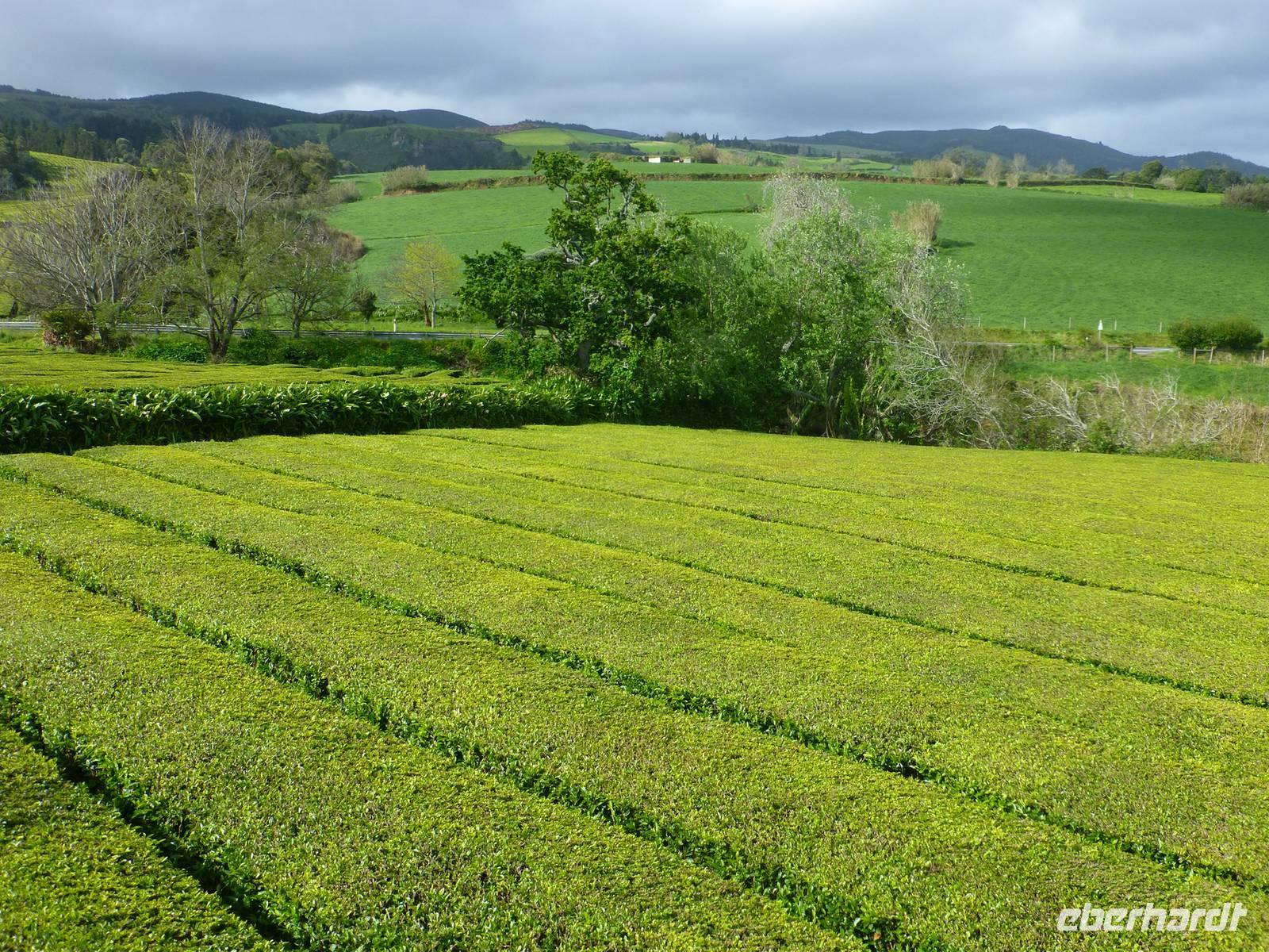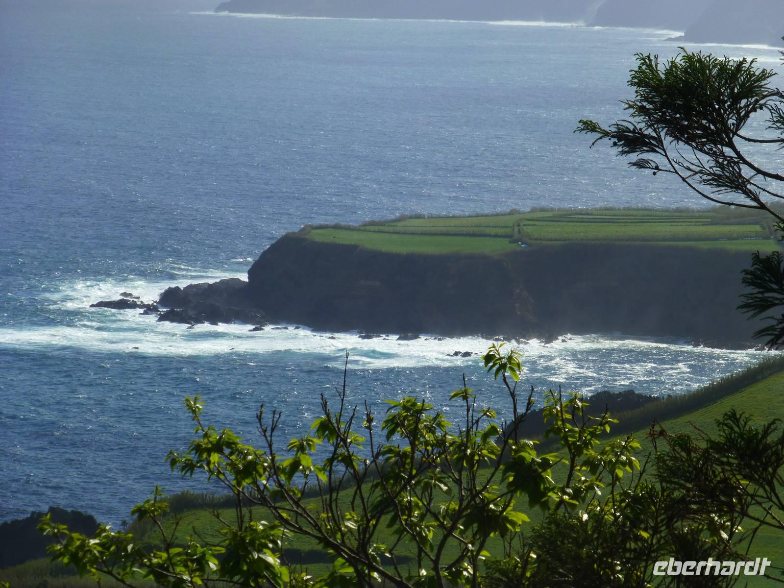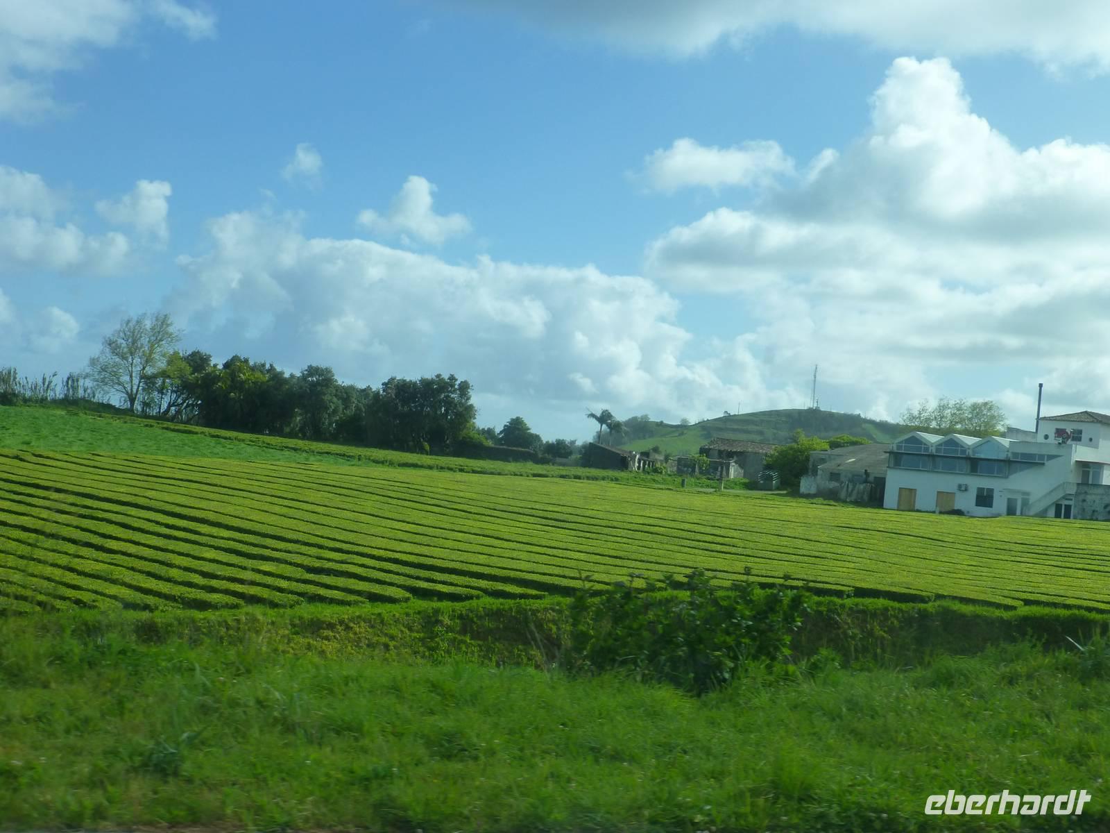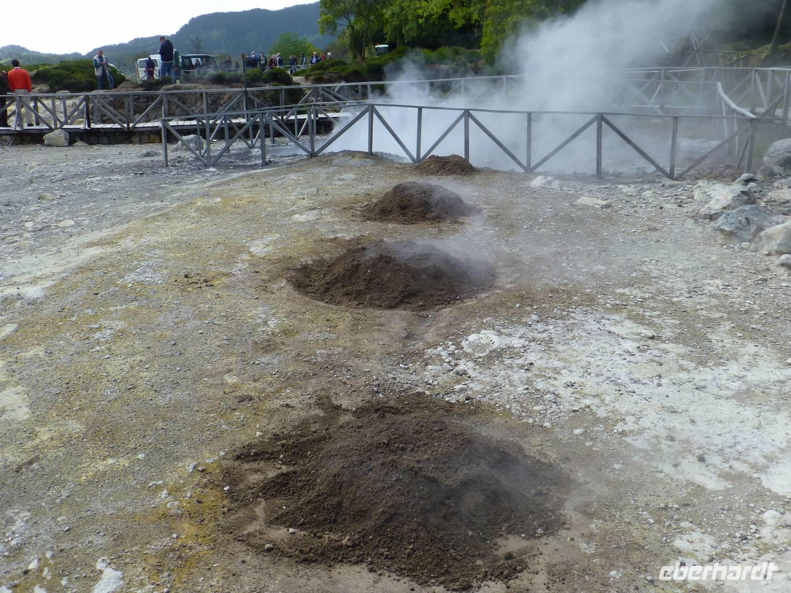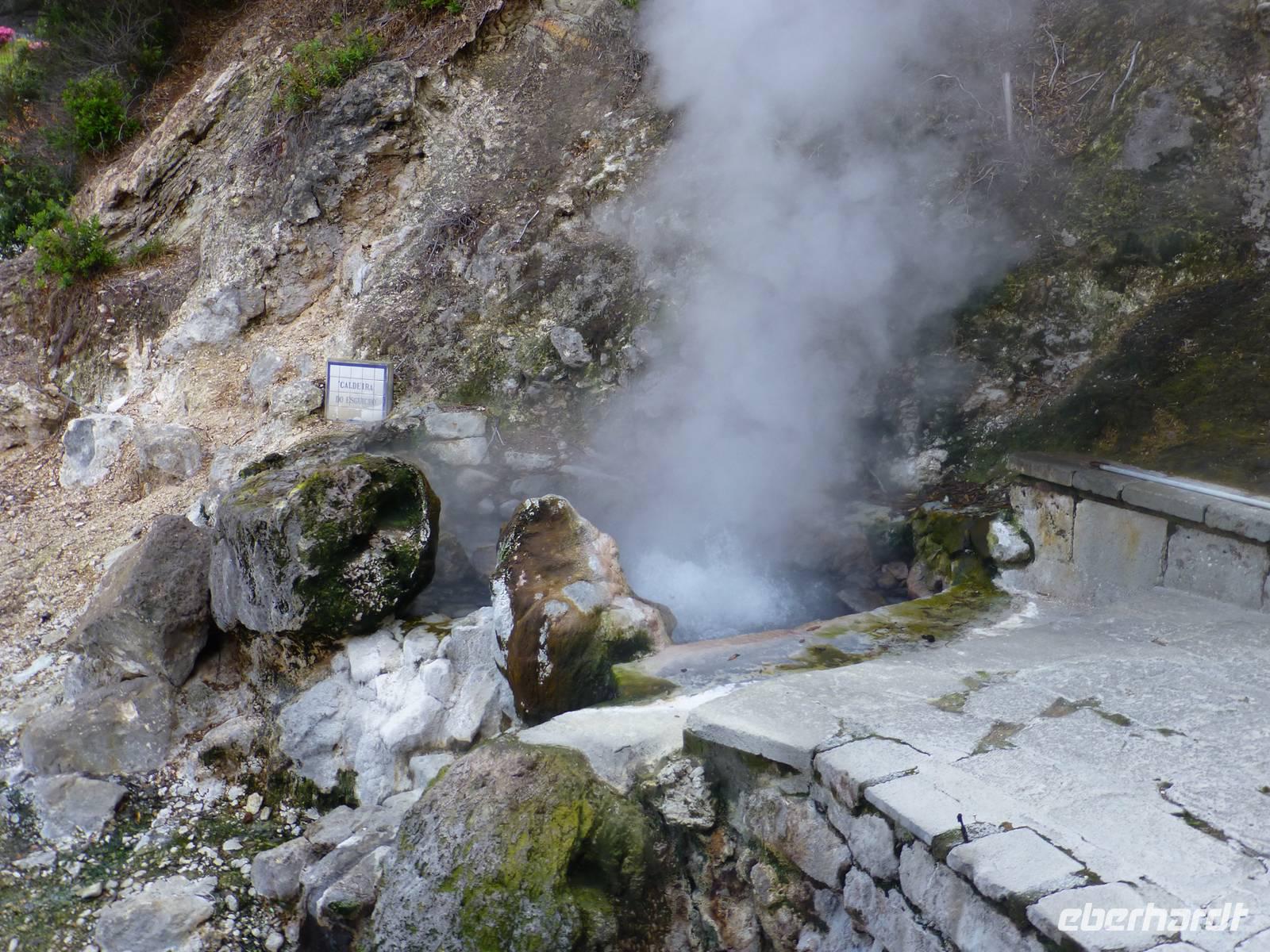 Die größte Insel der Azoren erwartete uns. Unser erster Besichtigung Punkt war die Teeplantage von Gorreana. Wir sahen die Anbauflächen und Jose erzählte uns etwas über den Anbau und die Verarbeitung der Teeblätter. Natürlich probierten wir auch dieses edle Getränk. Bei einem kurzen Stopp am Aussichtspunkt Caloura hatten wir einen schönen Blick über den Atlantik. Wir erreichten den Ort Furnas, der bekannt ist für seine Caldeiras von Furnas, die dampfenden Schwefelquellen. Wir konnten auch von den Quellen probieren. Unser nächstes Ziel war der Lagoa das Furmas. Schon von weiten sahen wir es dampfen. In den heißen Erdlöchern befanden sich große Töpfe in den unser Mittagessen vorbereitet wurde.