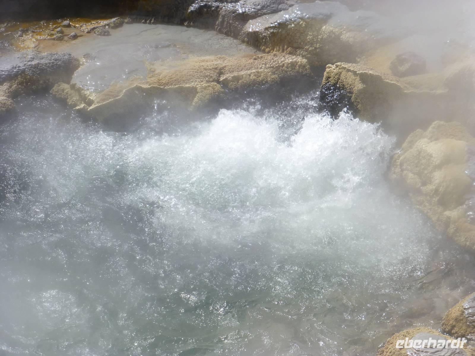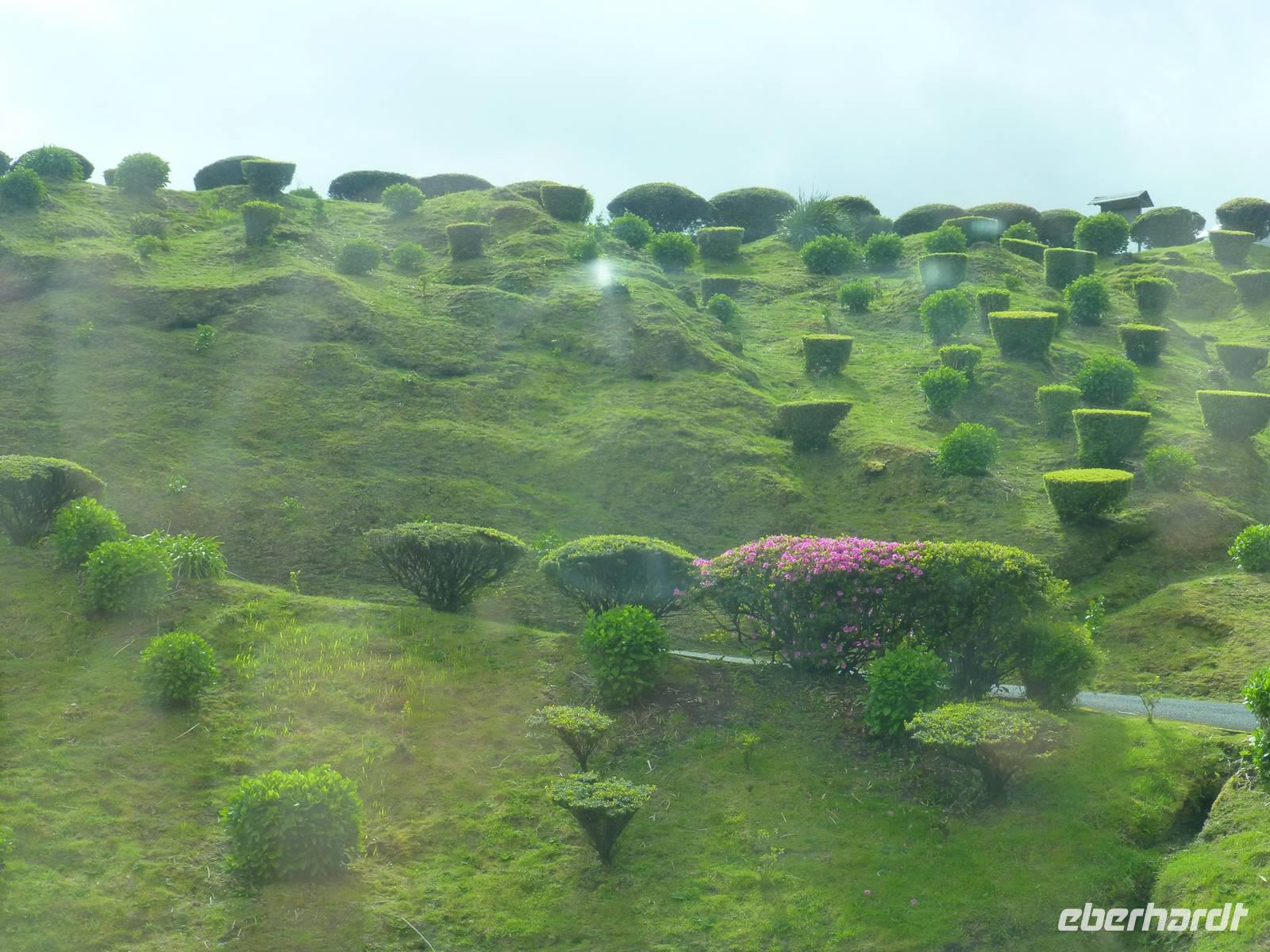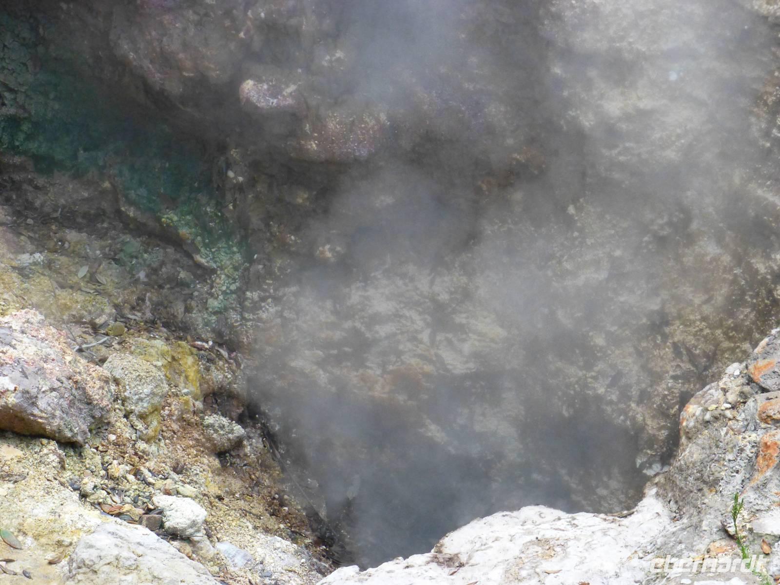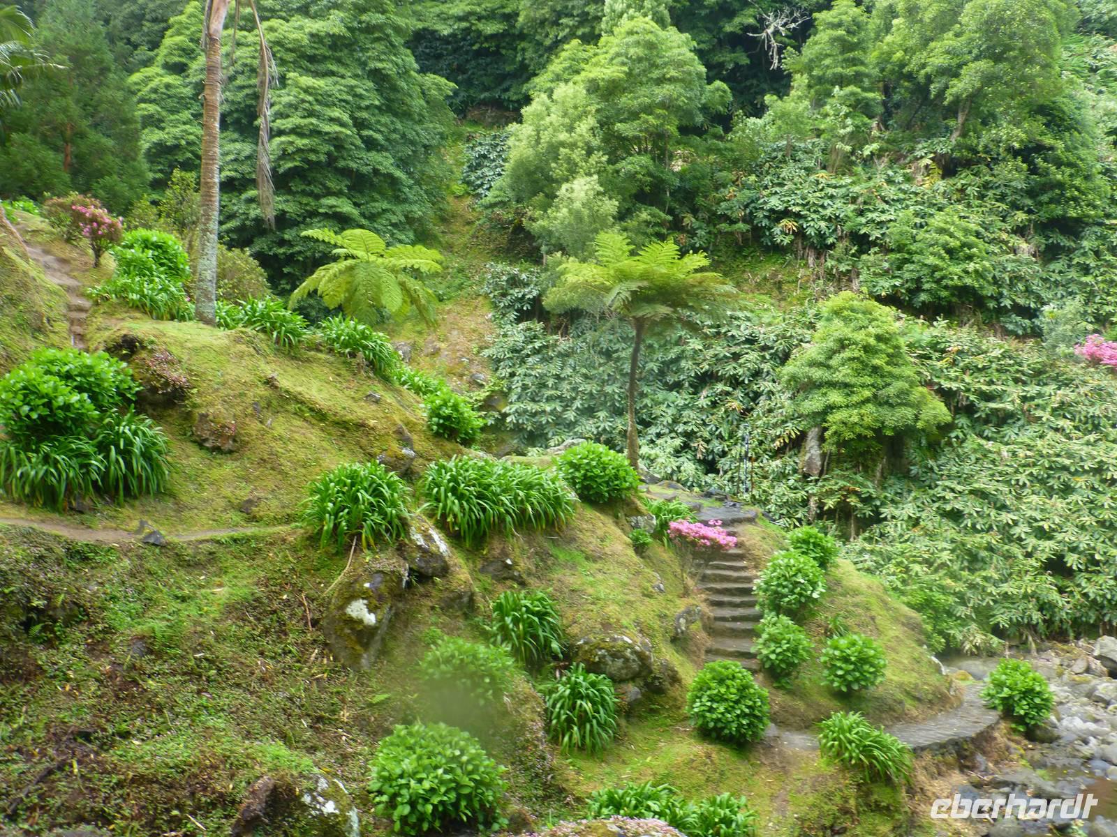 Die größte Insel der Azoren erwartete uns. Unser erster Besichtigung Punkt war die Teeplantage von Gorreana. Wir sahen die Anbauflächen und Jose erzählte uns etwas über den Anbau und die Verarbeitung der Teeblätter. Natürlich probierten wir auch dieses edle Getränk. Bei einem kurzen Stopp am Aussichtspunkt Caloura hatten wir einen schönen Blick über den Atlantik. Wir erreichten den Ort Furnas, der bekannt ist für seine Caldeiras von Furnas, die dampfenden Schwefelquellen. Wir konnten auch von den Quellen probieren. Unser nächstes Ziel war der Lagoa das Furmas. Schon von weiten sahen wir es dampfen. In den heißen Erdlöchern befanden sich große Töpfe in den unser Mittagessen vorbereitet wurde.