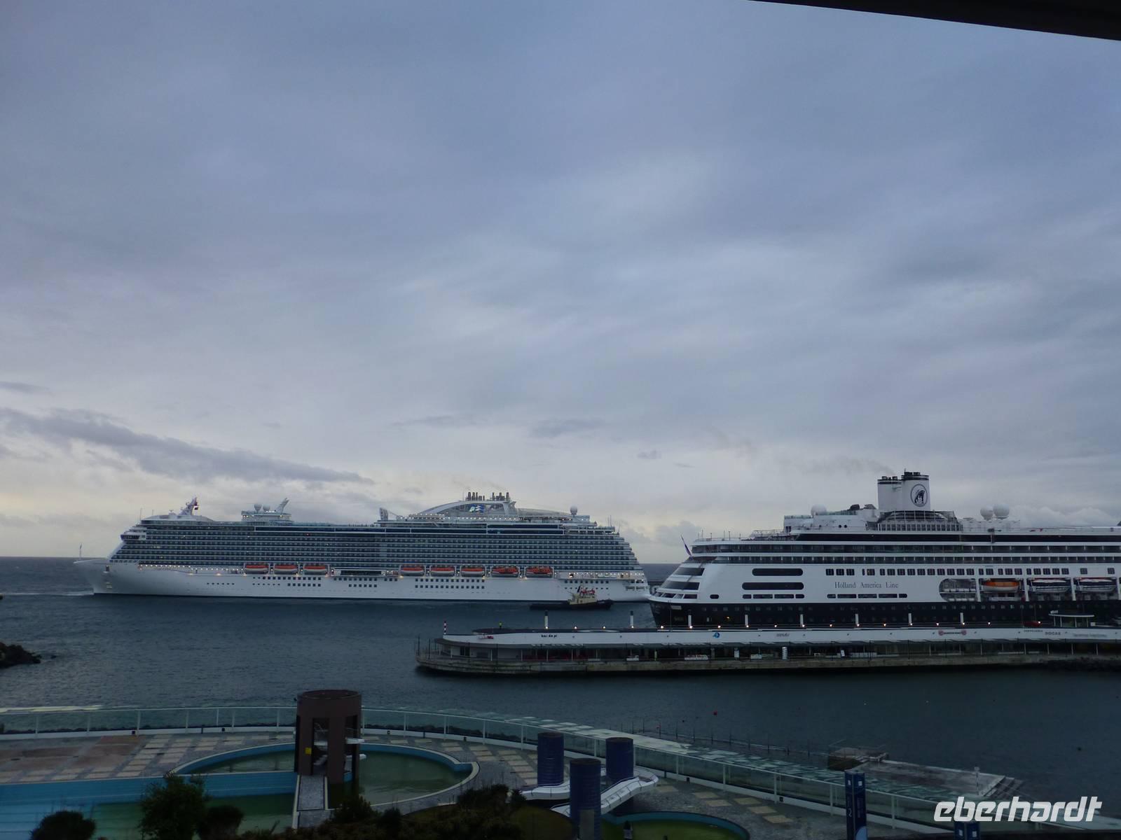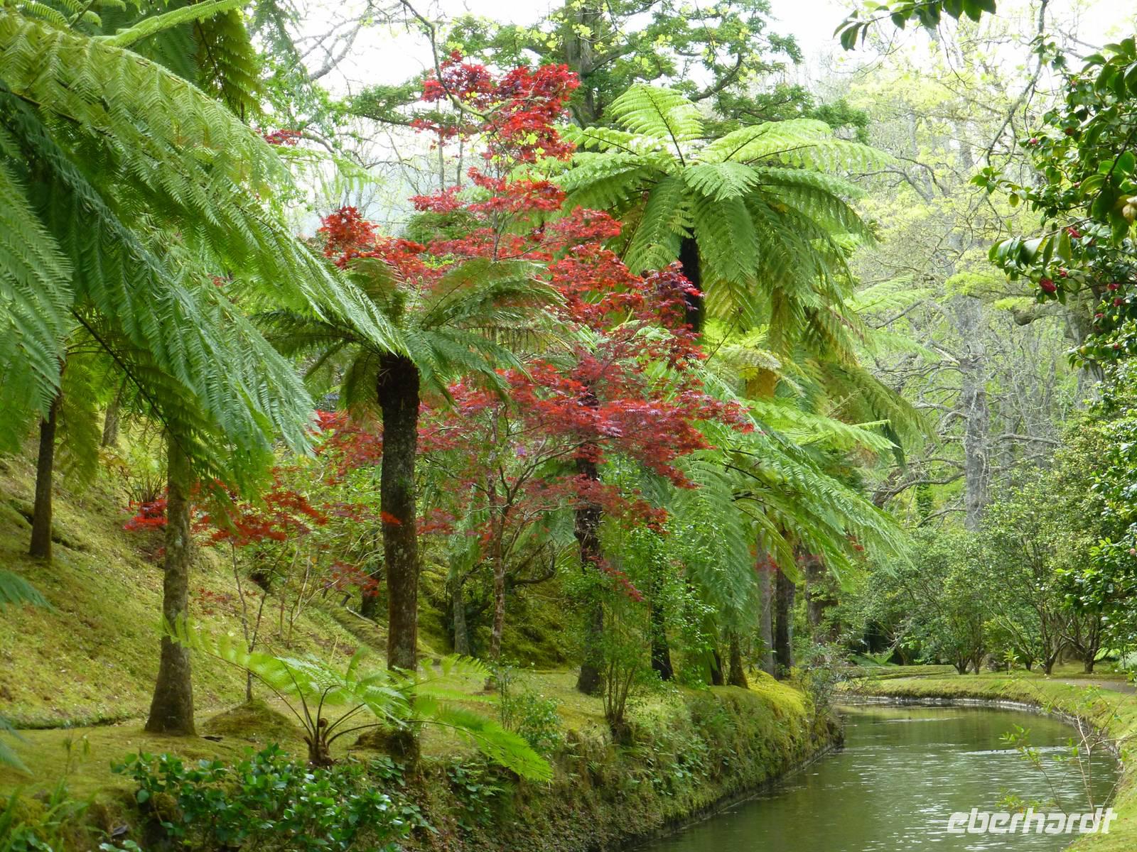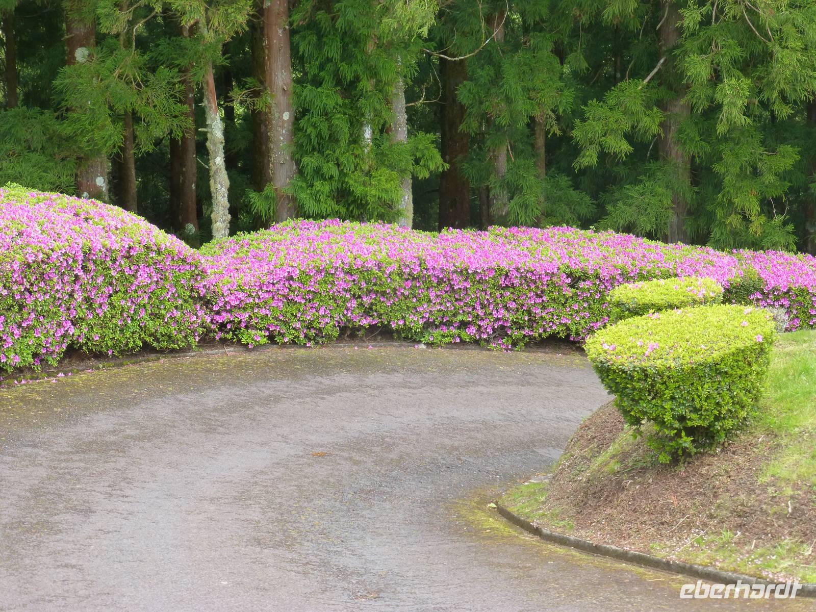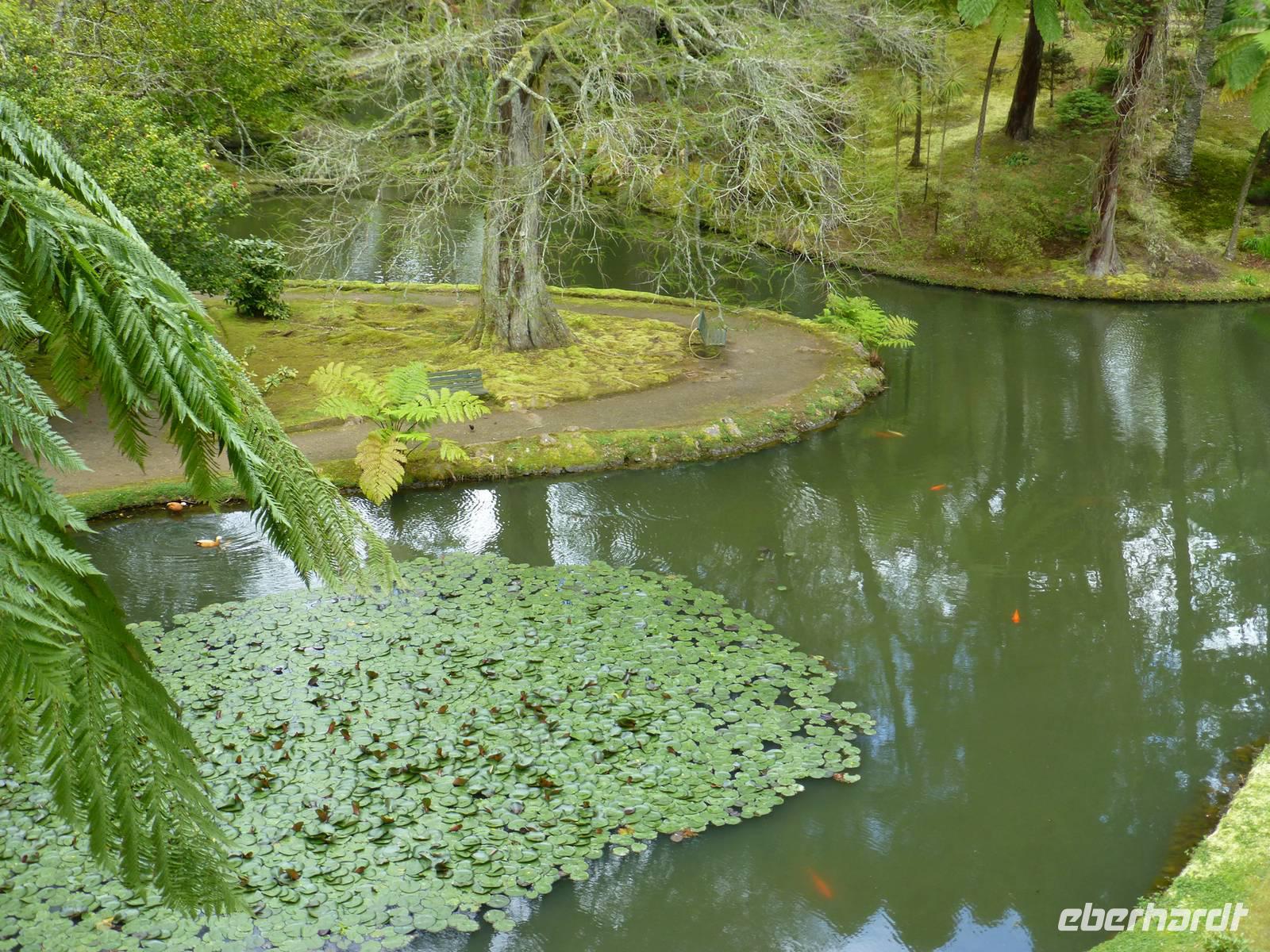 Von unserem Balkon konnten wir am frühen Morgen die riesigen Kreuzfahrtschiffe, die im Hafen anlegen wollten beobachten. Heute fuhren wir in Richtung Sete Cidades. Vorbei an grünen Felden und blühenden Azaleen fuhren wir Richtung Osten. Wir stoppten immer wieder , um ein paar Fotos zu schießen und somit die verschiedenen Grüntöne einzufangen. Unser erstes Ziel war eine Ananas-Plantage, wo man in Gewächshäusern die einzelnen Wachstumstadien der einzelnen Früchte betrachten konnte. Eine Ananas benötigt bis zu 18 Monate um hier zu reifen. Natürlich waren sind diese Früchte nicht ganz preiswert. Ein Schluck Ananas-Schnaps durfte natürlich auch nicht fehlen. Als nächstes besuchten wir ein etnographisches Museum. Versteckt hinter einer kleinen Hausfassade, hinter einen unscheinbaren Tür, verbirgt sich diese einmalige Sammlung von Antiquitäten der Insel. Diese wurden im Laufe der Jahre gesammelt und werden nun liebevoll in diesem Museum präsentiert. Wie ein kleines Dorf ist es angelegt und hinter jeder Ecke verbirgt sich etwas neues Spannendes. Nun ging es aber dann auf direktem Weg zu dem beiden Seen Lagoa Azul und Lagoa Verde. Das spannende an diesen Seen ist, dass beide direkt nebeneinander liegen und dennoch verschiedene Farben haben. Einer ist blau und einer ist grün. Das ist schon ein faszinierendes Naturwunder! Unsere Mittagspause wollten wir dann im kleinen Örtchen Sete Cidades verbringen. Wir kehrten in ein kleines Restaurant ein. Im Anschluss nutzte wir die Zeit, einen kleinen Spaziergang am See zu unternehmen und die Landschaft zu genießen.