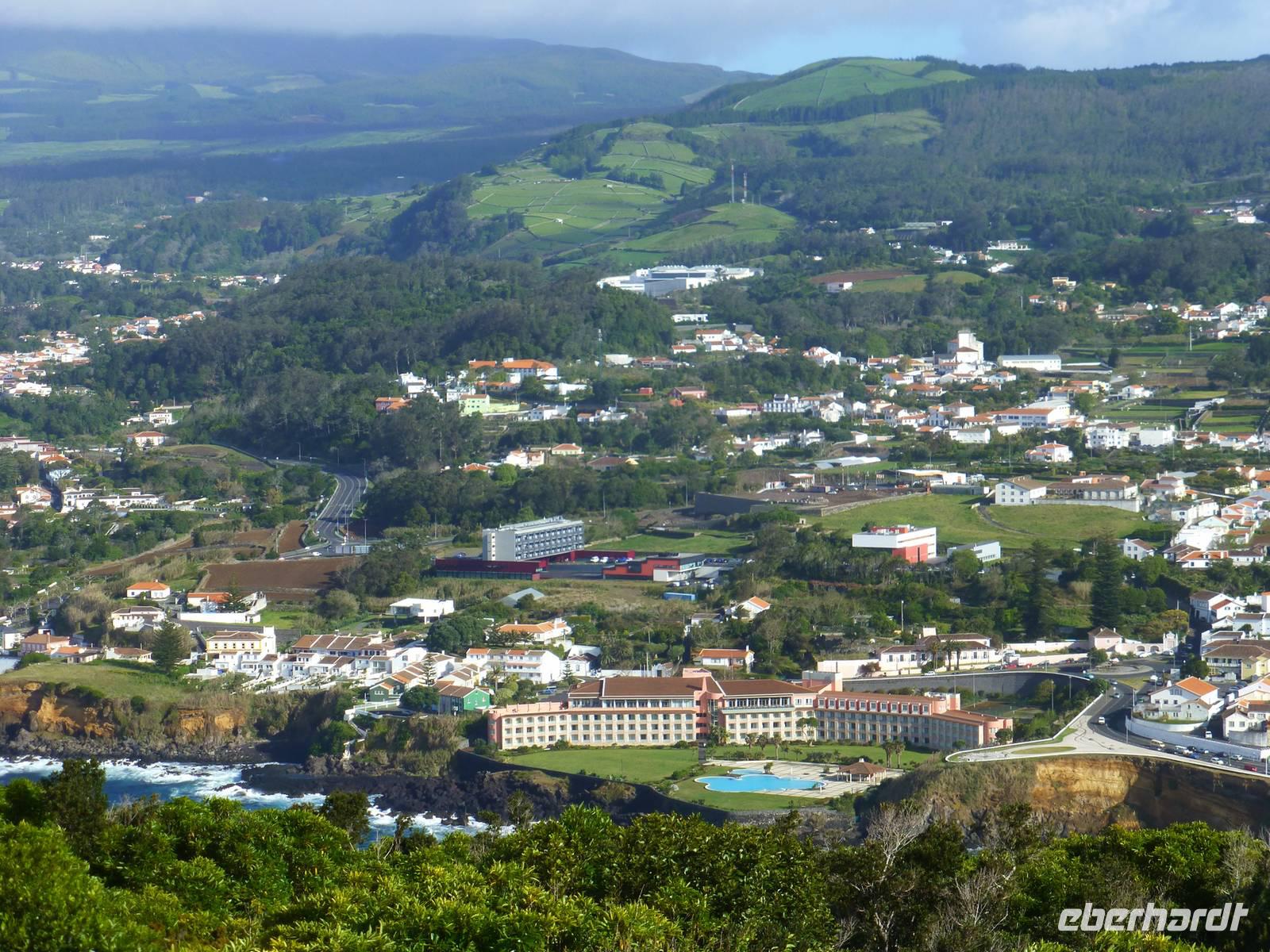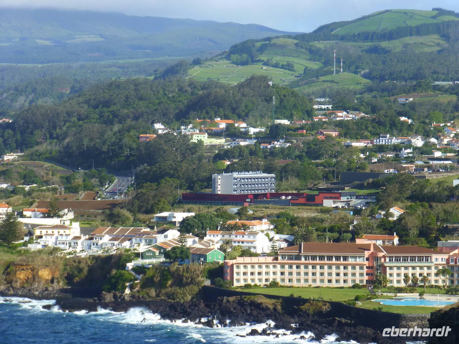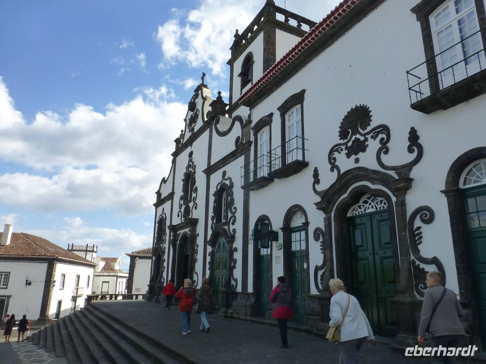 Heute lachte wieder die Sonne und ein neuer Tag begann. Unser erstes Ziel sollte heute die Keramikfabrik sein. Die Azoren sind besonders berühmt für ihre blau-weiße Keramik. Früher gab es viele dieser Fabriken. Jetzt ist es die einzige auf der Insel, da sie nach individuellen Wünschen der Bevölkerung ihre Produkte anfertigen. Wir unternahmen einen Rundgang mit unserer Reiseleiter Jose, die uns alles ganz genau erklärte. Wir konnten den Frauen beim Herstellen der Keramik zuschauen und natürlich auch sehen, wie diese bemalt wurde. Es ist schon sehr beeindruckend, wie schnell doch ein kleines Kunstwerk entstehen kann. Am Ende unseres Rundgangs hatten wir dannnatürlich auch die Möglichkeit noch ein kleines Andenken mitzunehmen. Im Anschluss fuhren wir zum Hafen von Lagoa und schauten zur Anlegestelle der Fischerboote. Wir hatten Glück ein Fischerboote kam gerade zurück. Sie hatten zwar einige Fische an Bord, jedoch war der Fang nicht gerade üppig. Anschließend fuhren entlang einer wunderschönen Panoramastraße und konnten einen Ausblick über die ganze Insel genießen. Am liebsten hätten wir hinter jeder Kurve einen Stopp eingelegt um Fotos zu schießen. Lagoa do Fogo, der Feuersee. Der wunderschöne Kratersee ist der drittgrößte von Sao Miguel. Noch ein Stück weiter, hatten wir einen noch besseren Blick aus einer ganz anderen Perspektive. Wir ließen uns Zeit und genossen dieses Erlebnis in vollen Zügen. Weiter ging es dann zum Naturpark "Caldeira Velha". Hier hatte man das Gefühl mitten im Dschungel unterwegs zu sein, in dem es zudem noch viele heiße Quellen gab. Nun hatten wir aber Hunger, denn die Mittagszeit nahte schon. So fuhren wir weiter in den zweitgrößten Ort der Insel, Ribeira Grande. Wir besuchten ein kleines Café in dem man eine leckere Suppe oder auch etwas Größeres essen konnte. Nachdem wir uns gestärkt hatten begannen wir unseren kleinen Stadtrundgang.