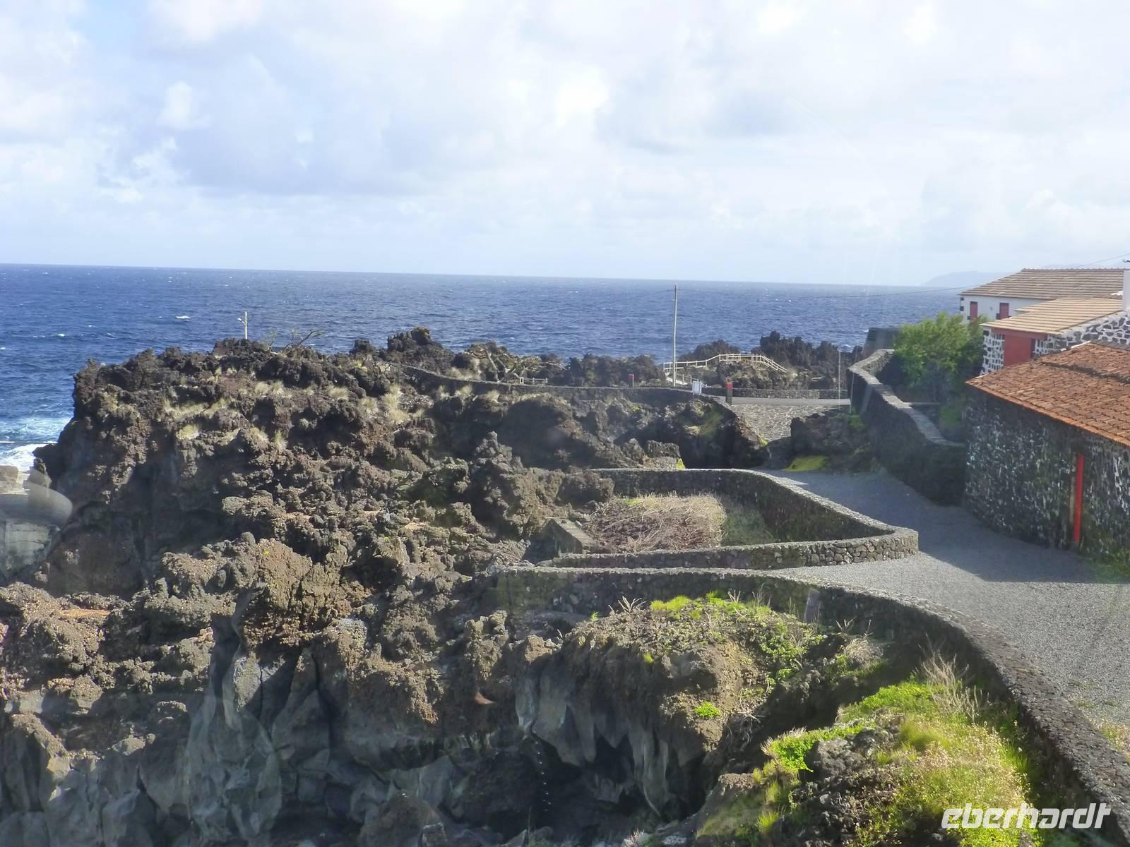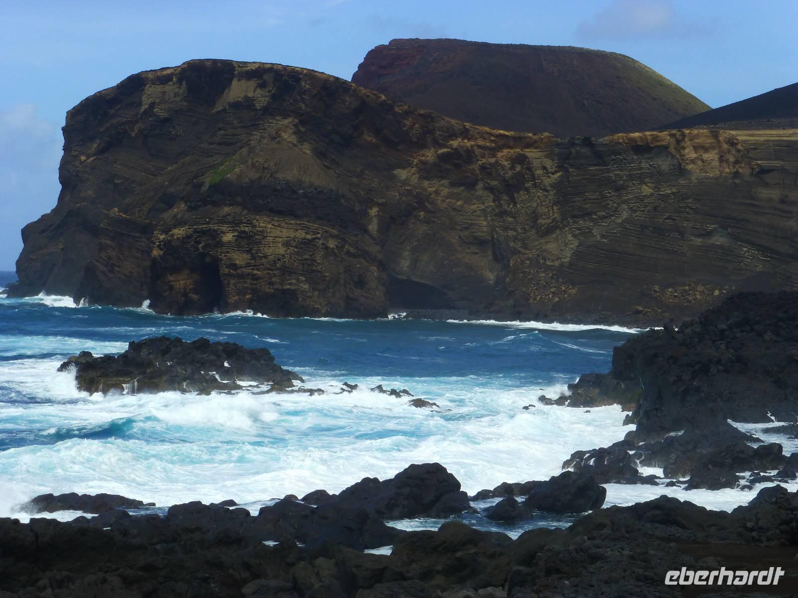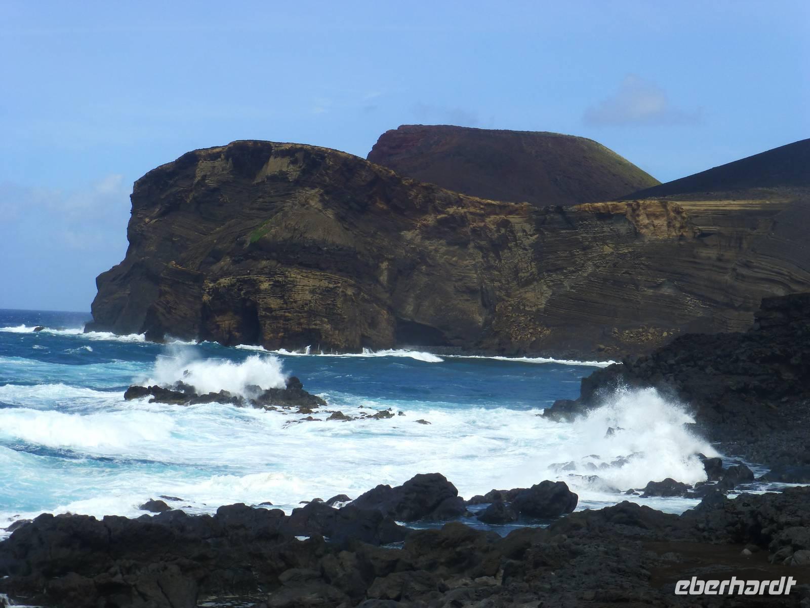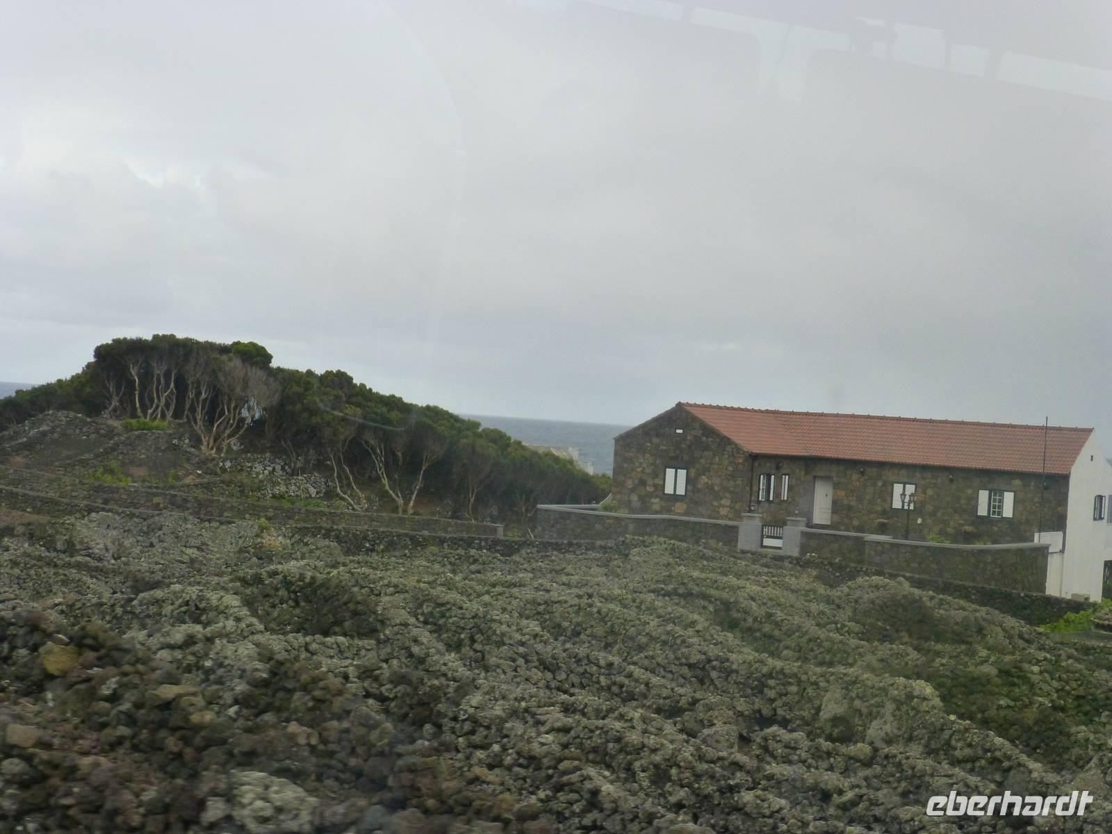 Heute hieß es zeitig aufstehen den die Insel Pico wartete auf unseren Besuch. Wir fuhren zum Hafen. Dort wartete schon unsere Fähre, die uns nach Pico bringen sollte. Etwa eine halbe Stunde dauerte die Überfahrt mit vielen Fotomotiven. Wir stiegen in den Bus, der für uns an diesem Tag bereit stand und begannen unsere Inselrundfahrt. Als erstes erreichten wir den kleinen Ort Cacherro. Hier kann man das Meer beobachten, wie es zwischen dem Lavagestein immer wieder ins Landesinnere schießt und welche gewaltige Kraft es dabei ausübt. Dabei formen sich auch die merkwürdigsten Dinge aus dem Stein. An einer Stelle meint man doch tatsächlich einen Hundekopf erkennen zu können. Im Anschluss fuhren wir dann in das Weinanbaugebiet von Pico und schossen hier noch ein paar schöne Bilder. Wir waren erstaunt wie der Wein in dem Lavagestein angebaut wird. Zum Mittagessen kehrten wir in ein Weingut ein. Wo wir reichlich Schlemmen konnten und natürlich den eigenen Wein und Schnaps probiert haben. Der Pico zeigte sich heute leider nicht. Noch verschieden Foto Stopps und dann war der faszinierende Tag auch schon wieder fast vorbei und wir fuhren mit der Fähre zurück nach Horta. Unser Abendessen konnten wir heute selbst zubereiten. Ein besonderes Vergnügen ein Essen auf dem heißen Lavastein. Es war sehr reichlich und der Wein mundete auch.