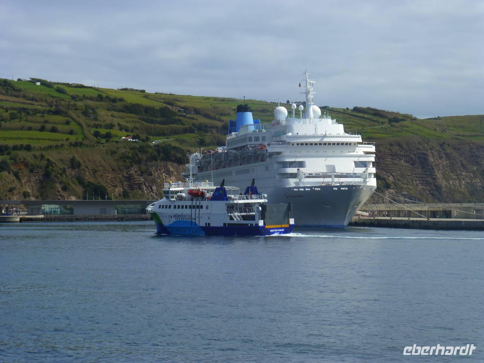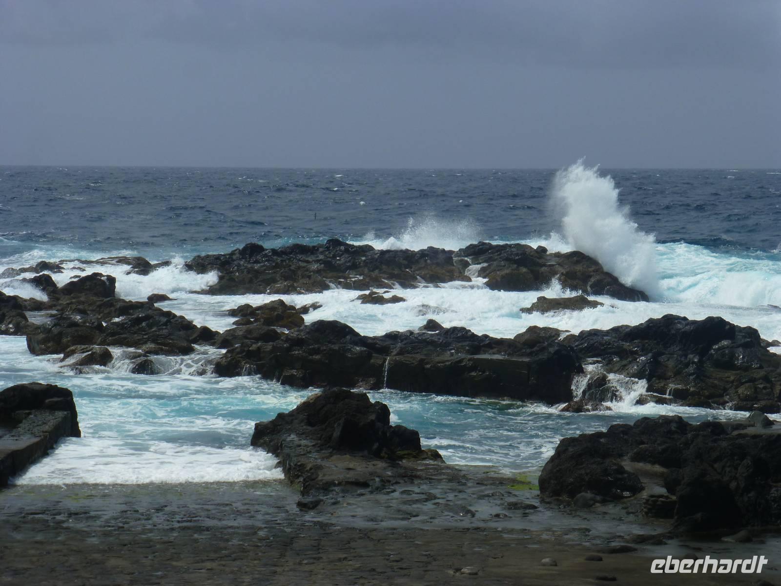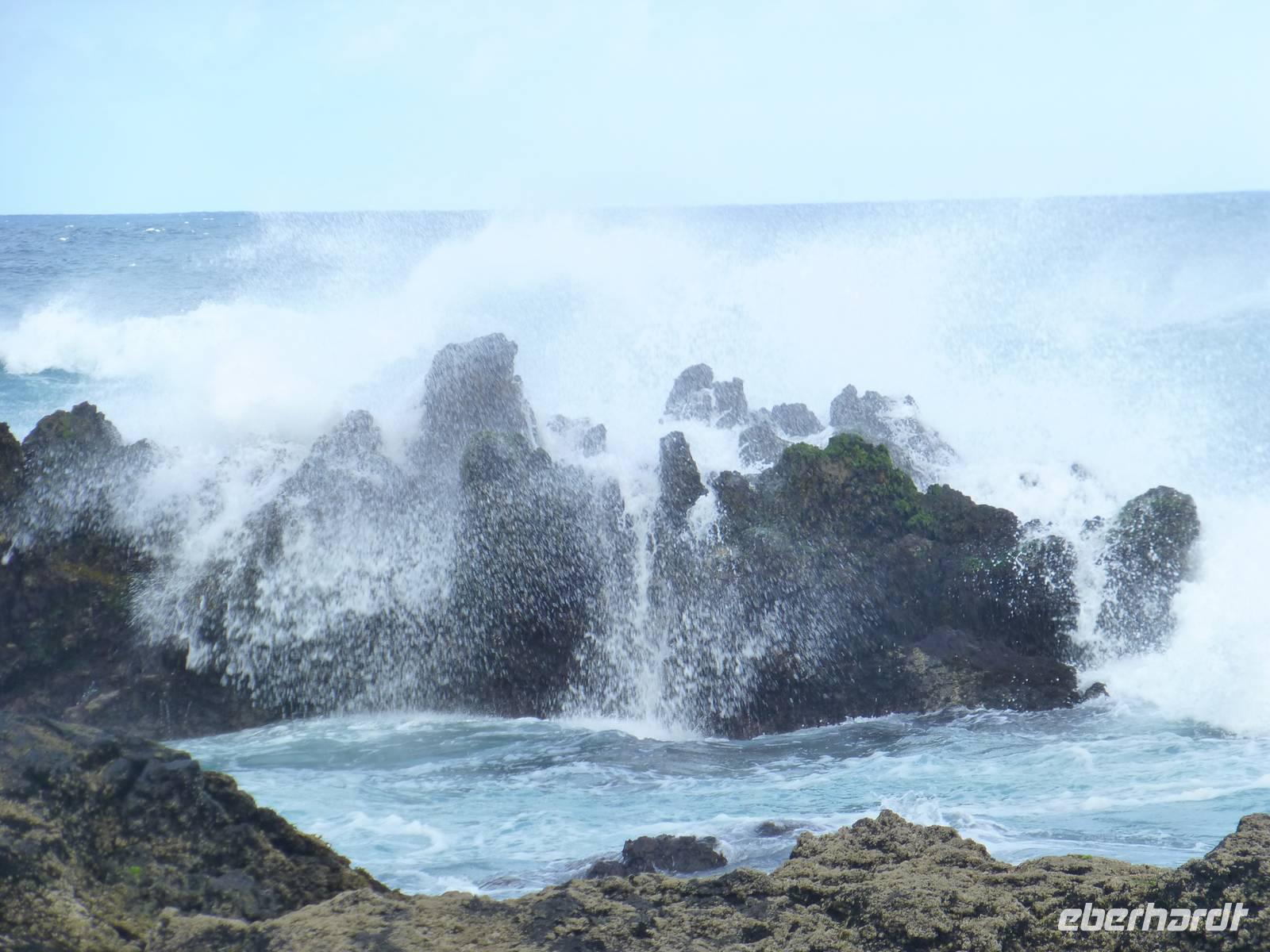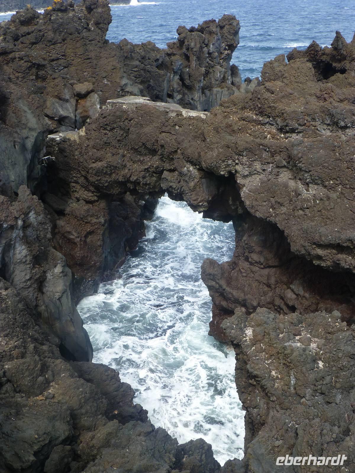 Heute hieß es zeitig aufstehen den die Insel Pico wartete auf unseren Besuch. Wir fuhren zum Hafen. Dort wartete schon unsere Fähre, die uns nach Pico bringen sollte. Etwa eine halbe Stunde dauerte die Überfahrt mit vielen Fotomotiven. Wir stiegen in den Bus, der für uns an diesem Tag bereit stand und begannen unsere Inselrundfahrt. Als erstes erreichten wir den kleinen Ort Cacherro. Hier kann man das Meer beobachten, wie es zwischen dem Lavagestein immer wieder ins Landesinnere schießt und welche gewaltige Kraft es dabei ausübt. Dabei formen sich auch die merkwürdigsten Dinge aus dem Stein. An einer Stelle meint man doch tatsächlich einen Hundekopf erkennen zu können. Im Anschluss fuhren wir dann in das Weinanbaugebiet von Pico und schossen hier noch ein paar schöne Bilder. Wir waren erstaunt wie der Wein in dem Lavagestein angebaut wird. Zum Mittagessen kehrten wir in ein Weingut ein. Wo wir reichlich Schlemmen konnten und natürlich den eigenen Wein und Schnaps probiert haben. Der Pico zeigte sich heute leider nicht. Noch verschieden Foto Stopps und dann war der faszinierende Tag auch schon wieder fast vorbei und wir fuhren mit der Fähre zurück nach Horta. Unser Abendessen konnten wir heute selbst zubereiten. Ein besonderes Vergnügen ein Essen auf dem heißen Lavastein. Es war sehr reichlich und der Wein mundete auch.
