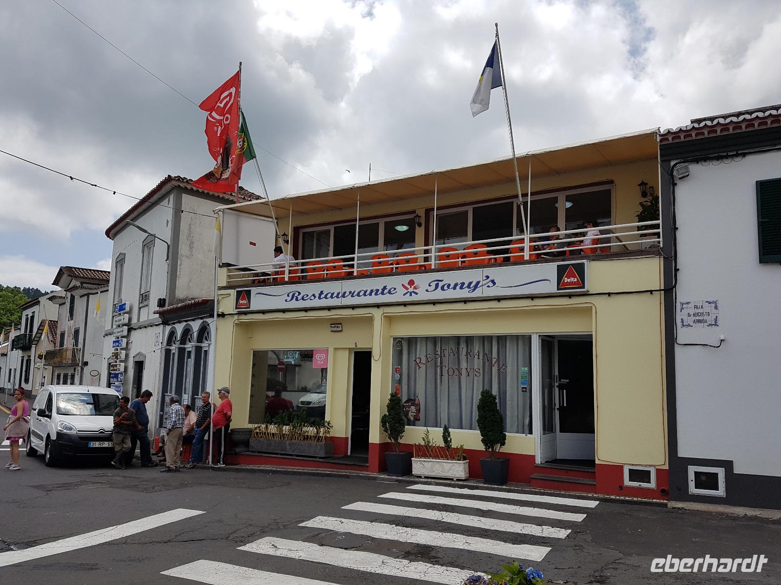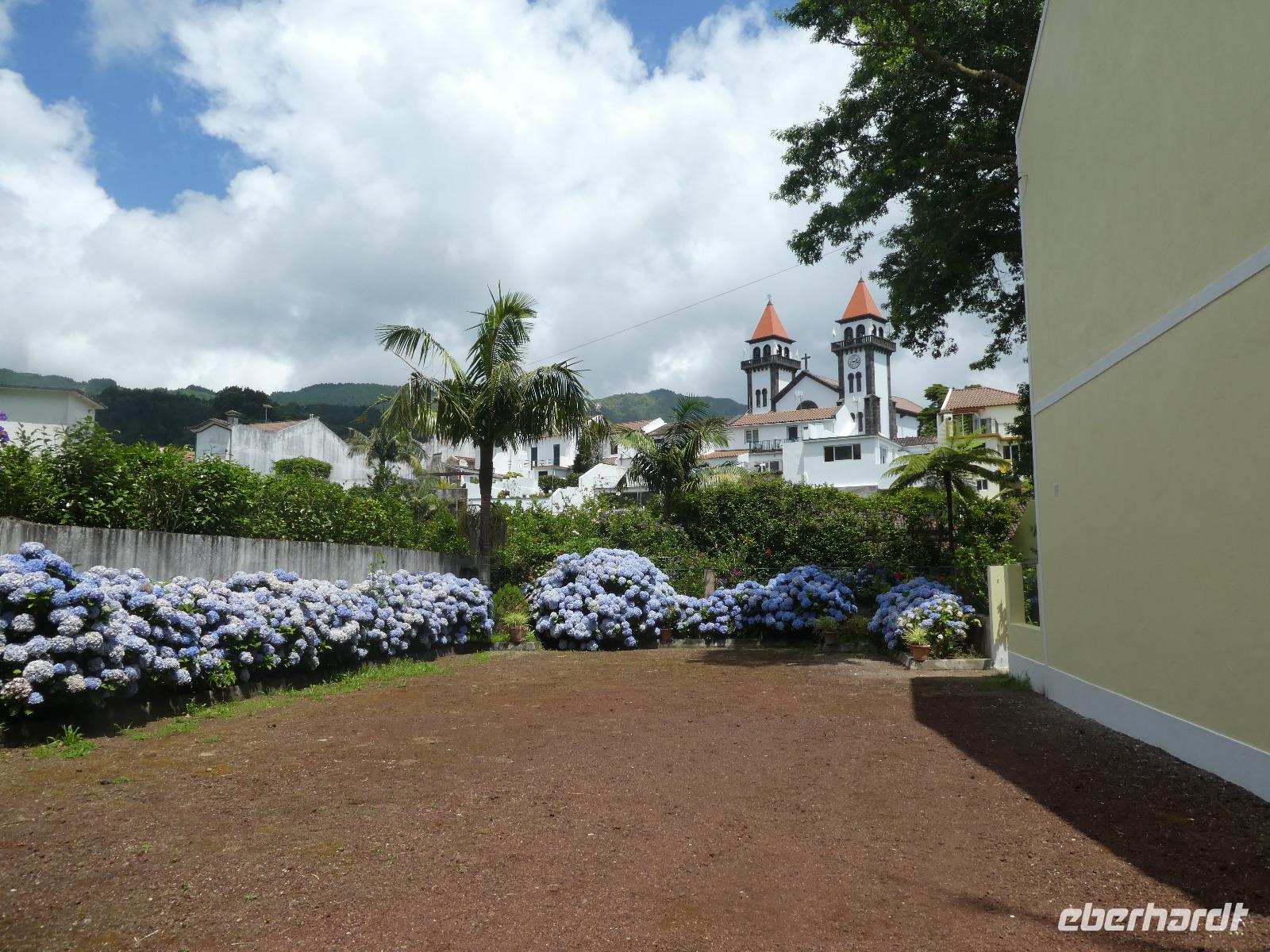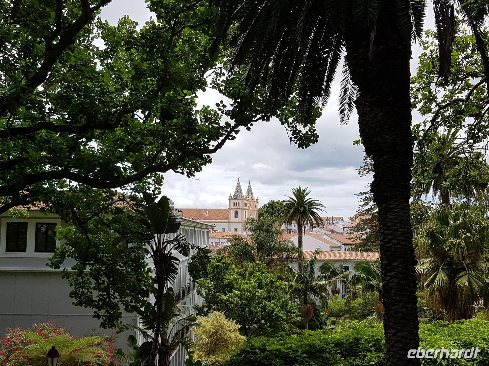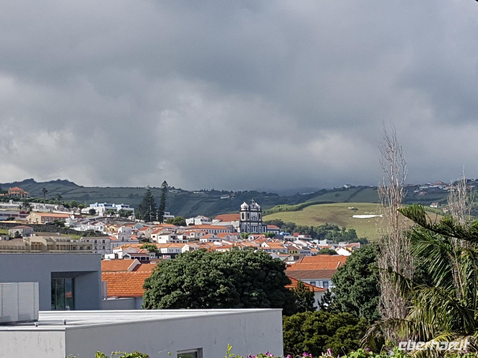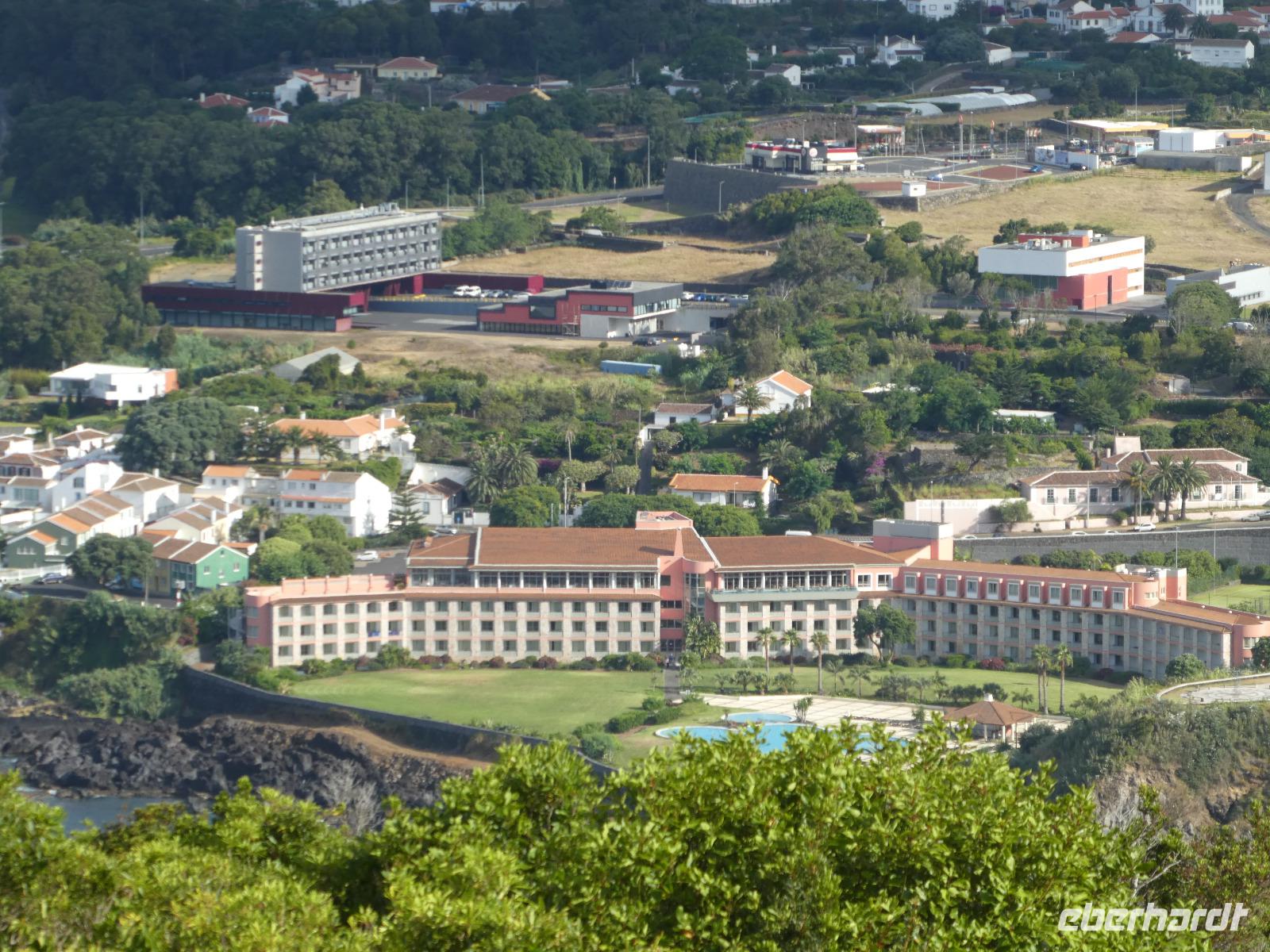 Zurück im Hotel räumten wir die Zimmer und genossen die Wartezeit bis zur Abholung auf der Terrasse unseres Hotels. Und plötzlich zogen die Wolken auf und wir sahen die Spitze des Vulkanes Pico. Ein grandioser Anblick und gerade noch rechtzeitig vor unserer Abreise. Am Nachmittag flogen wir dann zurück auf die Insel Sao Miguel und checkten ein im uns schon bekannten Park Hotel Sao Miguel. Unser Abendssen nahmen wir wieder bei der Kirche im Cafe Central ein.