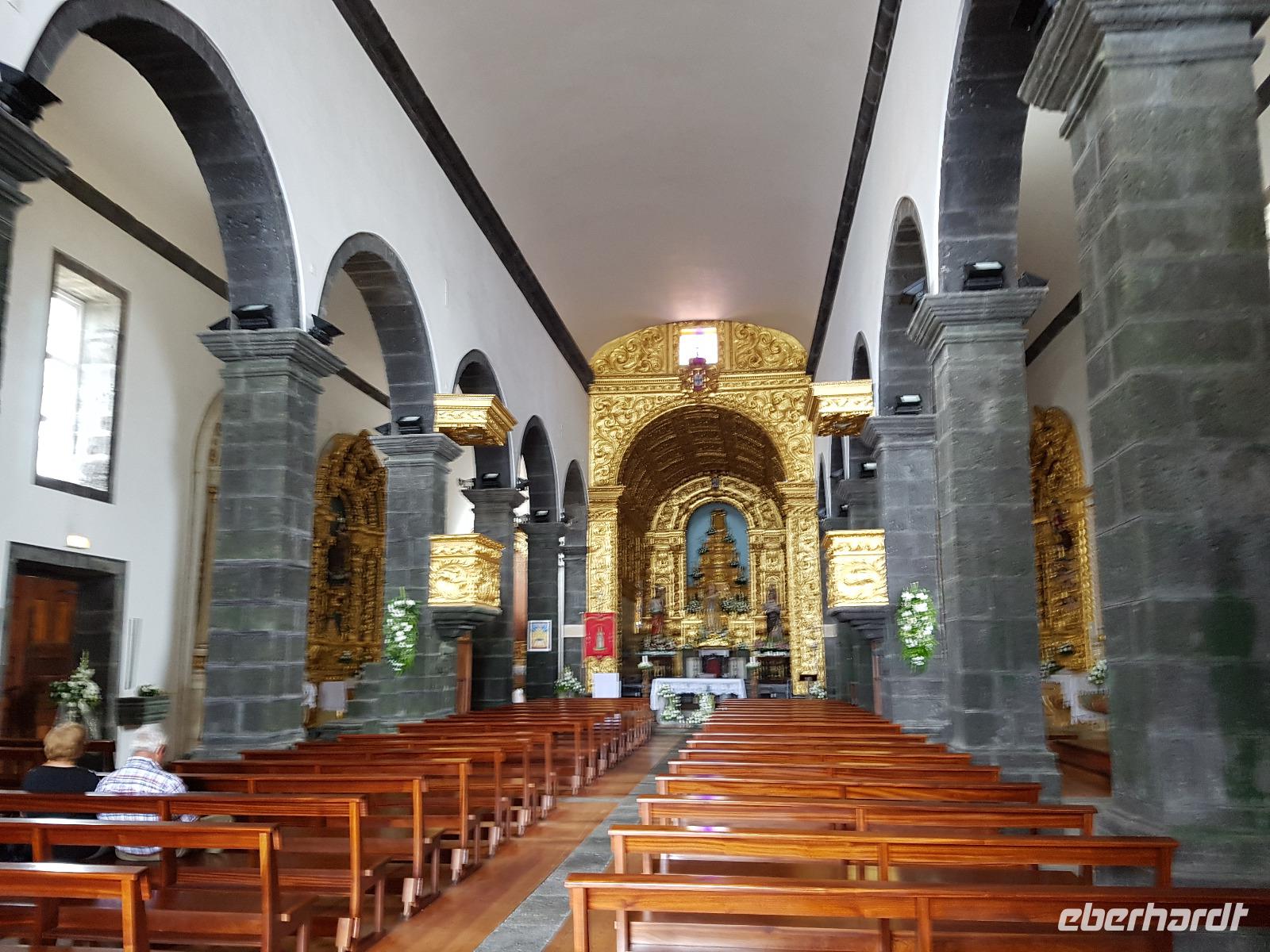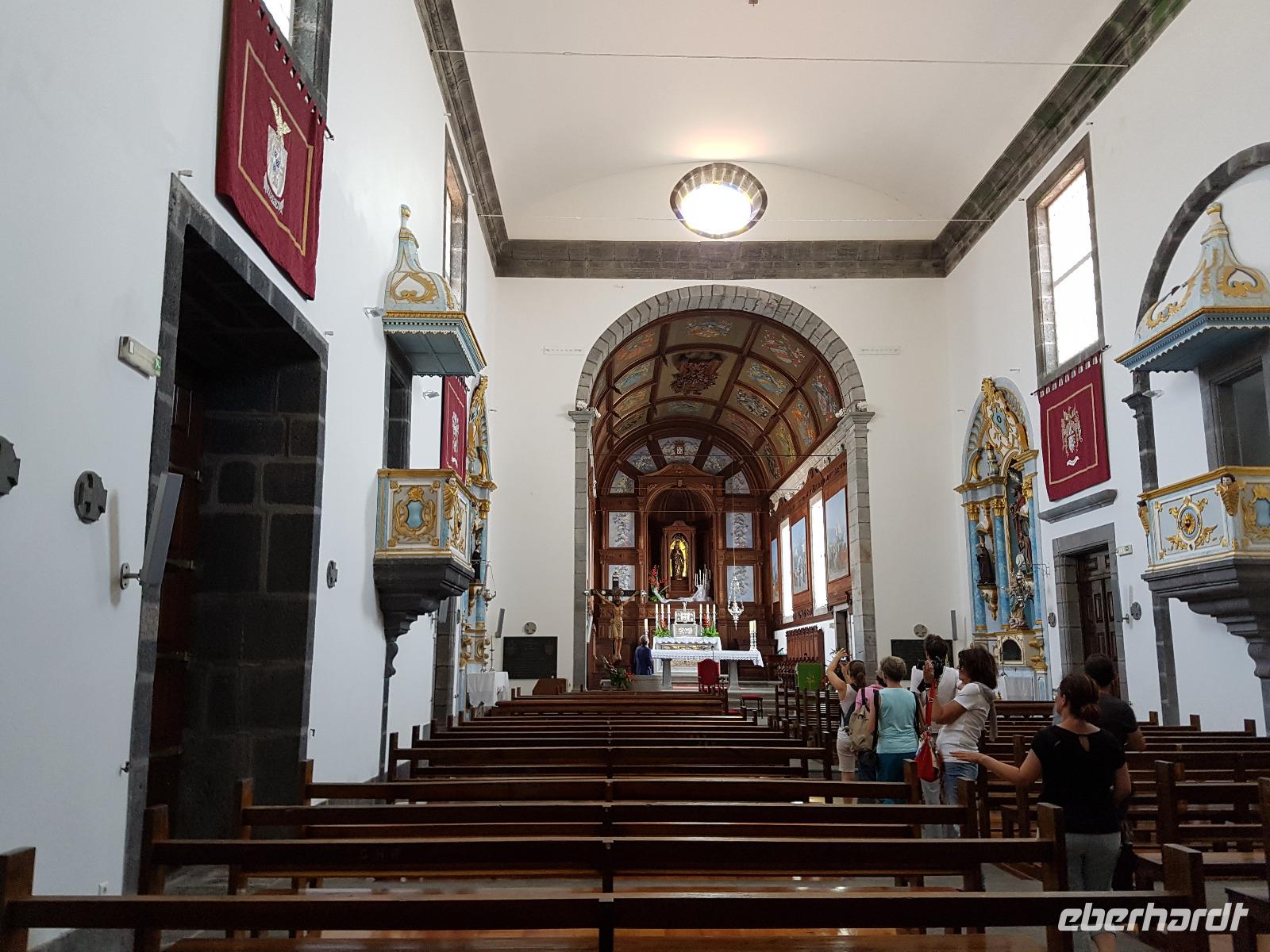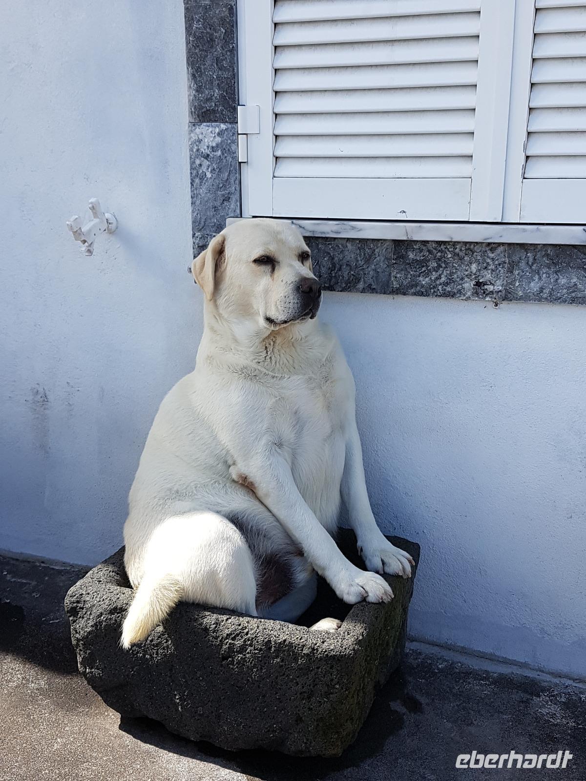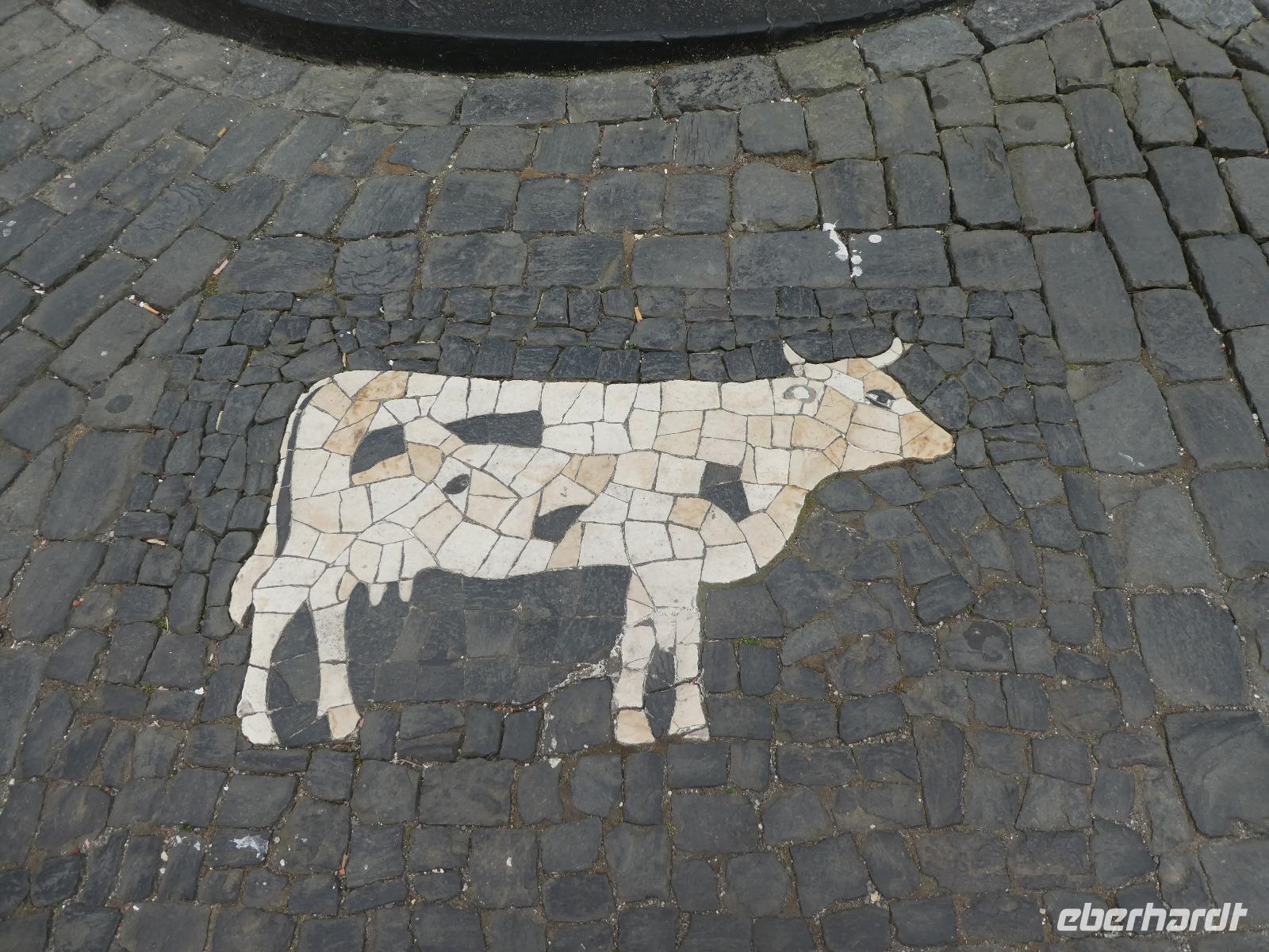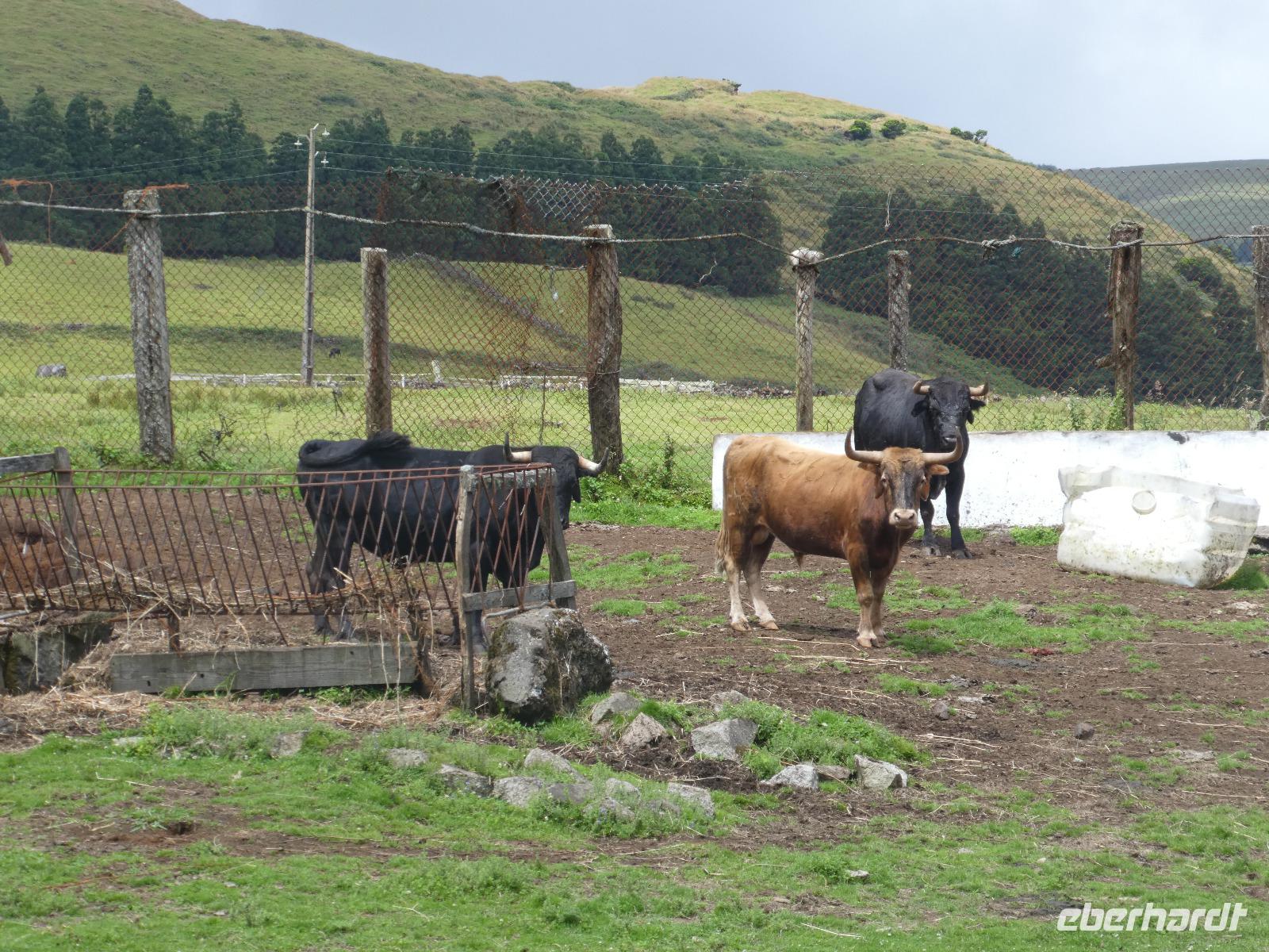 Nach dem Frühstück starteten wir unsere Rundfahrt auf den Monte Brasil mit herrlicher Aussicht auf Angra und auch unser Hotel. Der Berg ist grössten Teils von einer Festungsmauer umgeben und auch das Militär war dort präsent. Weiter fuhren wir noch einmal durch Agra und später oberhalb der Küste durch Ribeirinha. Im Dorf wurde schon alles für das bevorstehende Fest geschmückt und natürlich findet dort auch eine Tourada statt. Über dem Dorf liegen die Viehweiden und sind durch Steinmauern getrennt. Unsere nächster Halt war in Sao Sebastiao mit Besuch eines Heiliggeist Hauses und der Kirche mit wunderschönen Mosaiken an den Wänden.