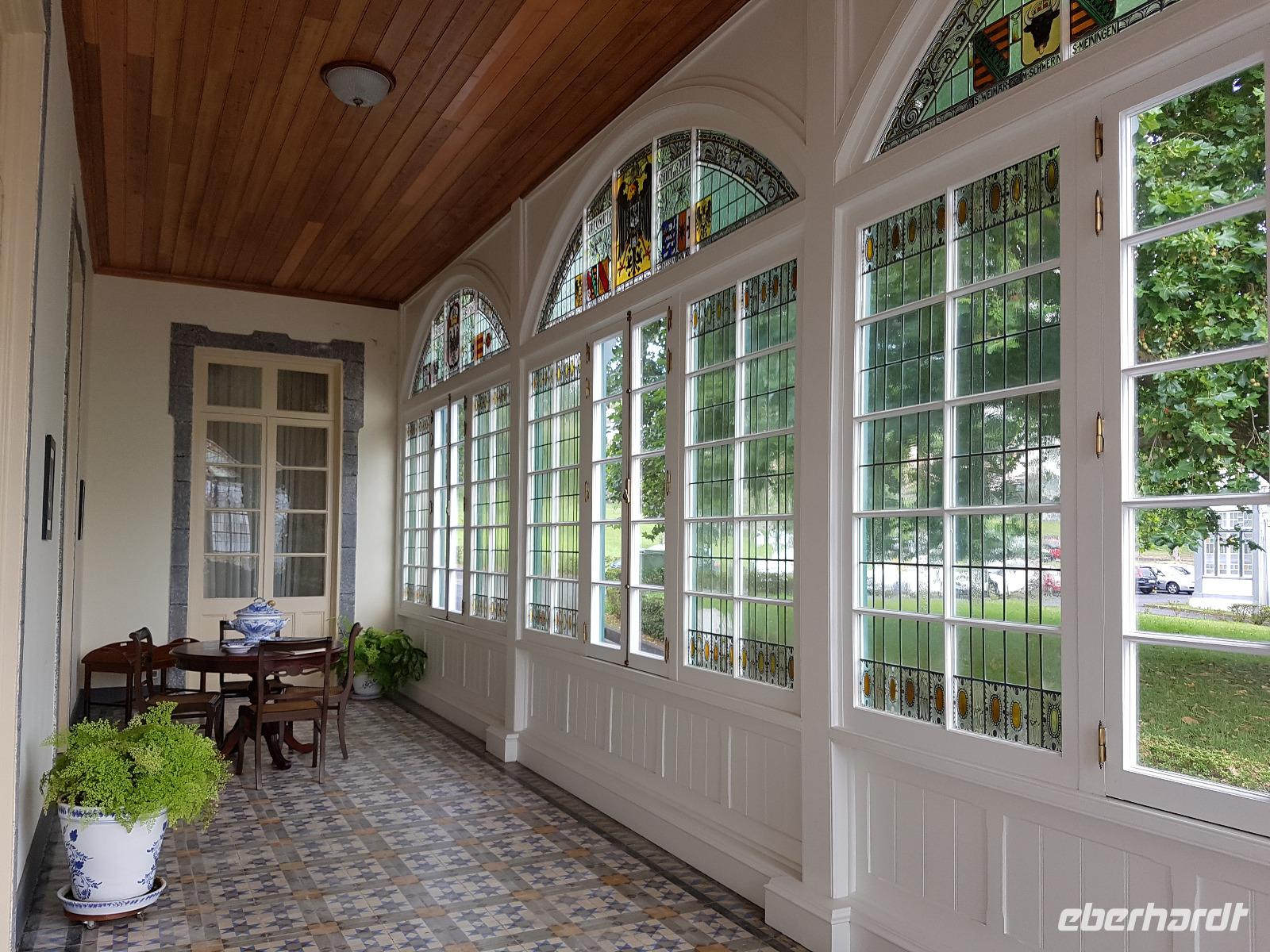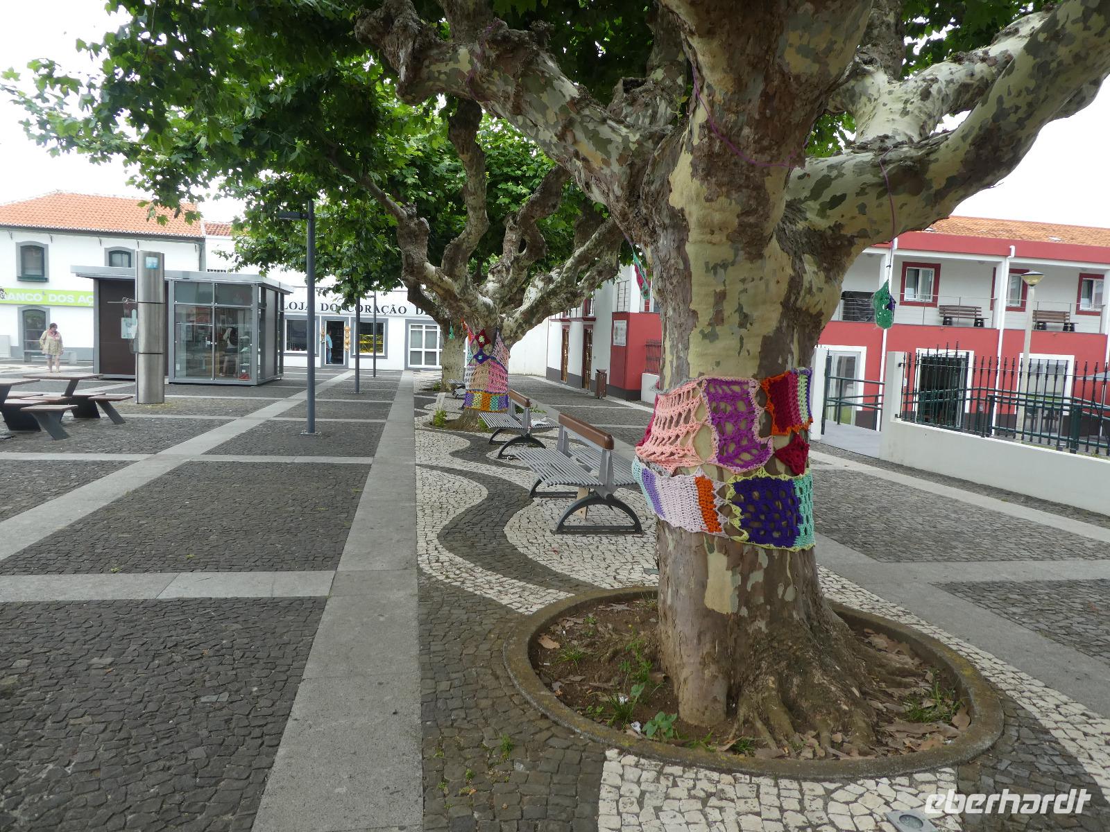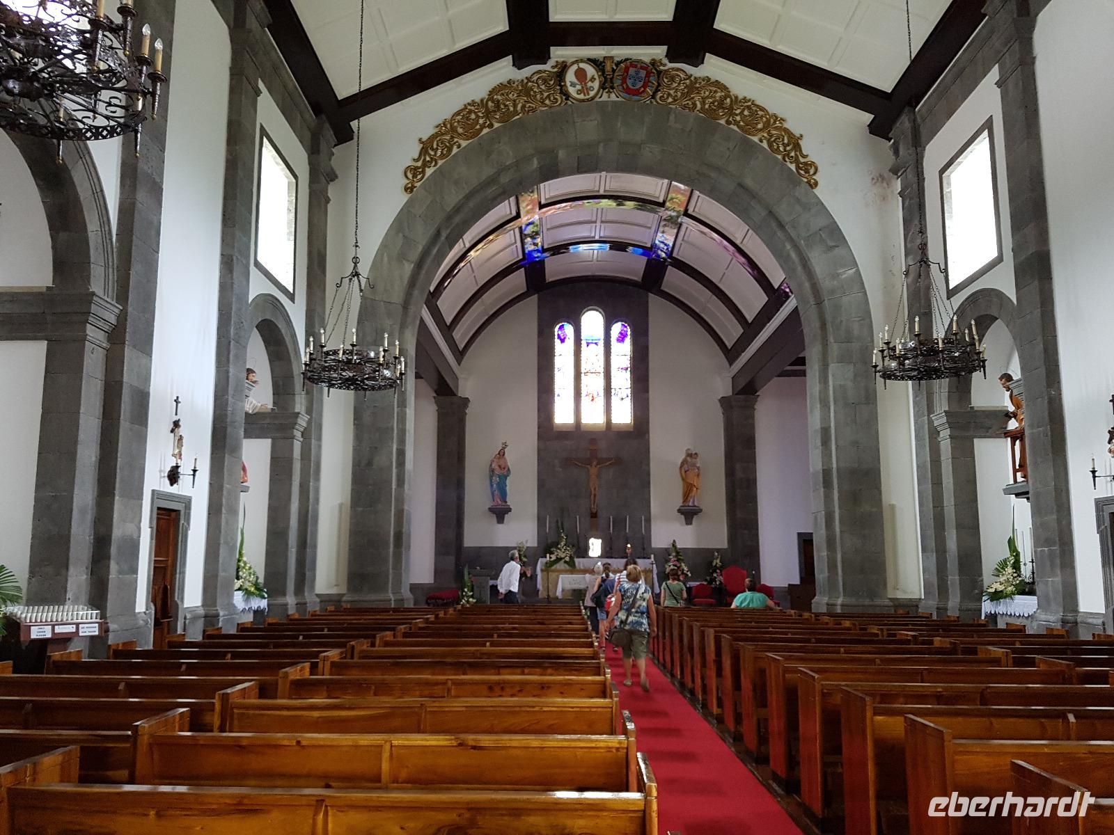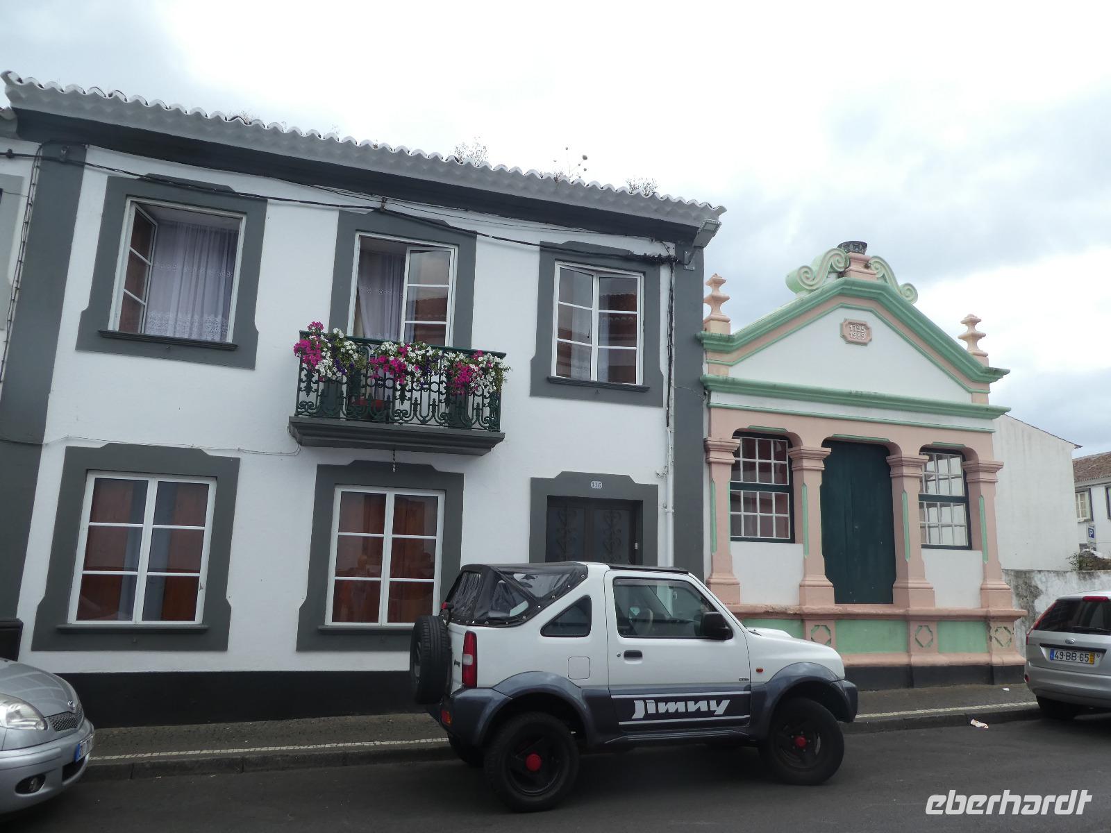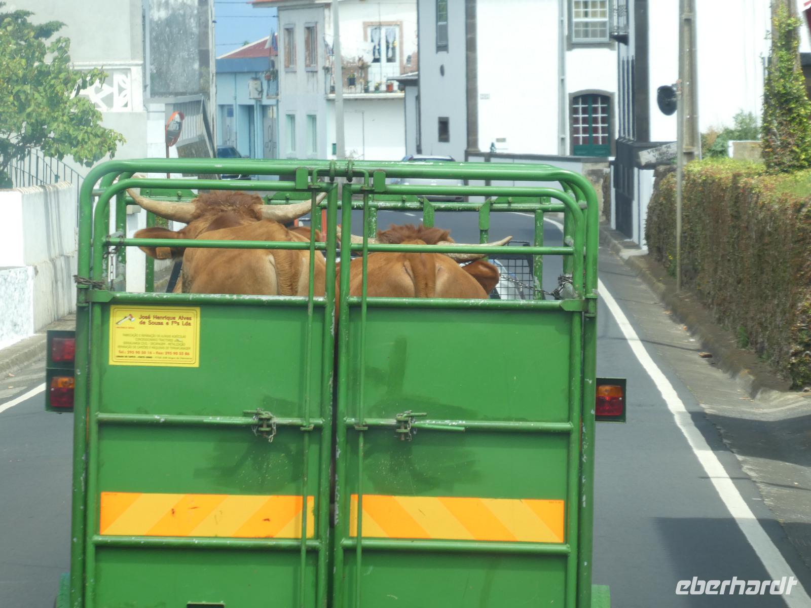 Nach dem Frühstück starteten wir unsere Rundfahrt auf den Monte Brasil mit herrlicher Aussicht auf Angra und auch unser Hotel. Der Berg ist grössten Teils von einer Festungsmauer umgeben und auch das Militär war dort präsent. Weiter fuhren wir noch einmal durch Agra und später oberhalb der Küste durch Ribeirinha. Im Dorf wurde schon alles für das bevorstehende Fest geschmückt und natürlich findet dort auch eine Tourada statt. Über dem Dorf liegen die Viehweiden und sind durch Steinmauern getrennt. Unsere nächster Halt war in Sao Sebastiao mit Besuch eines Heiliggeist Hauses und der Kirche mit wunderschönen Mosaiken an den Wänden.