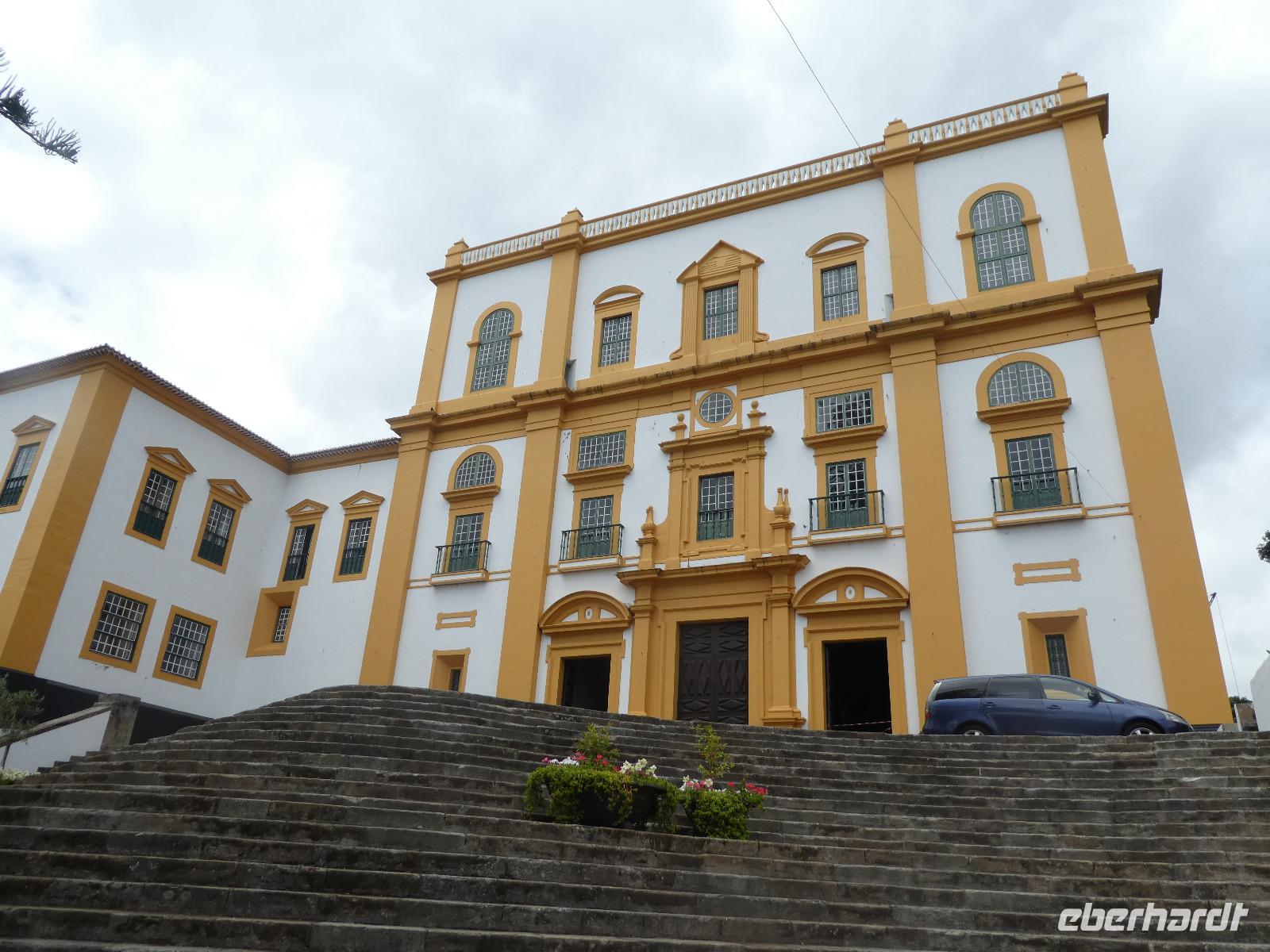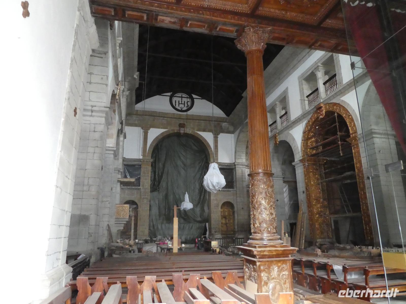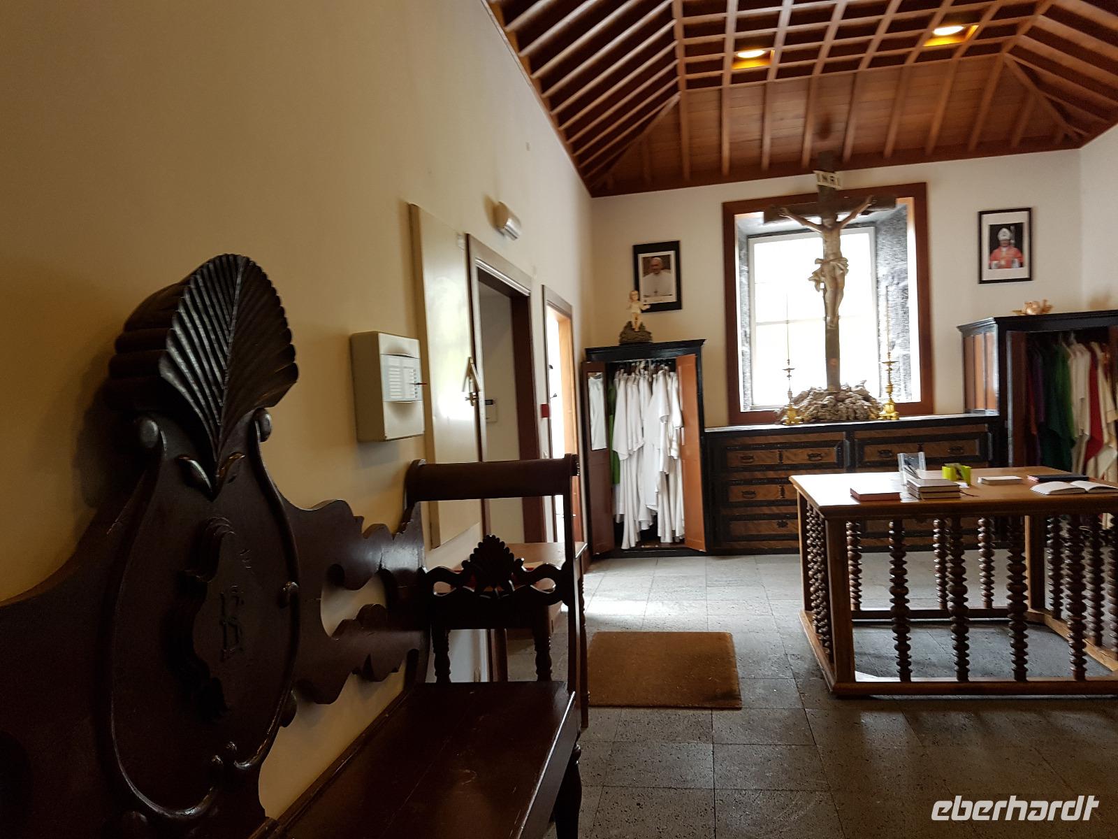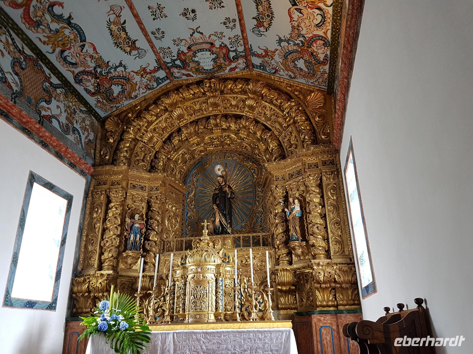 Nach dem Frühstück starteten wir unsere Rundfahrt auf den Monte Brasil mit herrlicher Aussicht auf Angra und auch unser Hotel. Der Berg ist grössten Teils von einer Festungsmauer umgeben und auch das Militär war dort präsent. Weiter fuhren wir noch einmal durch Agra und später oberhalb der Küste durch Ribeirinha. Im Dorf wurde schon alles für das bevorstehende Fest geschmückt und natürlich findet dort auch eine Tourada statt. Über dem Dorf liegen die Viehweiden und sind durch Steinmauern getrennt. Unsere nächster Halt war in Sao Sebastiao mit Besuch eines Heiliggeist Hauses und der Kirche mit wunderschönen Mosaiken an den Wänden.
