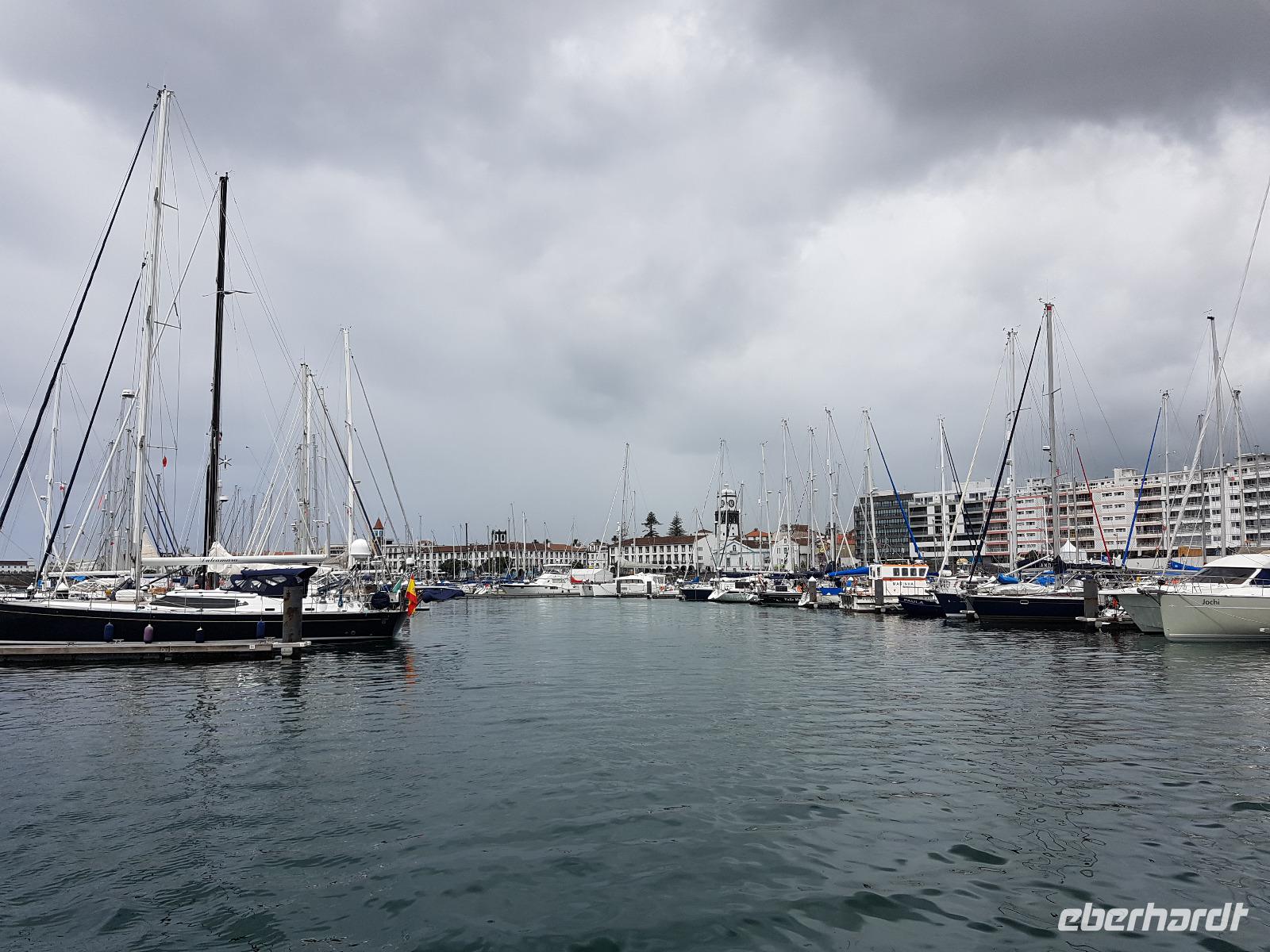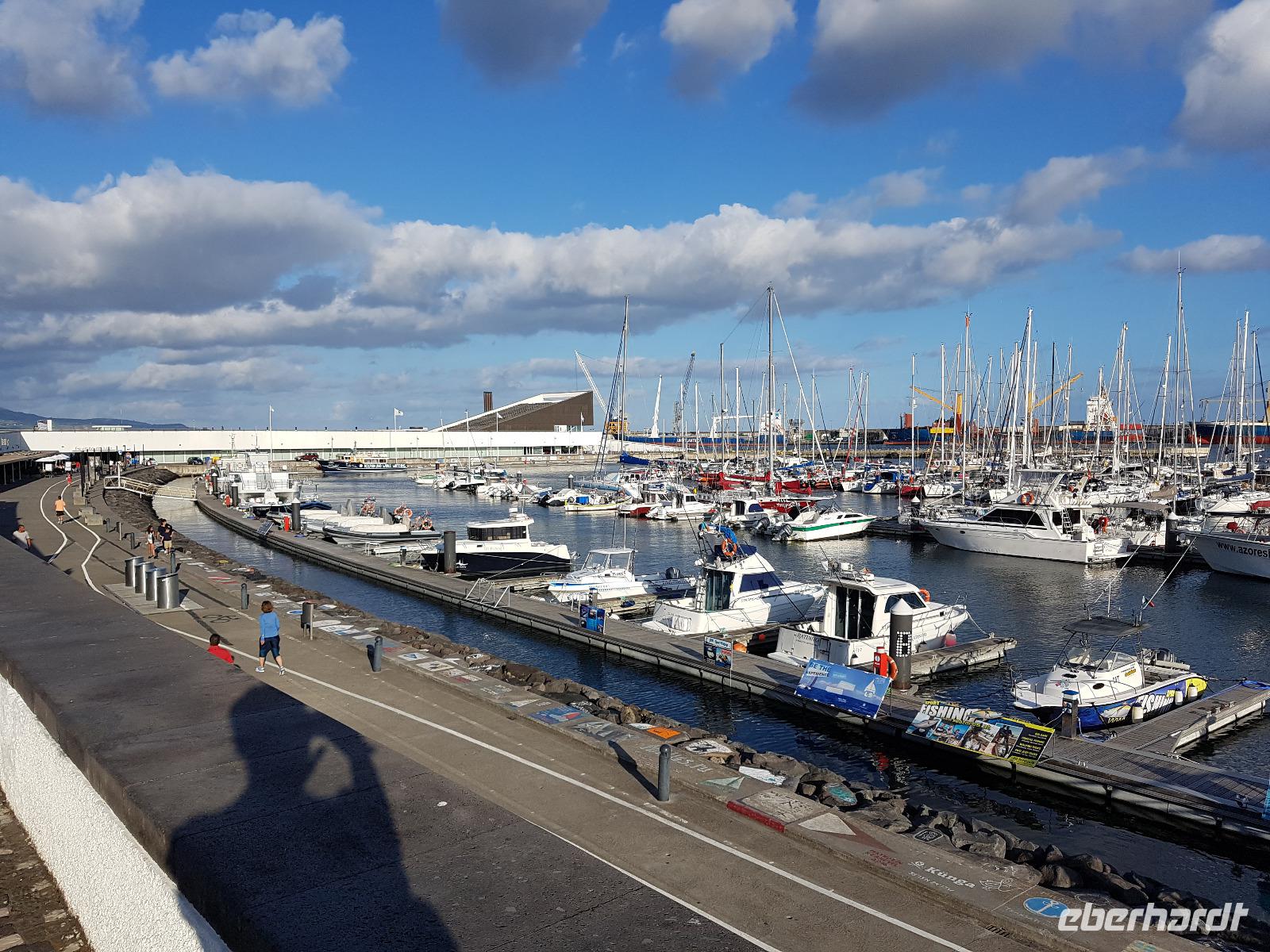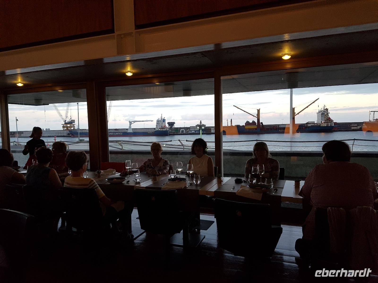 14 Uhr trafen wir uns wieder zu einem Spaziergang durch Ponta Delgada. Leider gab es den "Blödmannregen", bei dem es nur nieselt, man aber trotzdem richtig nass wird. So fiel der Spaziergang ins Wasser und einige besuchten ein nahe gelegenes Einkaufscenter. Zum Abschiedsabendessen gingen wir noch einmal zum Hafen.
