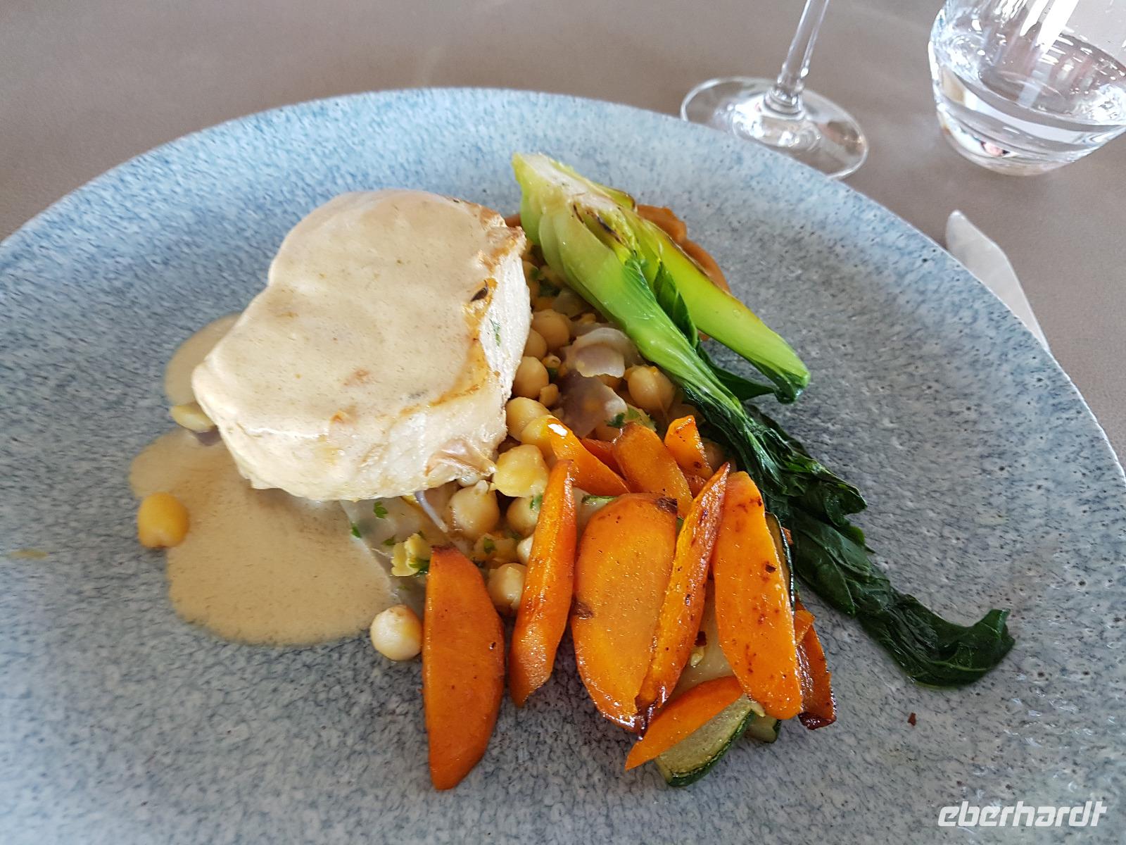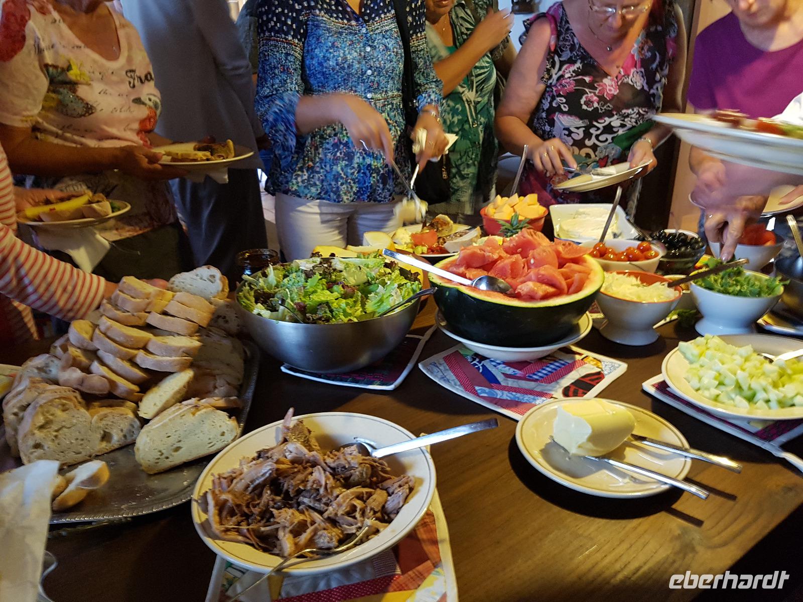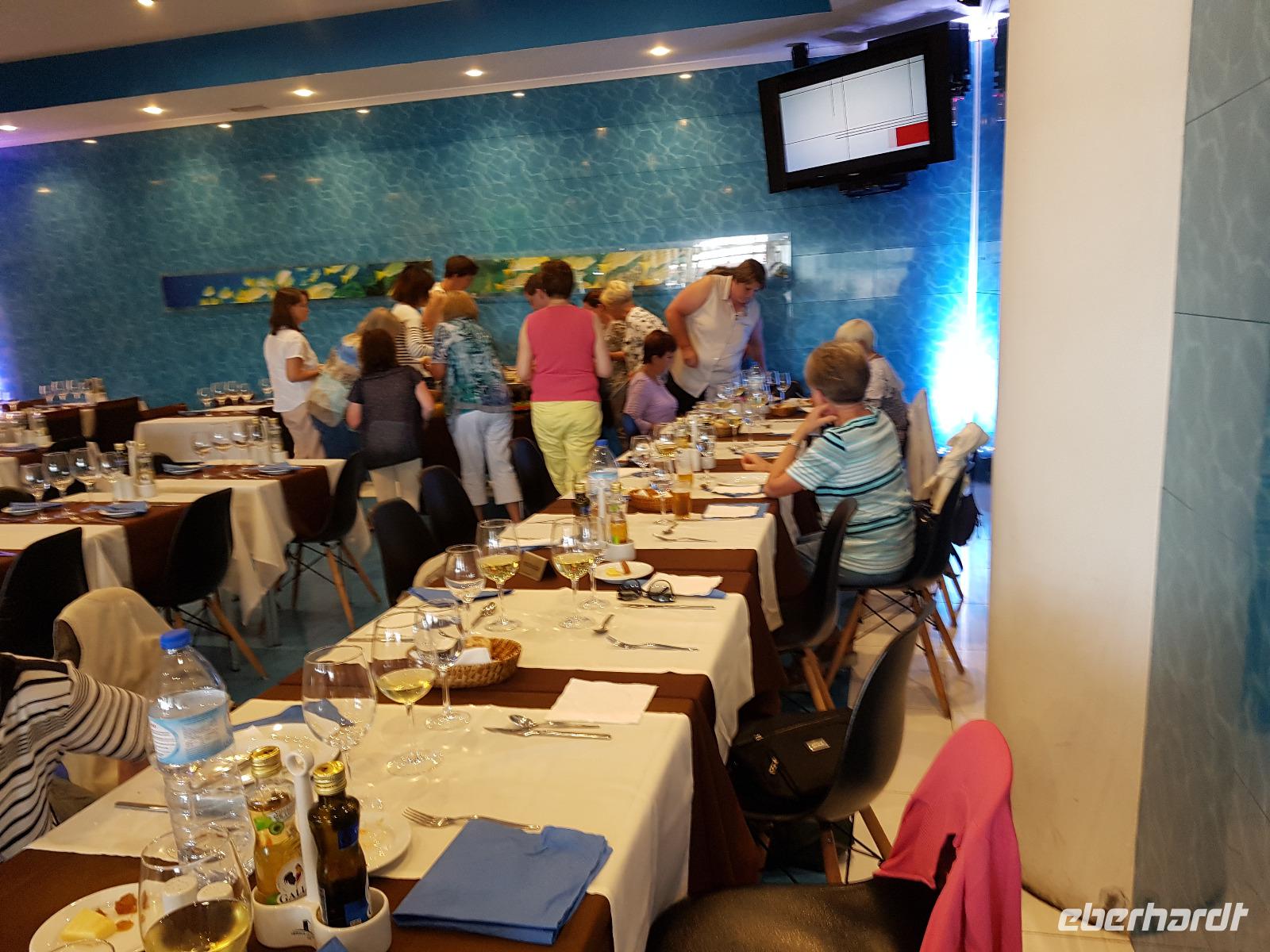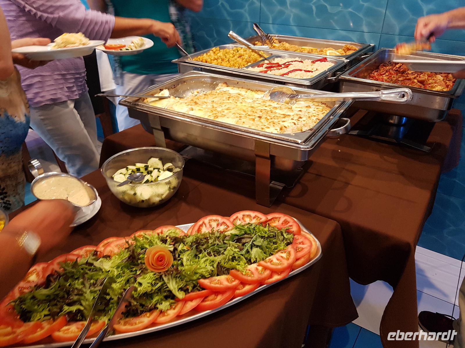Im Yacht Club war für unsere Gruppe ein Buffet mit Salat, Bacalhau, Hähnchenpfanne, Fischfilet, verschiedenen Beilagen und zum Nachtisch Ananaskuchen und Kaffee vorbereitet. Jeder hatte 2 Getränke frei und wir nutzten das letzte gemeinsame Essen, um uns bei Joaquim sehr herzlich für seine gute Betreuung zu bedanken. Es war ein schöner Abend und bei Vollmondschein traten wir zu Fuss den Rückweg zum Hotel an. Einige nahmen noch einen Drink in der Bar und dann mussten ja noch die Koffer gepackt werden.