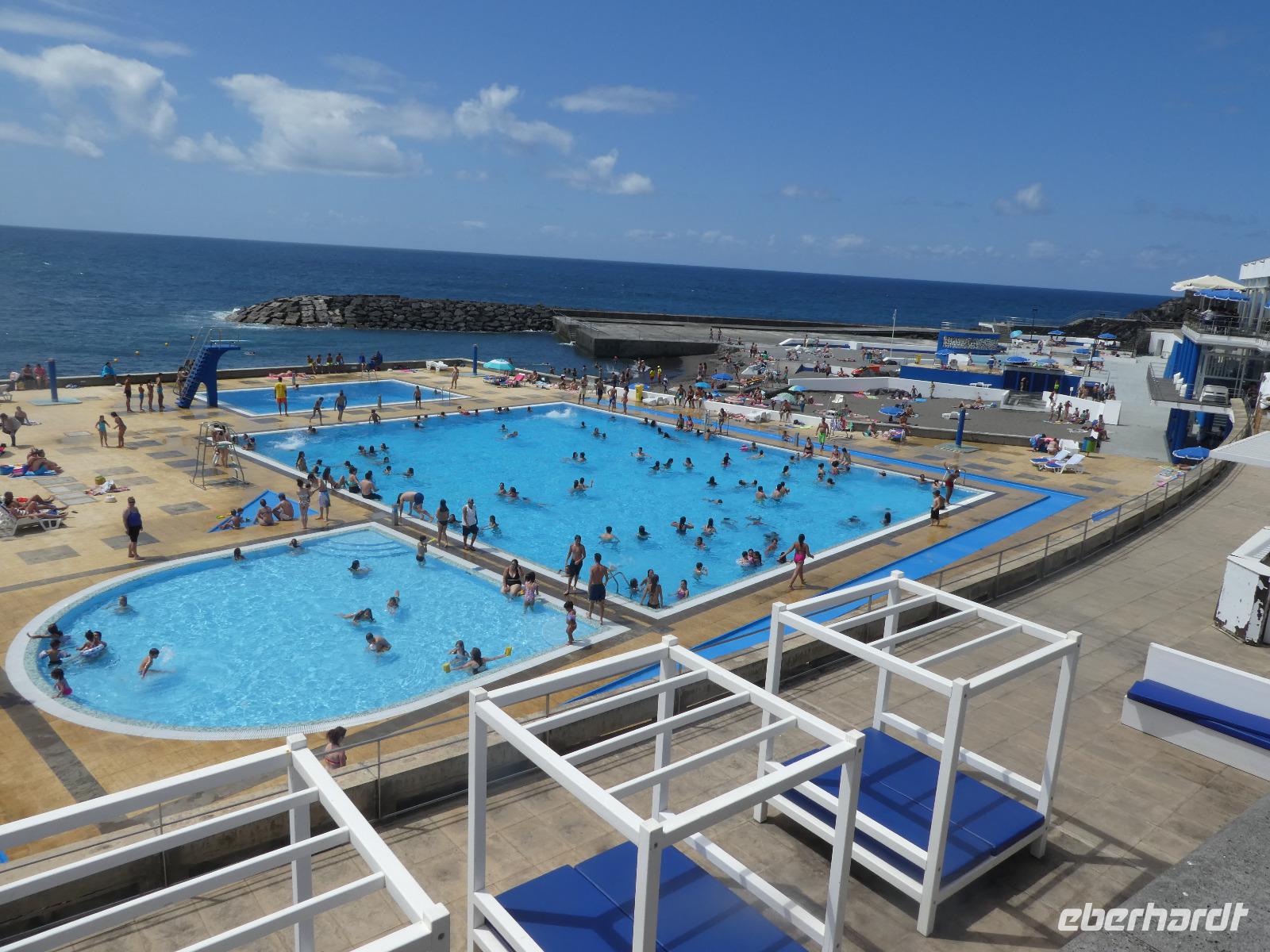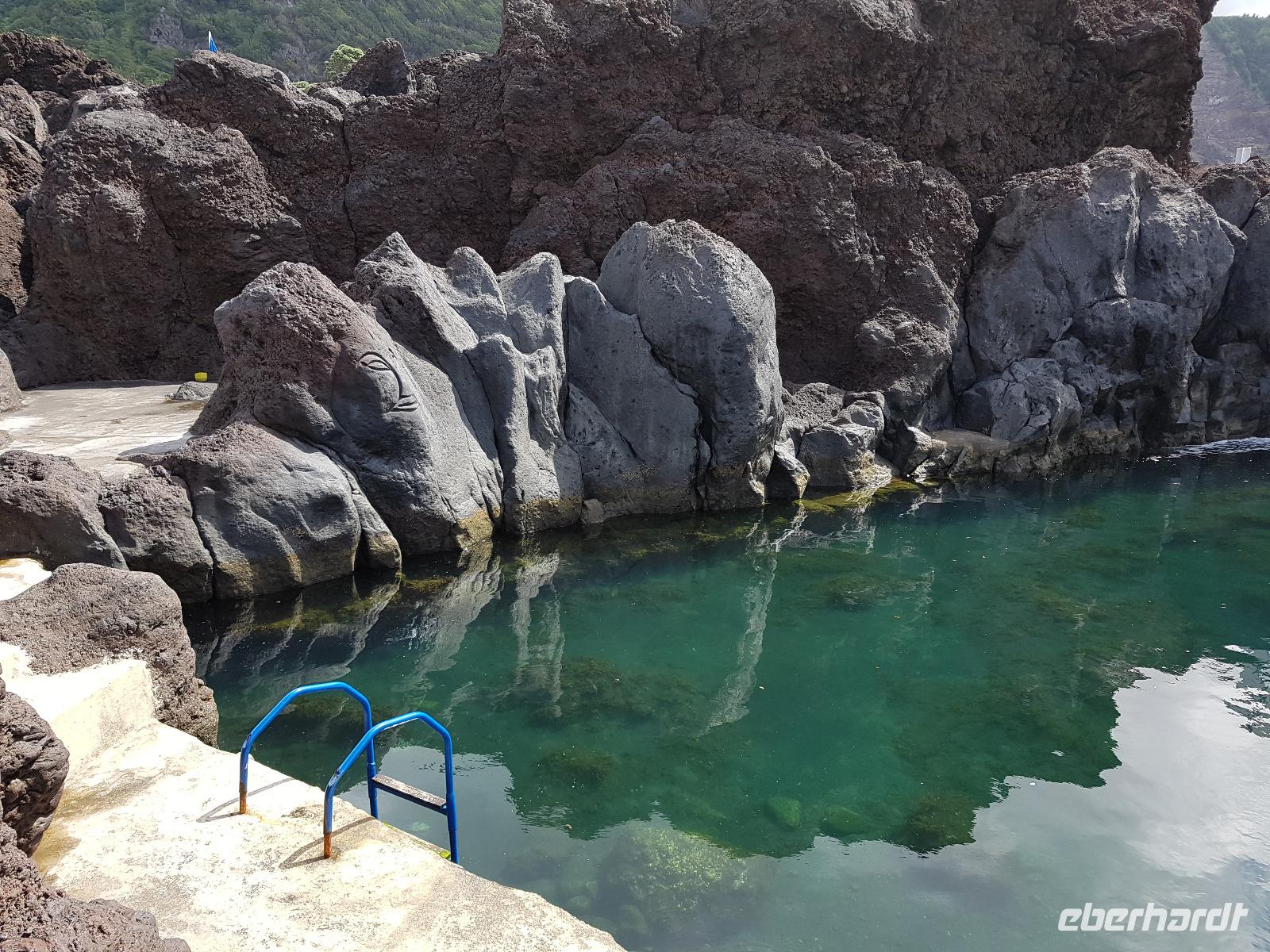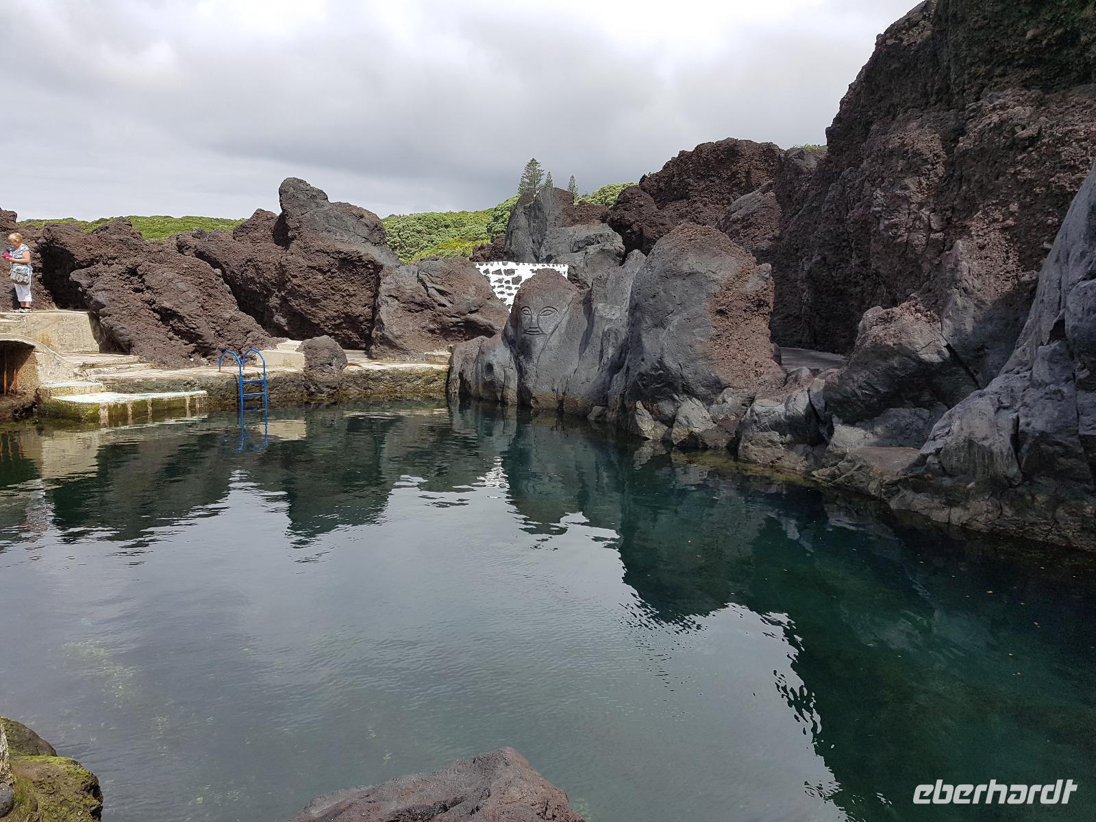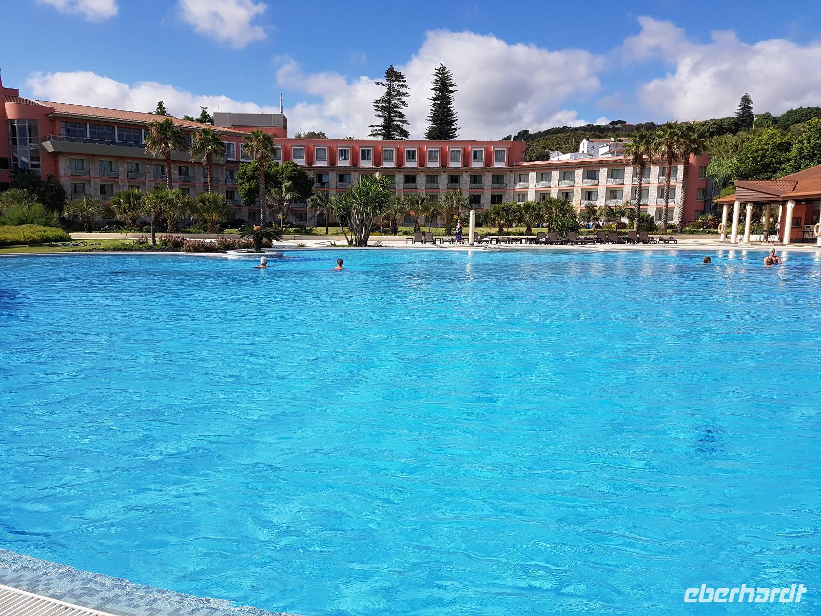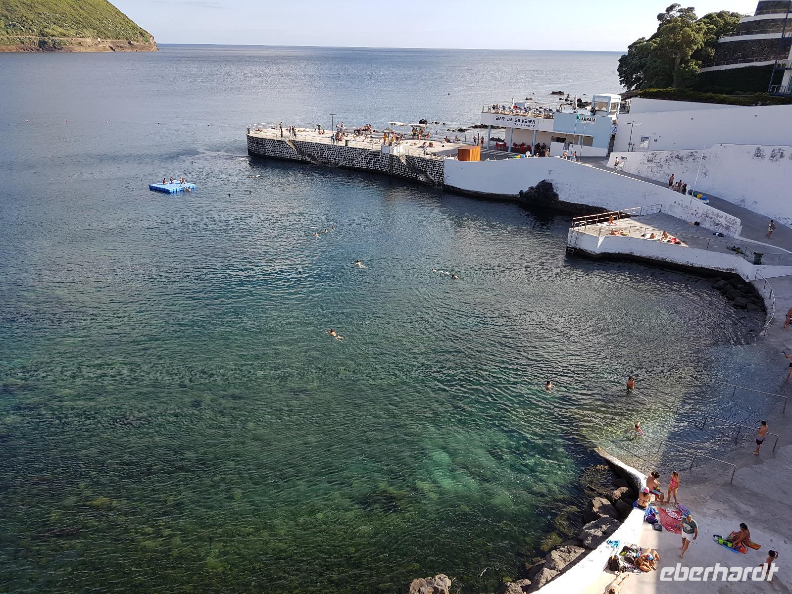 Von Aussichtspunkt Serra do Cume auf 545m Höhe hatten wir eine gute Sicht in den eingestürzten Krater. In Praia da Vitoria spazierten wir durch Ort über die "gewellten" Plätze, besuchten den Fisch- und Obstmarkt, die Kirche und unten am Strand erwartete uns der Bus und wir fuhren vorbei am Flughafen nach Bisciotos. Dort machten wir Mittagspause und viele Singles badeten in den Meerwasserpools. Es folgte der Besuch des Weinmuseums mit einer Probe des mit Weinbrand versetzten Weines. Gegen 16 Uhr waren wir zurück im Hotel und konnten noch einmal die herrliche Poolanlage nutzen.