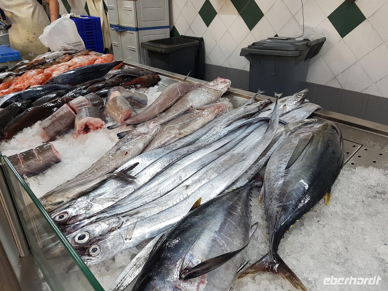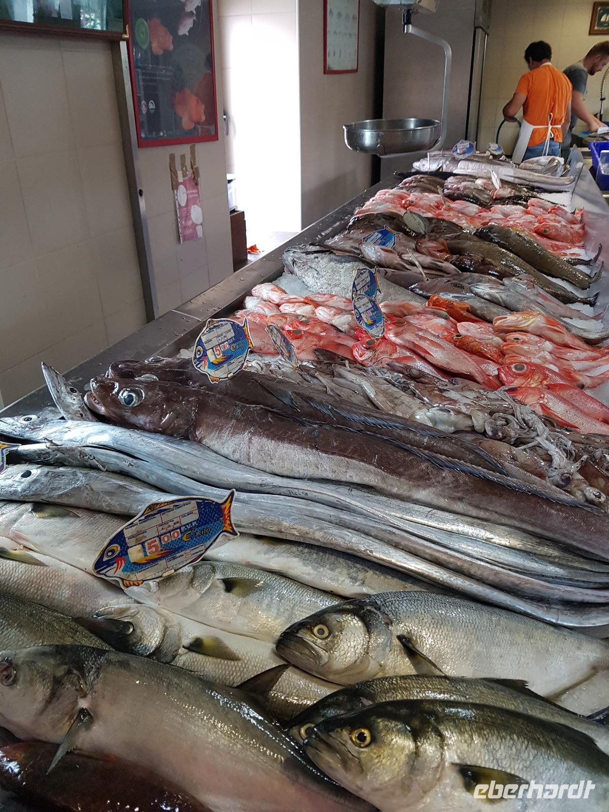 Für heute war leichter Regen vorher gesagt und so begannen wir unser Programm mit der Besichtigung einer Ananas Plantage. Nach dem Niedergang der Orangen- und Weinproduktion auf den Azoren begann der Anbau von Ananas. In 7 Schritten und 2 Jahre lang reifen die Früchte und wir konnten in den Gewächshäusern die verschiedenen Stadien sehen. Zum Schluss probierten wir den Ananas Likör. Unsere Fahrt führte weiter in den Westen der Insel, wo wir in Capelas das ethnografische Museum besuchten. In einer alten Lagerhalle waren alle möglichen Sammlerstücke aus verschiedenen Zeitepochen in kleinen "Läden"ausgestellt und an zwei alten Webstühlen wurden Auftragsarbeiten gefertigt. Weitere Fotostopps an einer steilen Küste folgten bei Sonnenschein, aber auf der Weiterfahrt hinauf waren wir in den Wolken. In Sete Cidades machten wir unsere Mittagspause und hofften auf besseres Wetter, um den Blick auf die beiden Seen im Krater zu haben. Wir spazierten nach dem Essen bis zur Brücke zwischen den Seen und fuhren dann hinauf zum Aussichtspunkt Vista do Rei am Kraterrand. Wir hatten Glück und freie Sicht hinein in den Krater. 19 Uhr trafen wir uns dann wieder, um gemeinsam zum Abendessen in die Stadt zu gehen. Nach einer kleinen Runde zu verschiedenen Restaurants entschieden wir uns für den Fischmarkt.