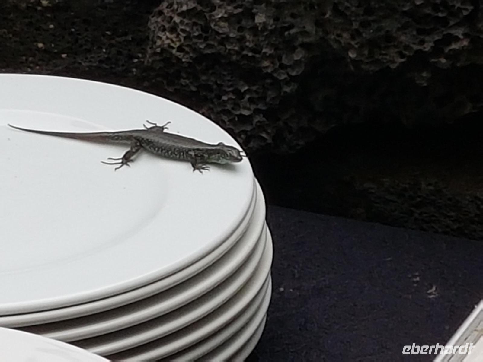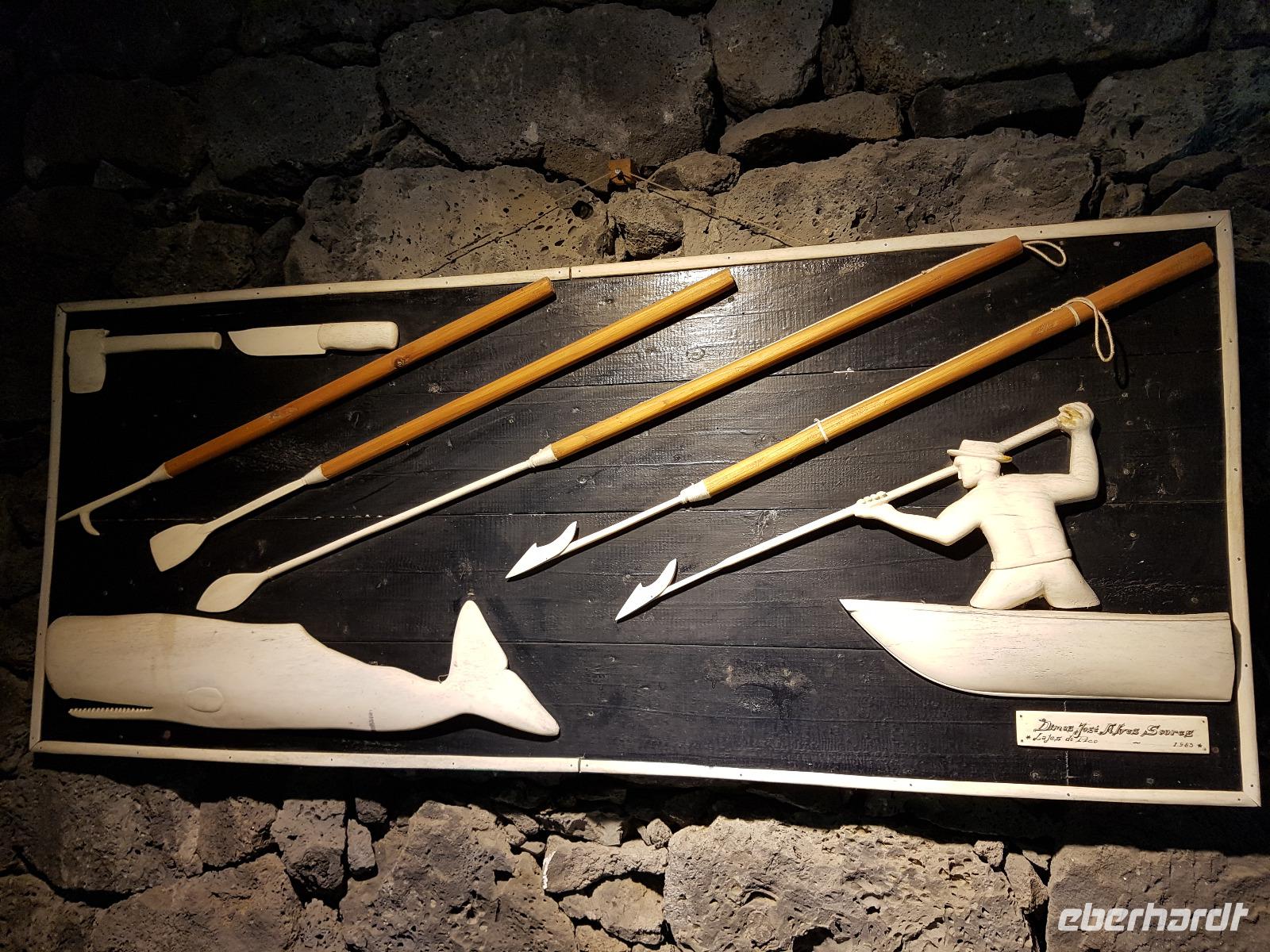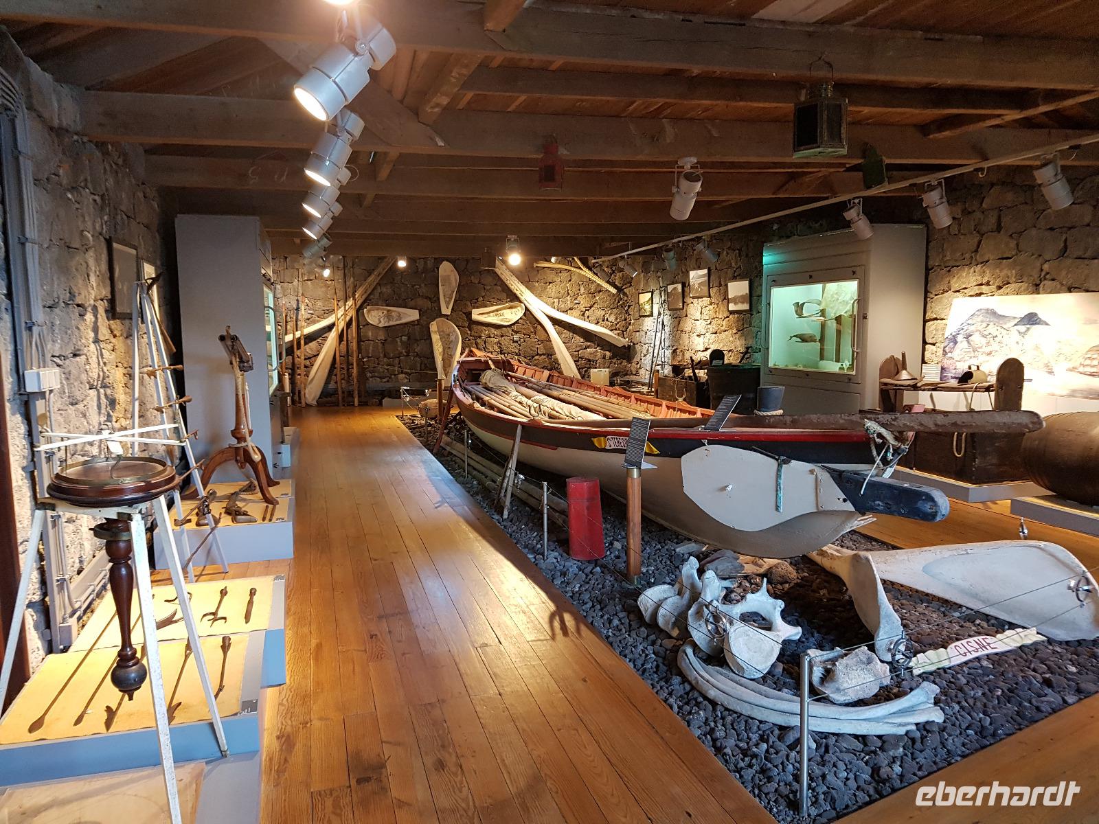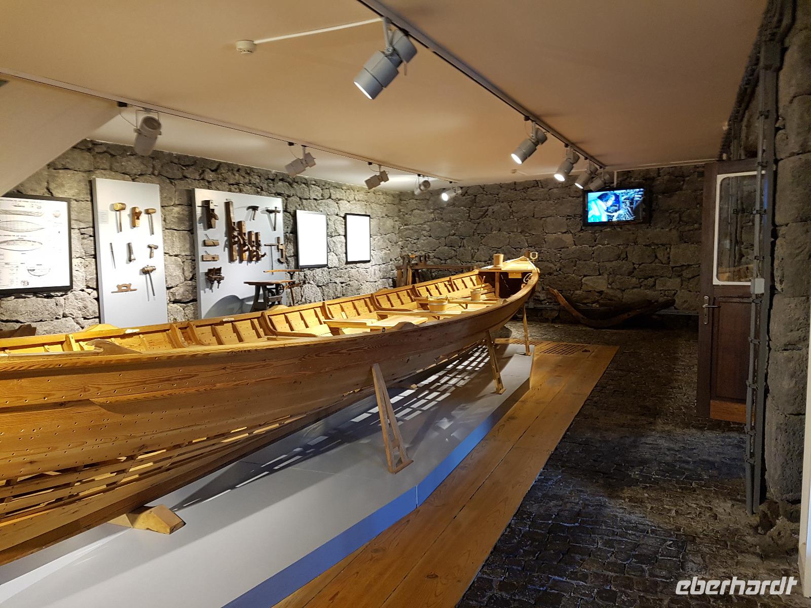 Heute war kein prächtiges Wetter und alles in Wolken gehüllt. Nach einem zeitigen Frühstück fuhren wir mit dem Bus zum Fährhafen und von dort 7.30 Uhr mit der Fähre hinüber nach Pico. Drüben auf der schwarzen Insel wartete schon der Bus für unsere Rundfahrt. Da kein schönes Wetter war, fuhren wir zunächst am Meer entlang zu den Weingärten und spazierten hindurch, um die Kultur der Reben ganz aus der Nähe zu sehen. Die Weinreben sind durch Mauern aus Lavasteinen gegen Wind geschützt und auch die Weinlese wird damit sehr aufwändig. In Lajes besuchten wir nach einer Kaffeepause das Walfang Museum. Wir sahen einen Film über den Walfang, der seit 1986 nun endich verboten ist. Leider besserte sich das Wetter nicht und so ging unsere Fahrt über das Hochland, von wo man eigentlich den Berg Pico sehr schön sieht, nur durch dicke Wolken -sehr schade, aber nicht zu ändern. Wieder unten am Meer an der Nordküste in Sao Roque besuchten wir die Kirche und machten eine ausgiebige Mittagspause mit sehr reichlich zu essen. Sogar Napfschnecken durften wir probieren und freche kleine Vögel und Eidechsen stiebitzten von unserem Buffet. Die dortigen Meerwasserpools nutzten wir nicht, sondern fuhren zurück nach Madalena und nahmen schon die 16 Uhr Fähre zurück nach Horta. Zum Abendessen gingen wir hinunter zum Hafen und assen im Peter Cafe- dem angesagten Lokal der Azoren, was in diesem Jahr 100 Jahre besteht. Sehnsüchtig schauten wir hinüber nach Pico, aber der höchste Berg Portugals war immer noch in Wolken versteckt.