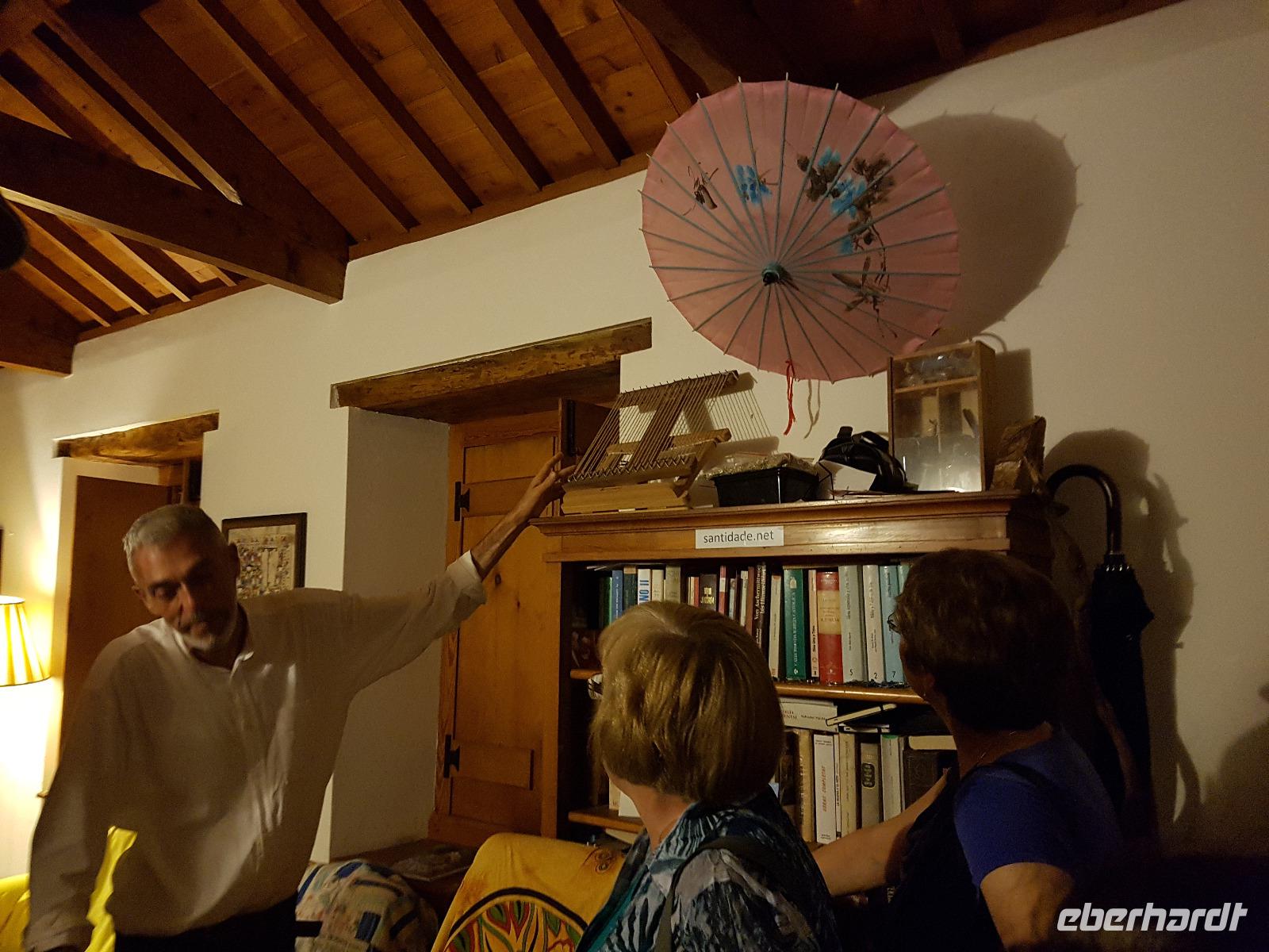 Die Hälfte unserer Reise war geschafft und für unser "Bergfest" hatte uns Joaquim zu sich nach Hause eingeladen. Er hatte für uns gekocht und ein grosses Buffet aufgebaut. Wir sassen auf seiner Terrasse am Meer und genossen das zauberhafte Ambiente. Alle waren überrascht und genossen diesen unvergesslichen Abend. Zum Nachtisch gab es Schokoladenmousse und Sahne- alles selbst zubereitet und es schmeckte vorzüglich. Nach dem Essen halfen alle mit in der Küche beim Abwaschen und Aufräumen und das übrig gebliebene Essen verpackten wir für den nächsten Tag zum Picknick. Mit Taxis fuhren wir ins Hotel zurück .