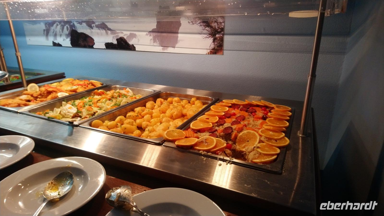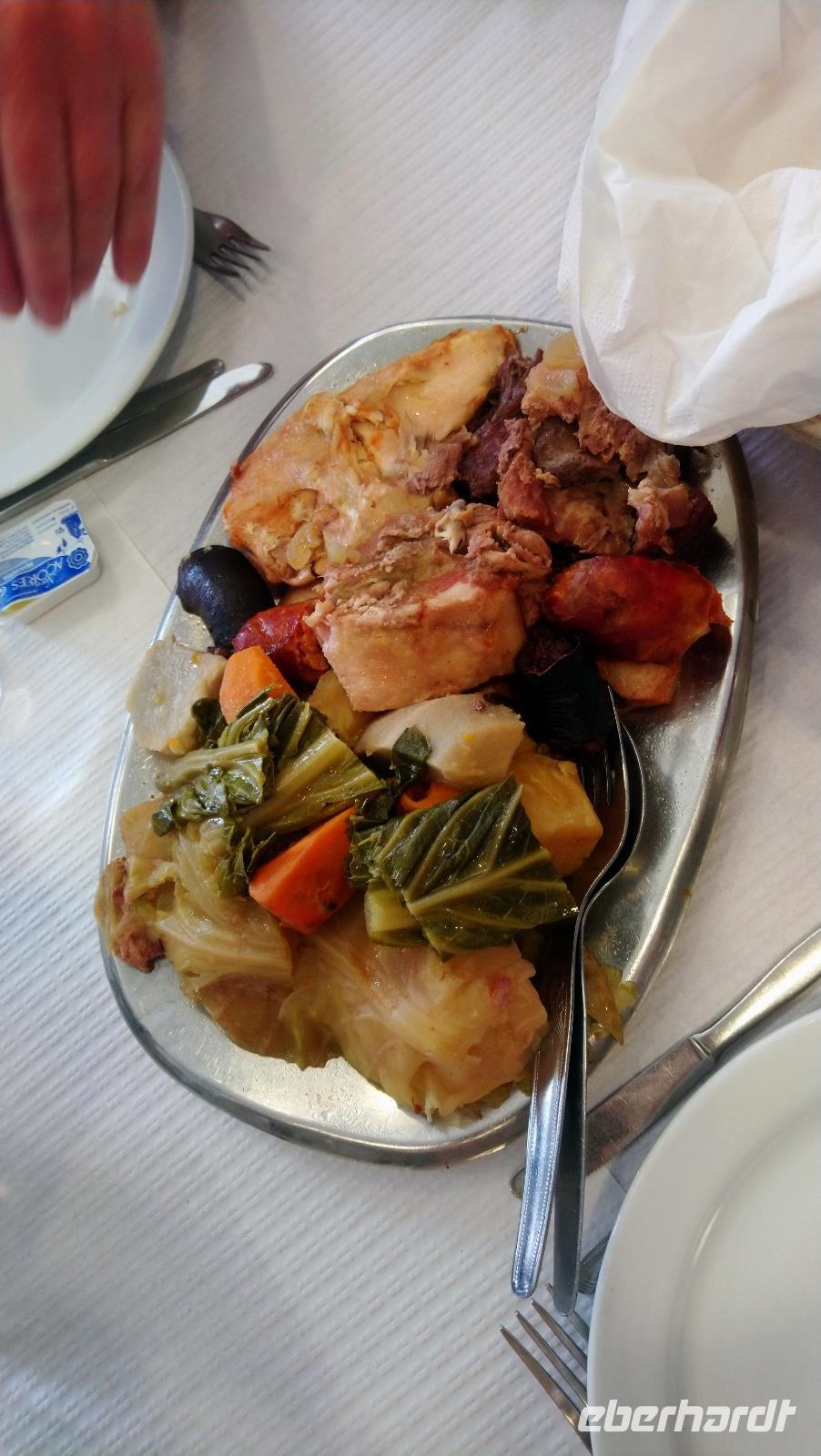 Bei strahlend blauem Himmel und Sonnenschein wurden wir am ersten Morgen auf den Azoren geweckt. Bei einem schmackhaften Frühstück im Hotel lernten wir bereits die ersten kulinarischen Spezialitäten der Inselgruppe kennen. Süße Ananas war ebenso an dem international ausgerichteten Buffet zu finden, wie aus Kuhmilch hergestellter Käse von Sao Jorge. 9 Uhr starteten wir dann zu unserem ersten Tagesausflug , welcher uns zunächst an der Südküste entlang führte. Bei einem Stopp am Aussichtspunkt „Miradouro do Pisao" erzählte uns Filomena von der hohen Bedeutung der Landwirtschaft auf den Azoren. Durch das ganzjährig milde und feuchte Klima, bei welchem die Temperaturen auch im Winter selten unter 12 °C fallen, können bis zu 3 Mal im Jahr Kartoffeln geerntet werden. Auch die Haltung von Weidevieh, insbesondere von Rindern, ist eine wichtige Einnahmequelle auf der Insel. In der Ortschaft Vila Franco do Campo besichtigten wir den Innenraum der Kirche St. Michael. Der reich verzierte Kirchenraum wartete mit einem großen, aus Fliesen bestehenden Wandbild und goldenen Verzierungen auf. Vorbei am Rathaus und der zu Ehren des Stadtvaters aufgestellten Statue führte uns Filomena zum Hafen, wo wir bei Törtchen und Kaffee eine kleine Pause einlegten. Im Anschluss ging es weiter in Richtung Inselmitte. Ziel waren die nahe Furnas gelegenen Vulkanlöcher. In diesen wird der für die Azoren typische Eintopf „Cozido" zubereitet: In einem großen Topf werden dafür verschiedene Gemüsesorten, wie Kohl, Karotten und Süßkartoffeln sowie Fleisch von Schwein, Rind und Hühnchen in die Erdlöcher hinunter gelassen. Nach mehreren Stunden sind alle Zutaten fertig gegart und der Topf wird wieder an die Oberfläche geholt. Selbstverständlich wollten wir nicht nur die Zubereitung kennenlernen, sondern uns auch vom guten Geschmack des Cozido überzeugen.Aus diesem Grund fuhren wir zu „Tony's Restaurant", wo uns der dampfende Eintopf vorgesetzt wurde und unseren Geschmackstest bravourös bestand. Nach einer ausgedehnten Mittagspause führte uns Filomena durch den Terra Nostra Park, welcher neben einer Vielzahl botanischer Pflanzen auch über Thermalquellen verfügt. Das durch den hohen Eisengehalt rostbraun gefärbte Wasser soll insbesondere bei Erkrankungen der Haut und Atemwege helfen. Neben hundert Jahre alten Eisenholzbäumen wachsen im Terra Nostra Park unzählige Kamelienarten, Farne und auch Maracujapflanzen. Nachdem wir uns an der Farbenfrohheit der Blüten verzaubern lassen hatten, fuhren wir weiter zu den Fumerolen von Furnas. Diesen sind ein Beweis für die anhaltenden, vulkanischen Aktivitäten auf den Azoren. Der aus den Fumerolen austretende, heiße Wasserdampf wird von den Einheimischen u.a. für das Kochen von Meißen genutzt. Bevor es am Abend zum Hotel nach Ponta Delgada zurückging, brachte uns Antonio mit dem Bus auf den Eisenberg, von welchem wir einen atemberaubenden Blick über den Lagoa das Furnas hatten, an dessen Ufer wir am Mittag die Zubereitung des Cozido beobachtet hatten. Zum Abendessen ließen sich alle in den nahe des Hotels gelegenen Restaurants frischen Fisch, Salat und andere köstliche Speisen schmecken.