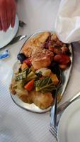 In der Nacht hatte es zwar ein wenig geregnet, aber nach dem Frühstück begrüßte uns Joaquim bei strahlendem Sonnenschein zum Stadtrundgang in Horta. Vom Hotel aus durchliefen wir zunächst die amerikanische Siedlung, welche durch rosafarben getünschte Häuser charakterisiert wird. In der deutschen Siedlung konnten wir in einem der Häuser bunte Fenster entdecken, auf welchen die Wappen verschiedener deutscher Adelshäuser verewigt sind. Durch die Gassen der kolonialen Stadt machten wir uns auf den Weg zum Wochenmarkt „Mercado Municipal" und einem Franziskanerkloster. Nach unserer Rückkehr zum Hotel hieß es bereits wieder Koffer packen, denn unser Weiterlug nach Sao Miguel stand an. Am späten Vormittag verabschiedeten wir uns also schon wieder von Joaquim, welcher uns mit viel Charme Faial und Pico gezeigt hat. Auf unserem Inlandsflug mit SATA durchflogen wir ein kleines Gewitter und kamen schließlich bei strömendem Regen auf Sao Miguel an, wo wir bereits von Filomena und Antonio erwartet wurden. Diese transferierten uns zum Hotel „Marina Atlantico", welches uns bereits von den ersten Tagen unserer Reise wohl bekannt war. Gegen Abend ließ zum Glück auch der Regen nach, sodass einem leckeren Abendessen in einem der zahlreichen Restaurants nahe des Hotels nichts mehr im Wege stand.