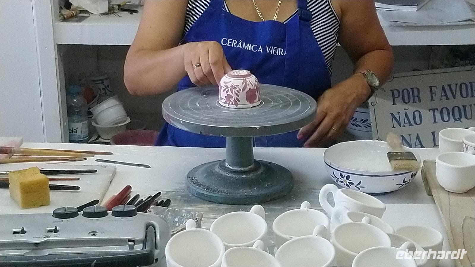Nach dem Frühstück starteten wir 9 Uhr zunächst wieder in östliche Richtung. Erstes Tagesziel war eine 1862 gegründete Keramikfabrik. Den Arbeitern konnten wir dort bei der Fertigung von Krügen und Bechern über die Schulter schauen. Noch heute wird jedes gefertigte Stück von Hand bemalt. Im Anschluss an die kurze Führung in der Fabrik spazierten wir im kleinen Örtchen Lagoa durch den Hafen. Die ansässigen Fischer holten hier gerade ihren Fang an Land und bereiteten die Netze für die nächste Ausfahrt vor. Nachdem wir das emsige Treiben im Fischerhafen eine Weile beobachtet hatten, setzen wir unsere Tour fort. Unser Fahrer Antonio lenkte den Bus gekonnt durch die steilen und kurvenreichen Straßen. Vom Aussichtspunkt des „Pico da Barrosa" konnten wir einen herrlichen Blick auf den zu unseren Füßen liegenden Kratersee Lagoa do Fogo, zu deutsch „Feuersee", werfen. Das frische Grün an den Berghängen bildete dabei einen eindrucksvollen Kontrast zum Blau des Sees. Von hier aus hatten wir auch einen wunderschönen Blick über den Großteil der Insel: Beim Blick gen Westen konnten wir auf der einen Seite Ponta Delgada und auf der anderen Seite Ribeira Grande sehen. Bevor wir zu dieser Ortschaft im Norden der Insel aufbrachen, legten wir noch einen Stopp an einem Wasserfall ein. An dessen Wasserverlauf in der Caldeira Velha wurden kleine Wasserbecken angelegt, in welchen das Baden möglich ist. Beim anschließenden Rundgang in Ribeira Grande brachte uns Filomena die Architektur der Insel näher. So haben viele weiß getünschte Häuser unter den Fenstern schwarze Steine eingesetzt, damit früher die Frauen die Fassade beim Ausklopfen der Teppiche aus dem Fenster nicht dreckig machten. Nachdem die Mittagssonne in den Cafés am Markt genossen wurde, stand der Besuch der Teeplantage „Chá Gorrena" auf dem Programm. Mit traditionellen Maschinen werden dort die Teeblätter getrocknet, zerkleinert und anschließend per Hand verpackt. Natürlich durfte eine Kostprobe des hier hergestellten grünen und schwarzen Tees nicht fehlen. Auf der Rückfahrt zum Hotel legten wir noch einen Stopp am Strand Santa Barbara ein, wo wir Surfer beim Wellenreiten beobachten und den Sand unter den Füßen spüren konnten. Am Abend stand für die Gruppe ein gemeinsames Abendessen im Restaurant „Cozinha d' Autor" an. Am Hafen konnten wir mit Blick auf unser Hotel leckere Speisen verkosten. Nachdem uns als für die Azoren typische Vorspeise Blutwurst mit Ananas serviert wurde, folgten Thunfisch, Steak und als Dessert ein Kuchen mit Karamellüberzug. So ließen wir den dritten Tag unserer Reise gemütlich bei einem Glas Wein und Kaffee ausklingen.