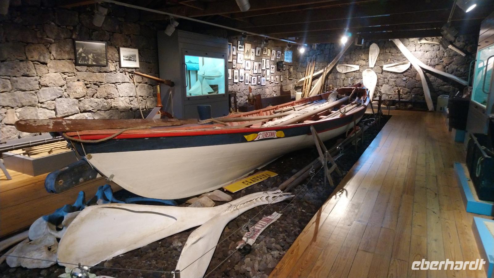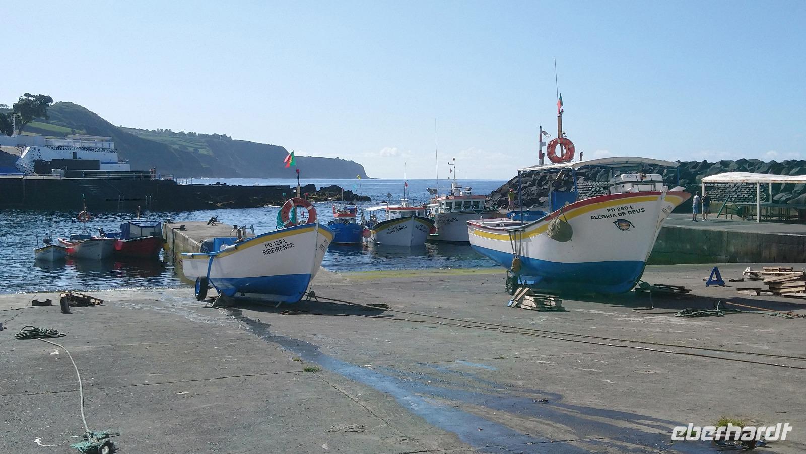 Am heutigen Tag stand eine weitere Azoreninsel auf unserem Programm: Pico. Diese ist vor allem für den Walfang, welcher bis Mitte der 1980er Jahre stattfand, und den Anbau von Weinen bekannt. Ein Transfer brachte uns nach dem Frühstück zum nahegelegenen Fährterminal. Von hier aus setzten wir in einer halbstündigen Fahrt über nach Pico, auf welcher der gleichnamige Vulkan in einer dichten Wolkendecke verschwand. Von Madalena aus machten wir uns mit dem Bus entlang der Küste in südwestliche Richtung auf, um die Insel zu erkunden. Erster Stopp war ein Rollsteg, eine ins Meer führende Rampe. Auf dieser wurden in vergangenen Jahrzehnten die Fässer mit dem auf Pico produzierten Wein ins Meer gerollt, um von dort auf die Schiffe gezogen und exportiert zu werden. An großen Drachenbäumen vorbei gelangten wir schließlich nach Lajes, wo wir das Walfangmuseum besichtigten. Bei einem Film erfuhren wir zunächst von der Bedeutung dieses bis fast zum Ende des 20. Jahrhunderts relevanten Wirtschaftszweiges der Azoren. Im Anschluss bestaunten wir die umfangreiche Sammlung der Scrimshaws. Darunter sind Walzähne zu verstehen, auf welche Zeichnungen gemalten eingeritzt wurden. Aber auch allerlei andere Gegenstände aus Walzähnen fanden sich im Museum, vom Kochlöffel über das Teeservice bis hin zum Werkzeug. Nachdem wir uns in den lokalen Restaurants zum Mittag gestärkt hatten, ging es weiter über die Insel. Dabei waren wir kurzzeitig von dickem Nebel eingeschlossen, da wir das hügelige Inselinnere überqueren mussten. In Sao Roque legten wir einen kurzen Stopp ein, da sich hier früher eine Fabrik zur Verarbeitung der gefangenen Wale befand. Bei einem anschließenden Spaziergang Zwischenzwei Dörfern im Norden der Insel durchliefen wir ein Weinanbaugebiet und bestaunten die sich hier befindlichen Häuser aus schwarzem Lavagestein. Bevor wir mit der Fähre zurück nach Faial übersetzen, stand uns noch etwas Freizeit in Magdalena zur Verfügung. Außerdem gab es noch einen kleinen Feigenschnaps mit Minzgeschmack für alle, da Pico unter anderem auch für seine vielfältigen Liköre bekannt ist. Zurück auf Faial brachte uns der Transfer dann zum Hotel und wir ließen einen weiteren, abenteuerlichen Tag unserer Reise ausklingen.