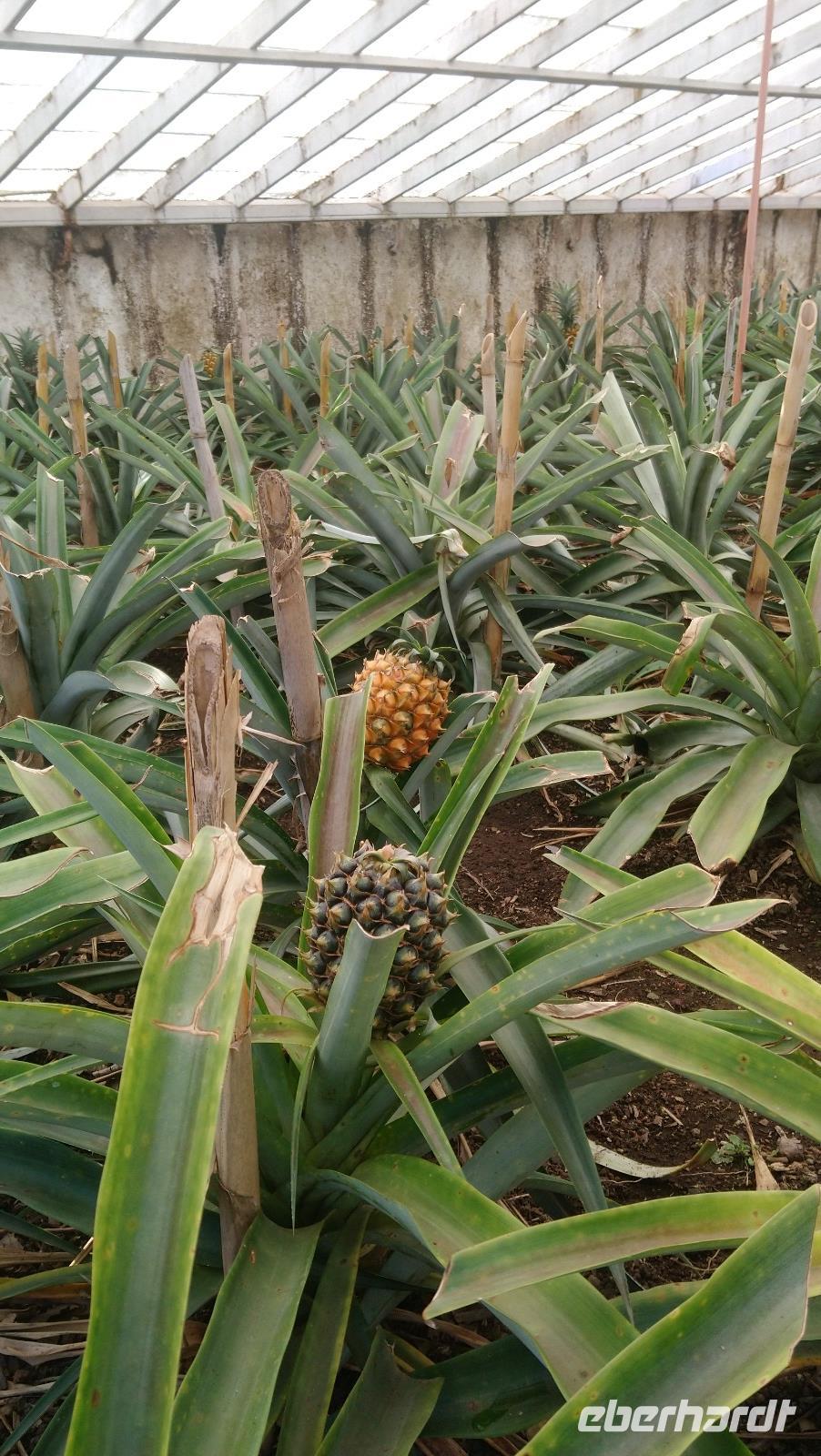Nachdem wir bereits einen großen Teil der Insel erkundet hatten an den Vortagen, fuhren wir heute nach dem Frühstück gen Westen. Den ersten Halt legten wir unweit von Ponta Delgada auf der Ananasplantage Arruda ein. Dort werden in Gewächshäusern die Ananaspflanzen gezogen. Nach ca. 21-24 Monaten wächst je Pflanze eine Ananas. Die bei Arruda geernteten Früchte werden ausschließlich auf der Insel verkauft und nicht exportiert. Auf unserer Weiterfahrt fuhren wir auf Straßen, welche kilometerlang von Hortensien gesäumt wurden. Aufgrund des hohen Eisengehaltes im Boden blühen diese vor allem in Blautönen. Schon bald erreichten wir den „Vista do Rei", den „königlichen Ausblick". Von diesem sieht man hinunter auf die beiden Seen Lagoa Azul und Lagoa Verde. Bei wolkenlosem Himmel machen diese Seen ihren Namen alle Ehre und das Wasser scheint blau bzw. grün zu glitzern. Am Ufer des Lagoa Azul im verschlafenen Örtchen Sete Cidades legten wir eine Mittagspause ein. Beim darauffolgenden Besuch des ethnografischen Museums in Capelas konnten in mehreren Räumen verschiedene Handwerksberufe angesehen werden. So gibt es beispielsweise eine nachgestellte Post, eine Schule mit hölzernen Bänken und eine Druckerei. Ebenso sind aus Fischschuppen und Zwiebelhaut gelegte Bilder zu bestaunen, welche von der Frau des Inhabers per Hand gelegt wurden. Am späten Nachmittag zeigte uns Filomena bei einem Stadtrundgang die wichtigsten Sehenswürdigkeiten von Ponta Delgada. Durch den von Antonio Borge angelegten botanischen Garten ging es dabei an der Hauptkirche und dem Rathaus der Stadt vorbei in Richtung Hafen, wo anschließend alle den Abend ausklingen ließen.