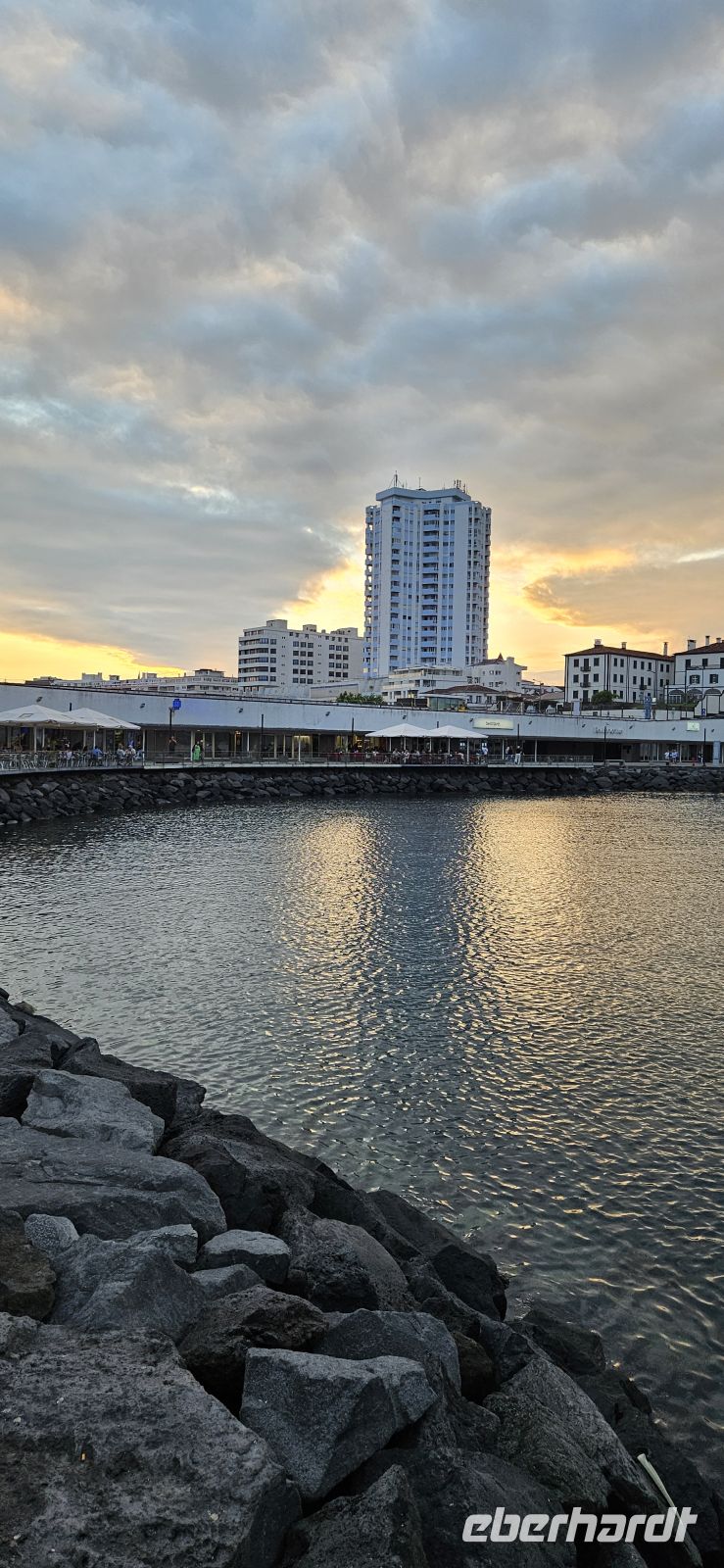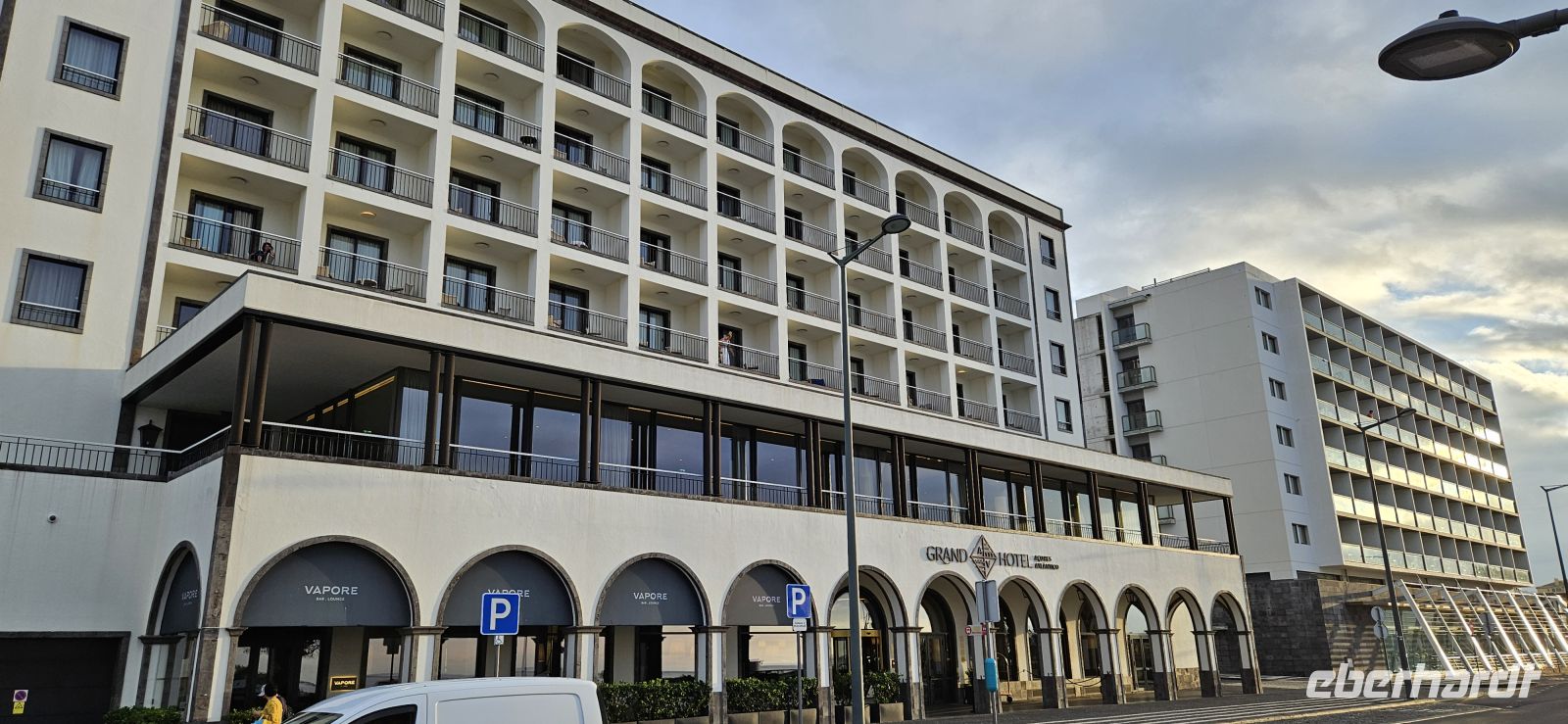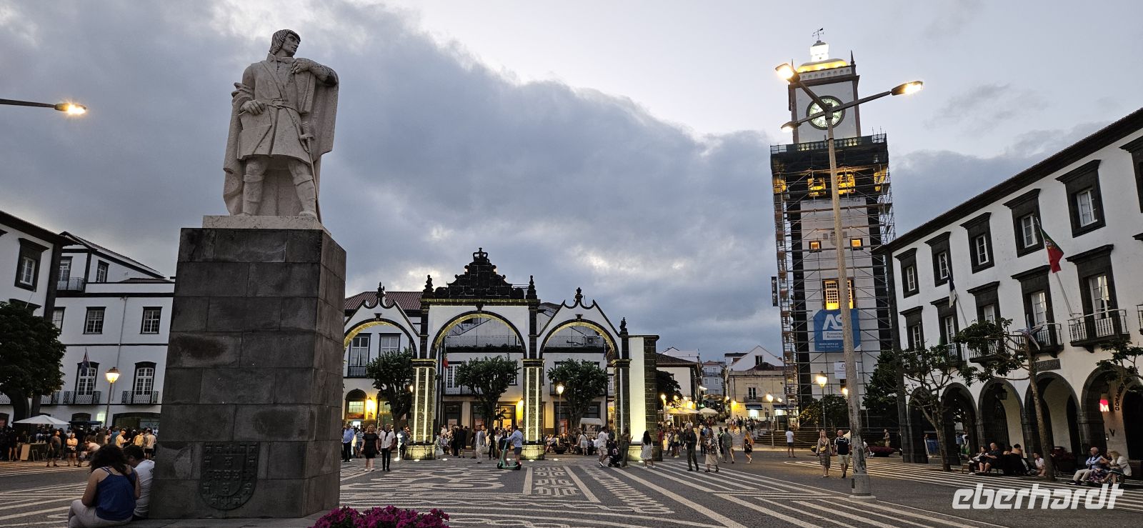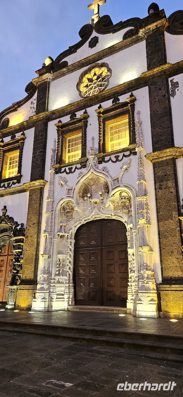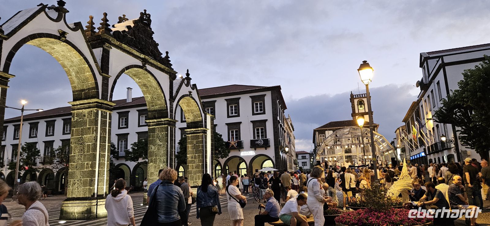 Sehr früh am Morgen starteten unsere Flugzeuge von Berlin, Hamburg und Frankfurt nach Lissabon. Dort war dann Zeit für ein gemütliches Frühstück, ein wenig shoppen und gegen Mittag trafen wir uns alle und gingen gemeinsam zum Abflug Gate für den Flug nach Ponta Delgada. Der Flug war pünktlich und da wir die Uhren zu Deutschland um 2 Stunden zurück stellen mussten, war es erst 14.30 Uhr als wir auf den Azoren landeten. Am Flughafen empfing uns Frederik, unser Reiseleiter für die Insel Sao Miguel. Der Weg ins Hotel war kurz und das einchecken ging flott. Alle bekamen im Hotel Marina Atlantico Zimmer mit Meerblick als upgrade und das war eine erste Überraschung. Danach unternahmen wir gleich einen ersten Erkundungsrundgang durch Ponta Delgada. Zum Begrüßungsabendessen gingen wir hinunter zum Hafen ins Restaurant Momentos. Dort wurden wir schon erwartet und bekamen typisch azorianische Vorspeisen mit Ananas, Blutwurst, Chorizo und Frischkäse. Für das Hauptgericht standen Thunfisch und ein azorianisches Rindersteak zur Auswahl. Den Nachtisch schaffte dann schon nicht mehr jeder. Satt und zufrieden ging es zurück ins Hotel oder man begab sich mit mir noch auf einen Spaziergang durch die beleuchtete Stadt.